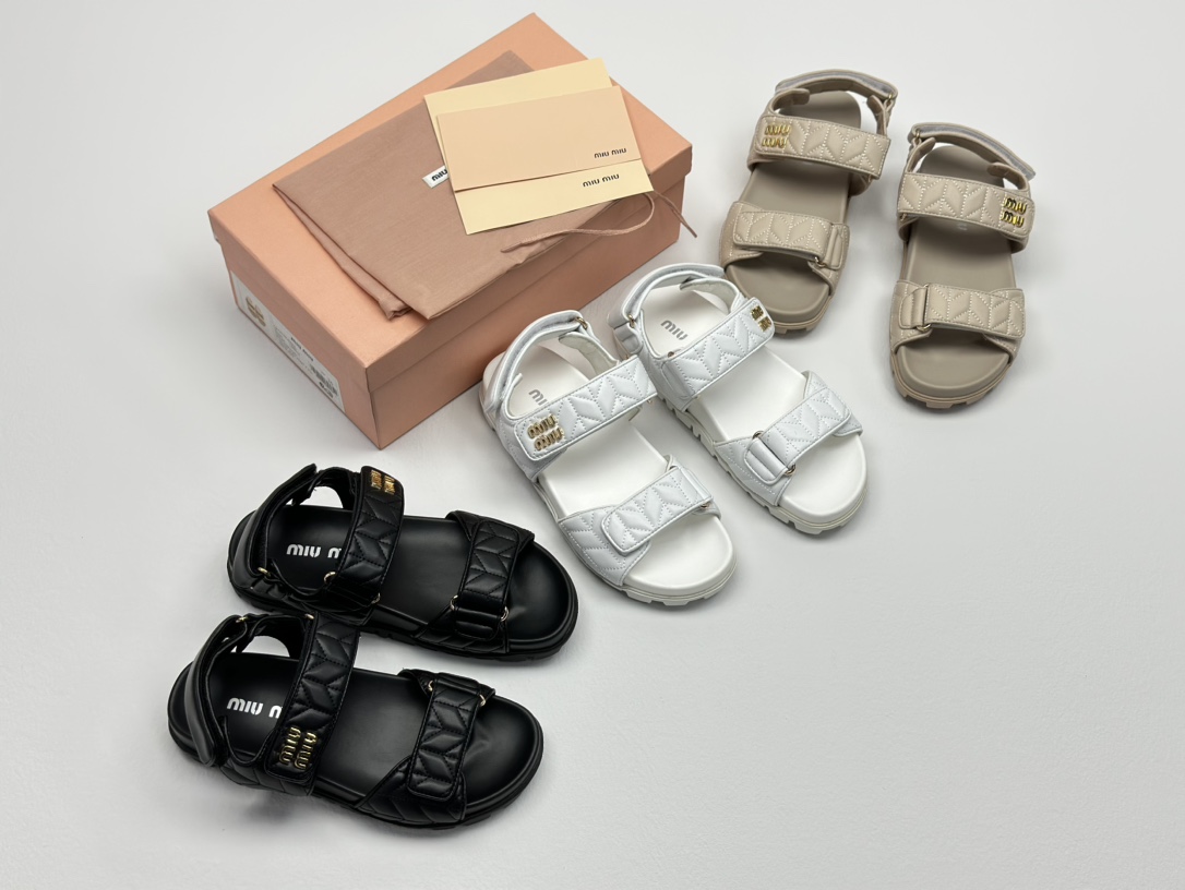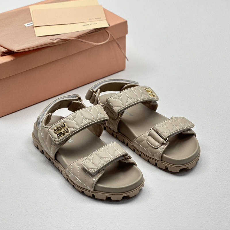 NIGO MiuMiu Women's Summer Solid Colour Leather Velcro Open Toe Beach Sandals Shoes #nigo99483
