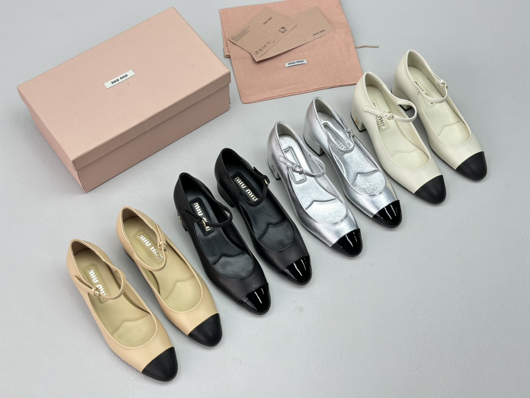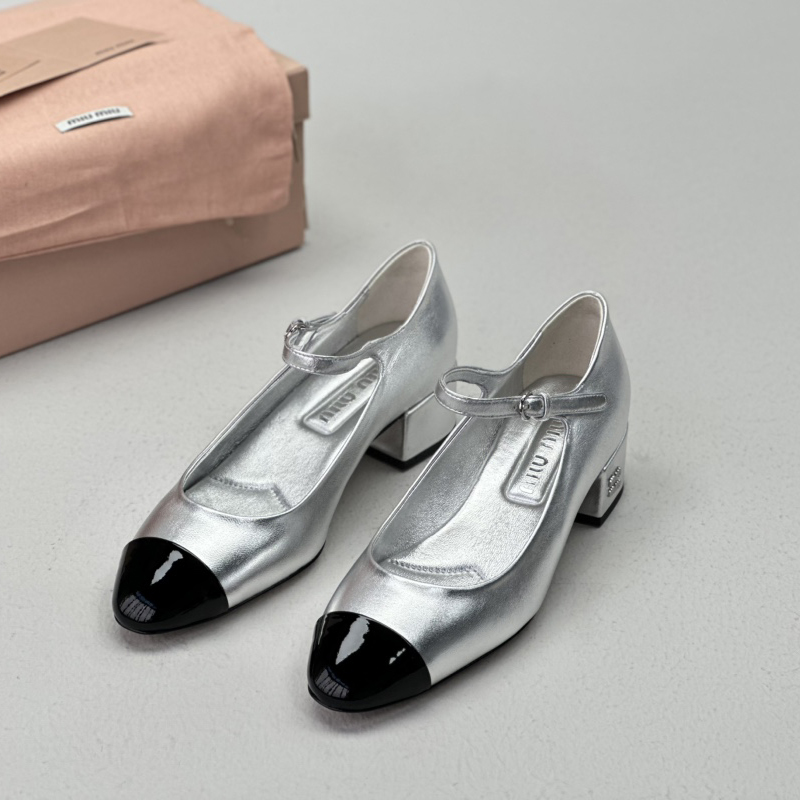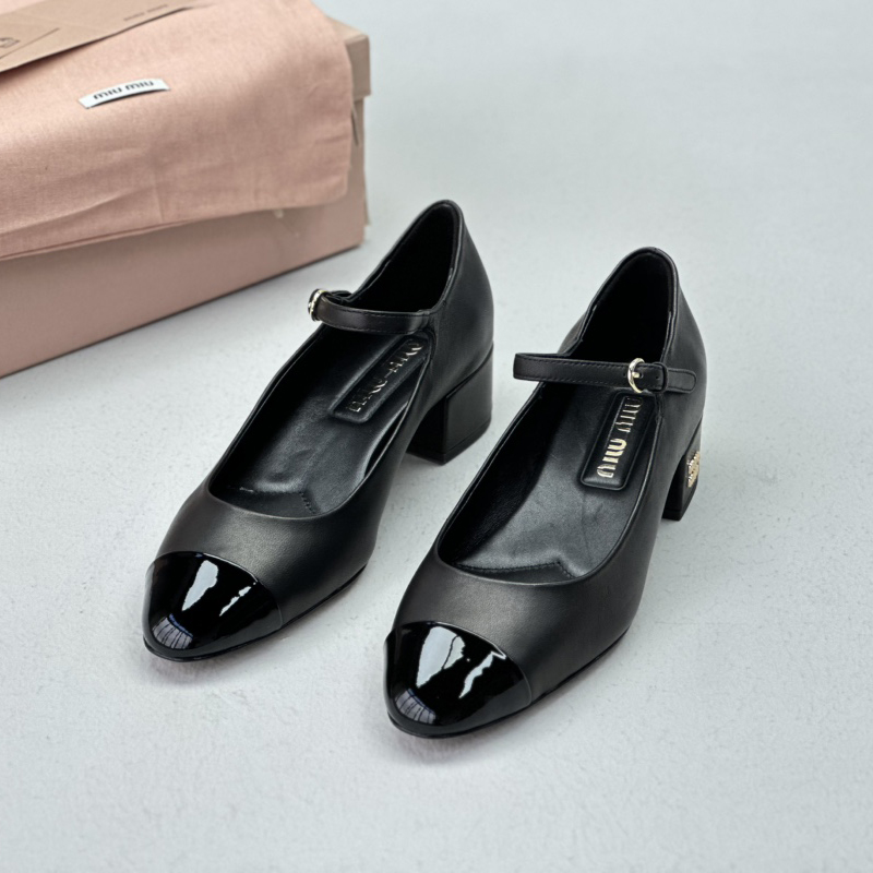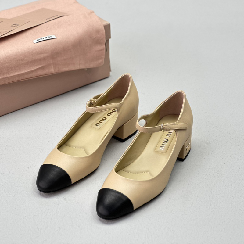 NIGO MiuMiu Women's Summer Colour Blocking Shallow Mouth Buckle Chunky Heel Leather High Heels Shoes #nigo99484