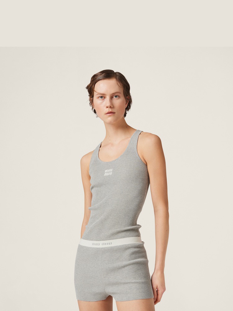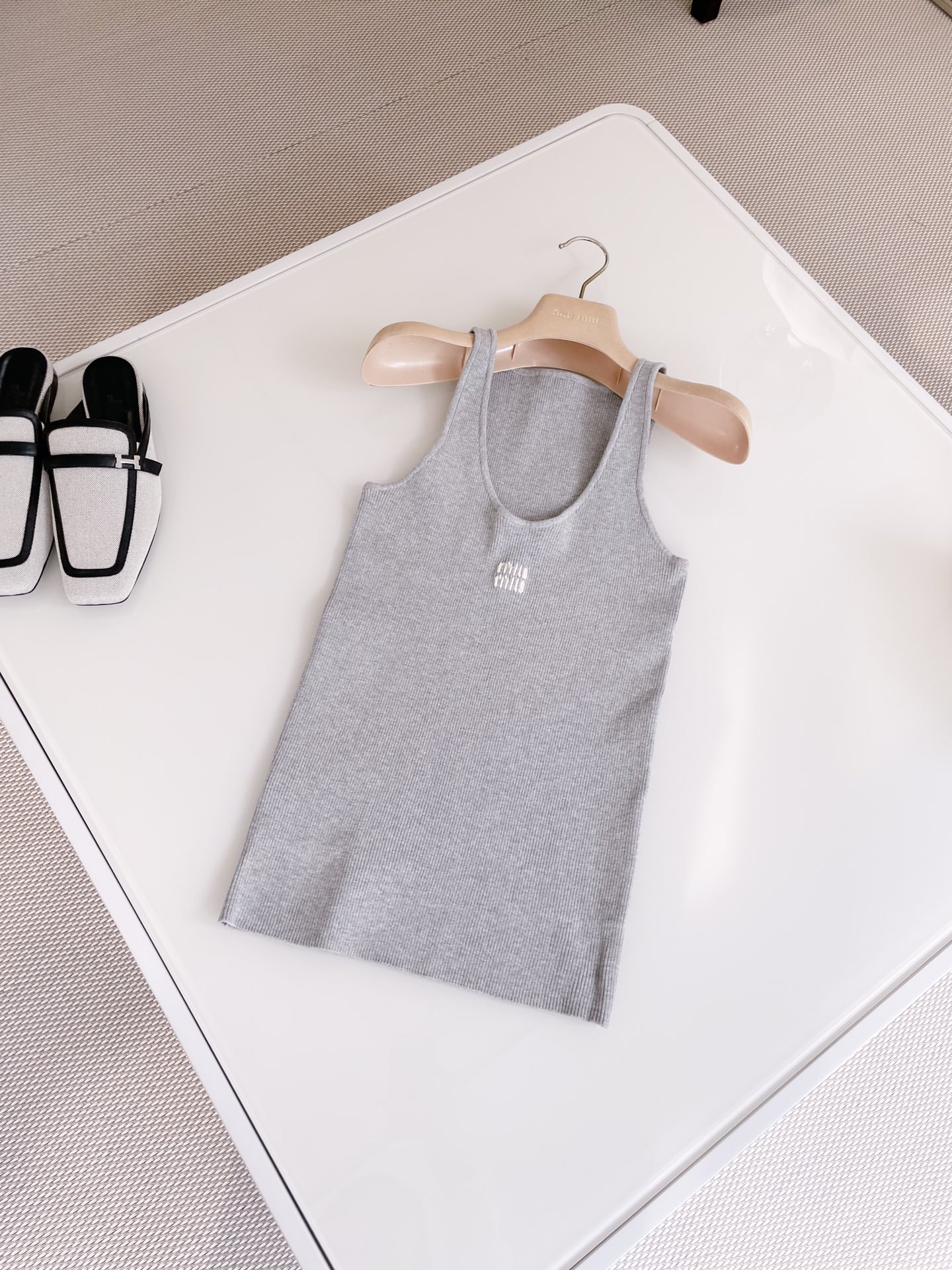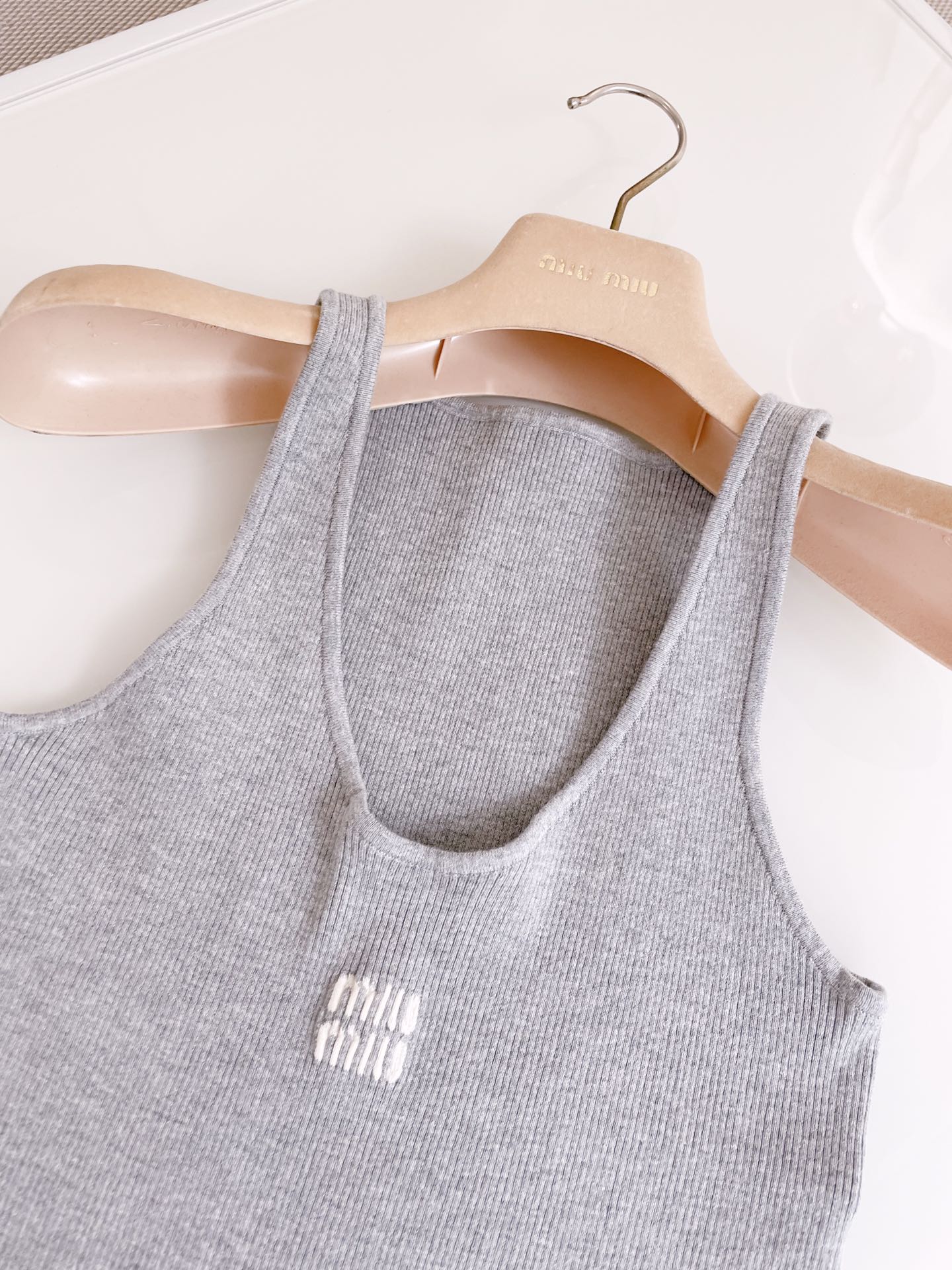 NIGO MiuMiu Women's Summer Grey Letter Logo Stretch Knit Tank Top #nigo99499