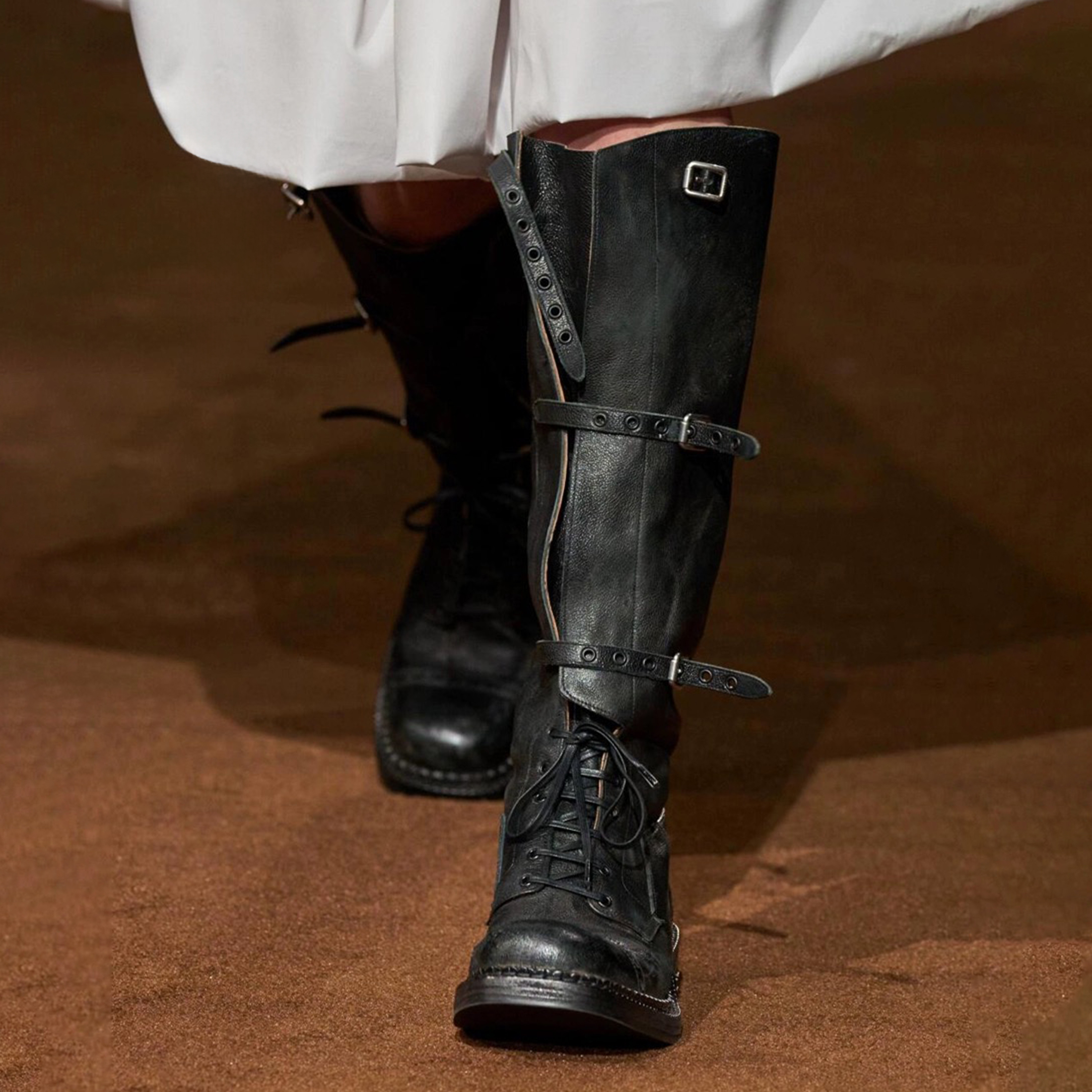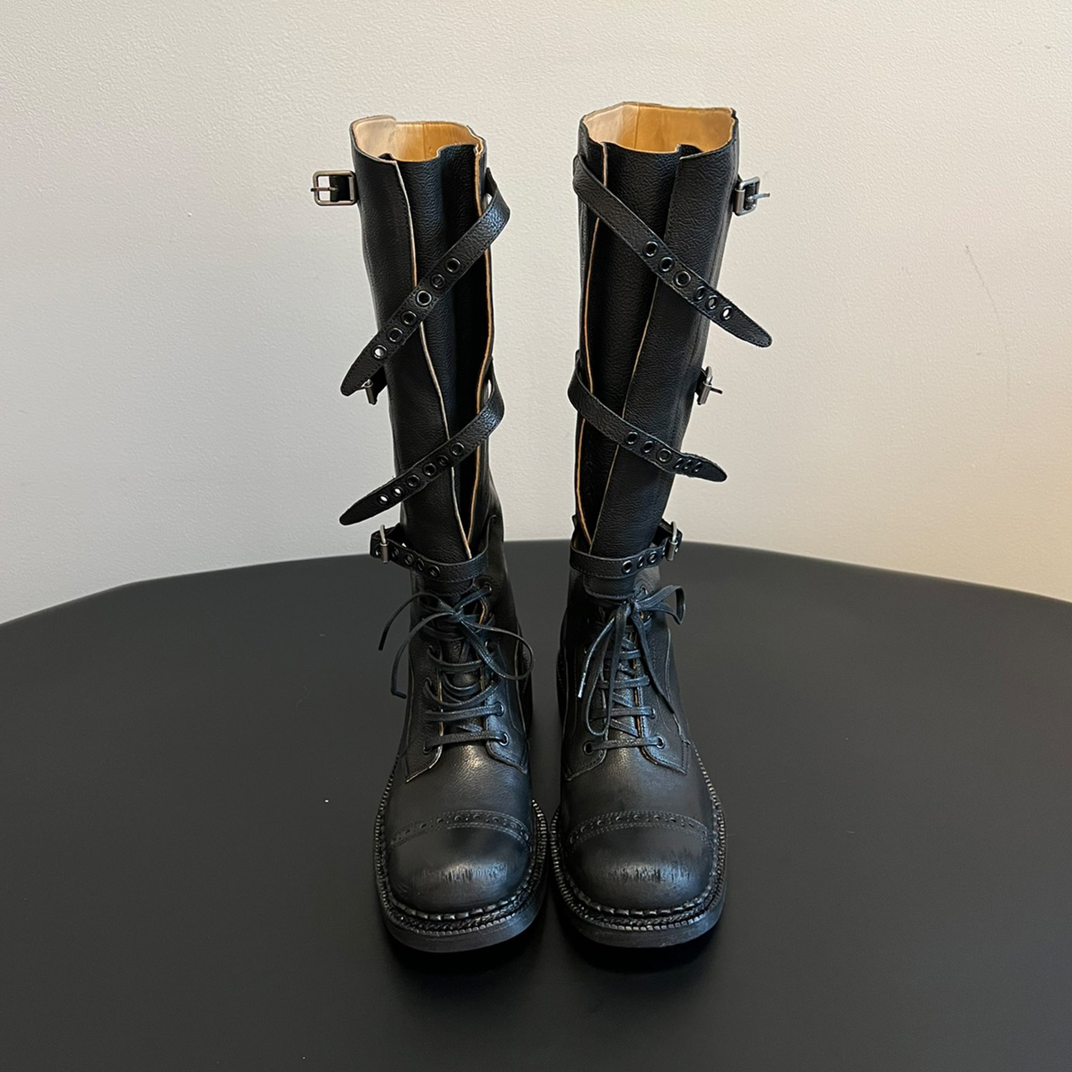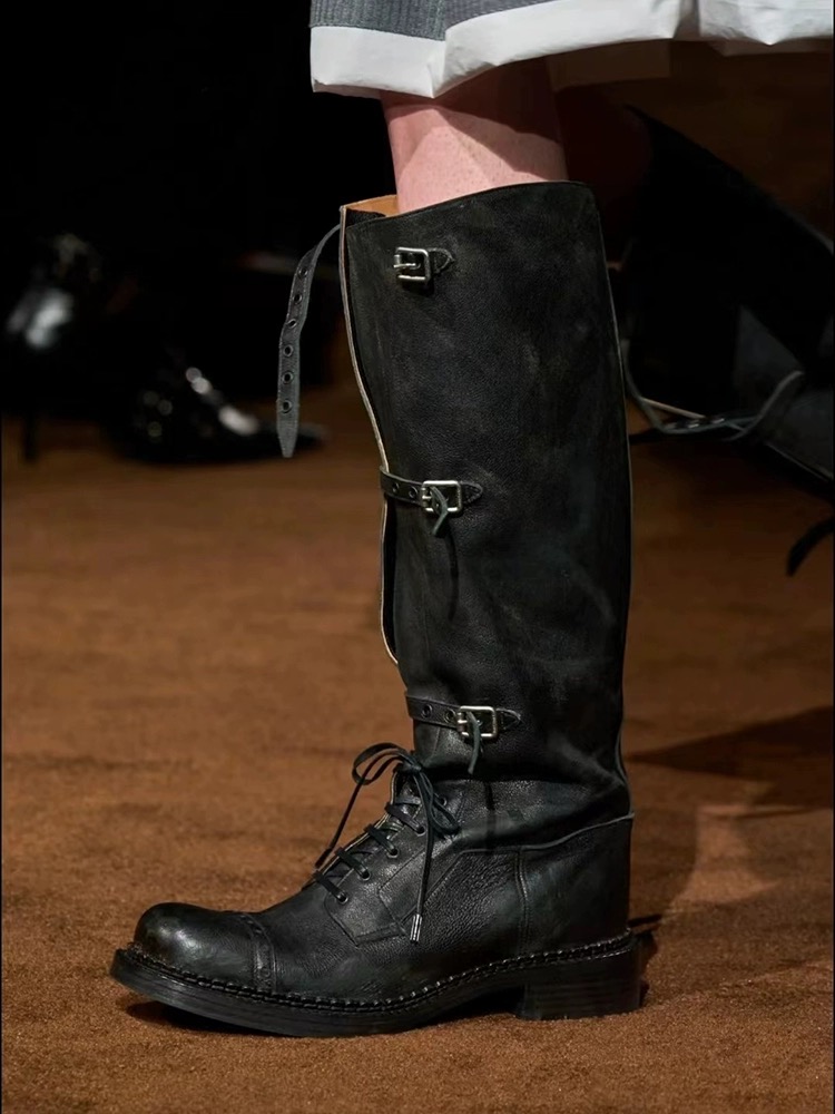 NIGO MiuMiu Women's Four Seasons Biker Style Retro Leather Buckle Boots Lace-up Cowhide Boots Casual Shoes Ngvp #nigo8389