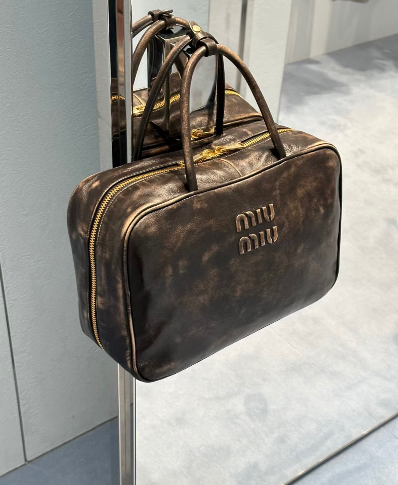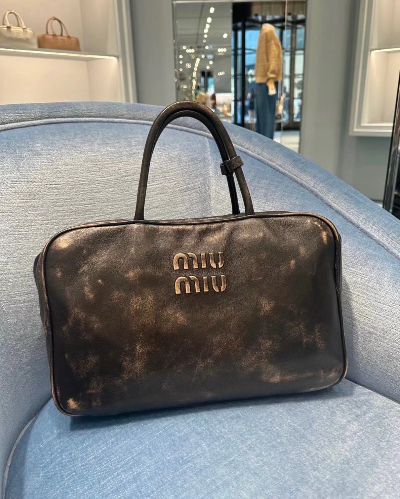 NIGO MiuMiu Monochrome Calfskin Leather Bowling/Briefcase Tote Bag Bags #nigo97149