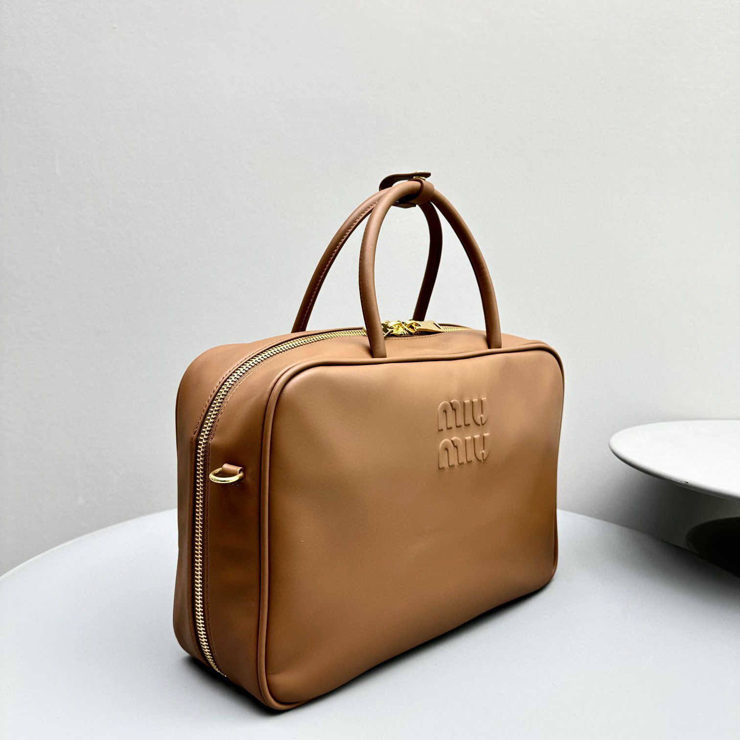 NIGO MiuMiu Women's Sand/Curry Leather Bowling Bag Handbag Bags #nigo96874