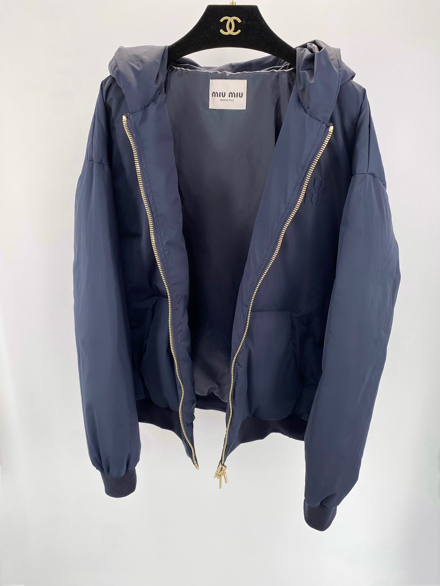 NIGO MiuMiu Men's Winter Navy Blue Zipper Hooded Puffer Down Jacket #nigo97155