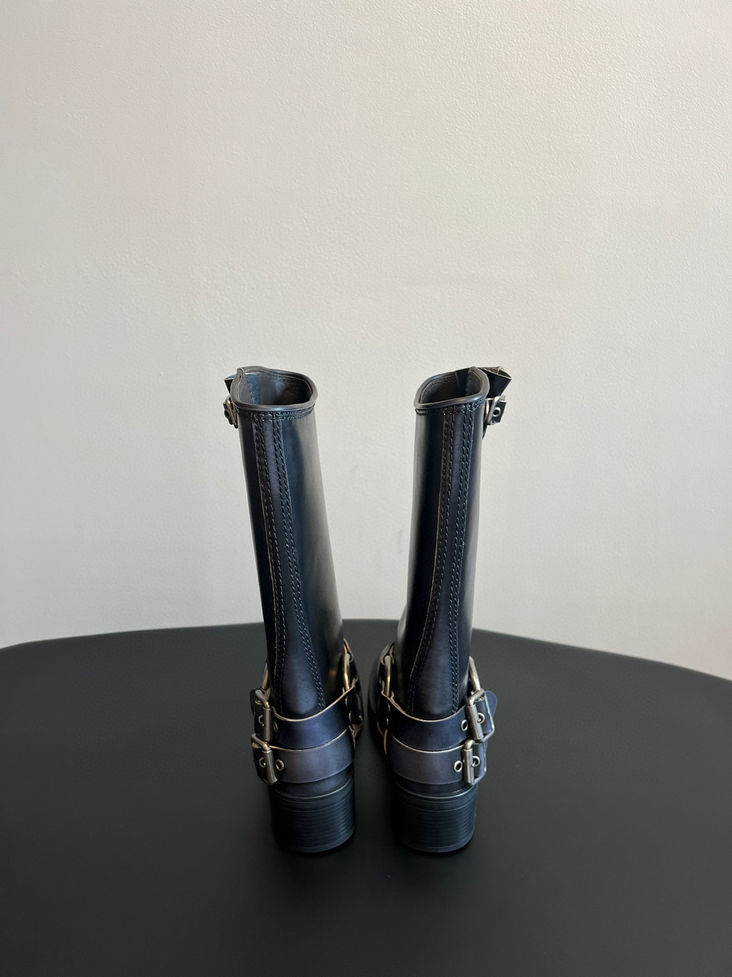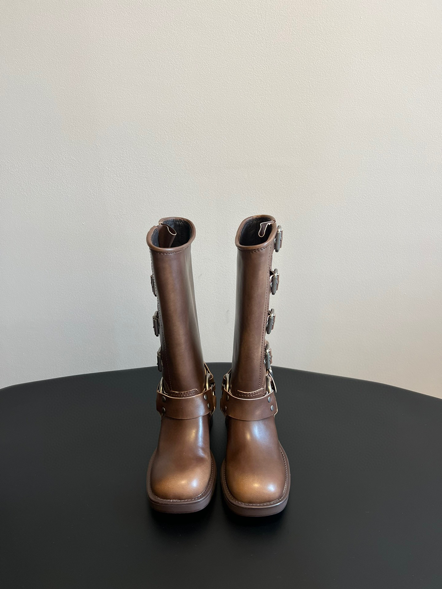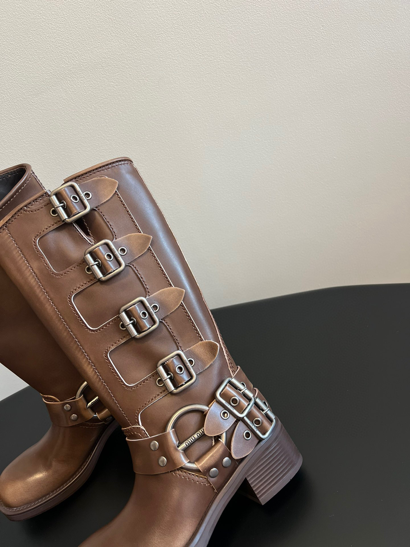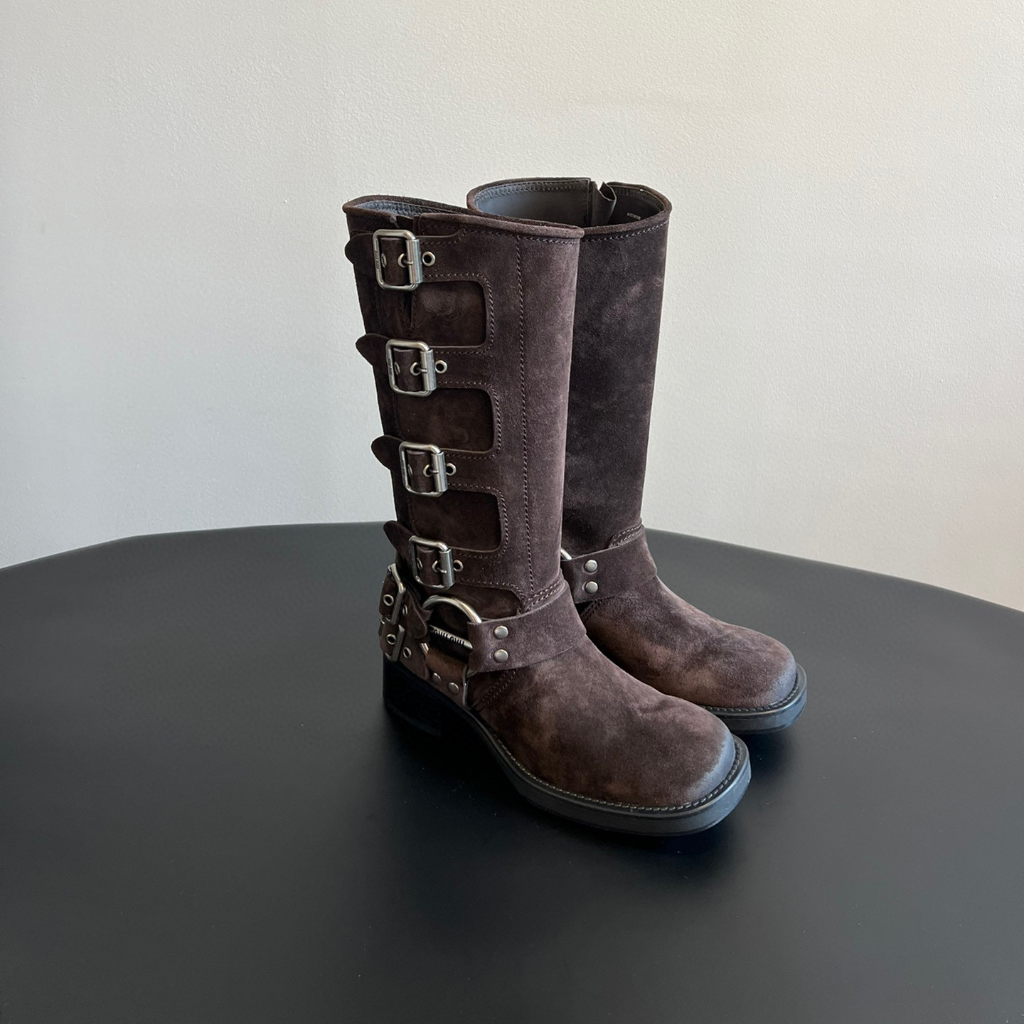 NIGO MiuMiu Women's Fall And Winter Two-Tone Cowhide/Suede Four-Buckle Model Tall Boots Shoes #nigo97263