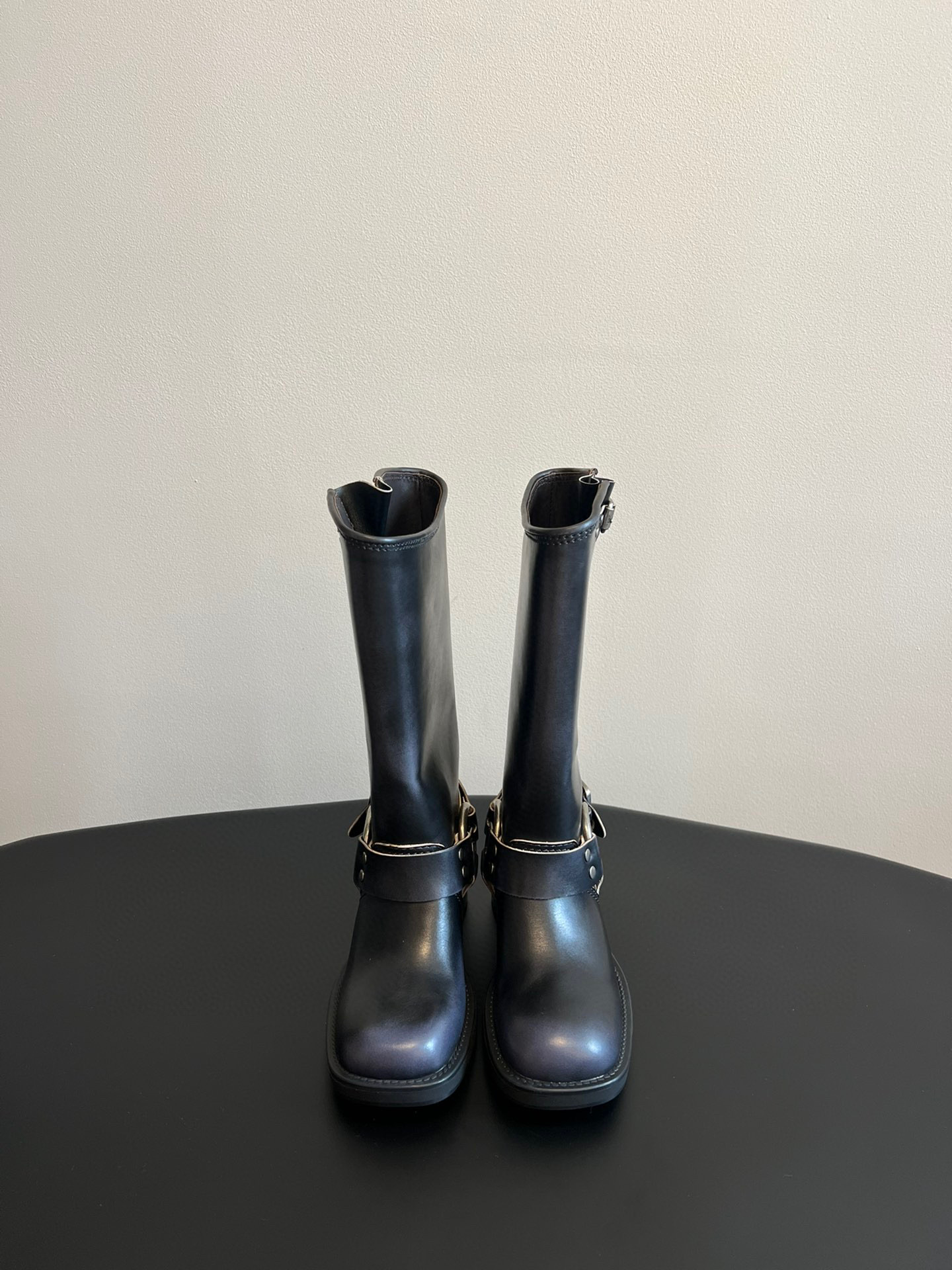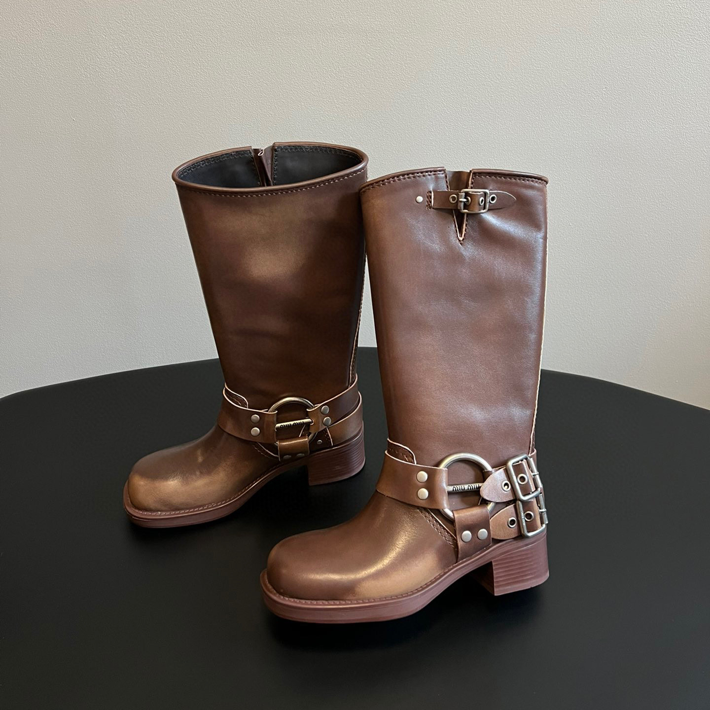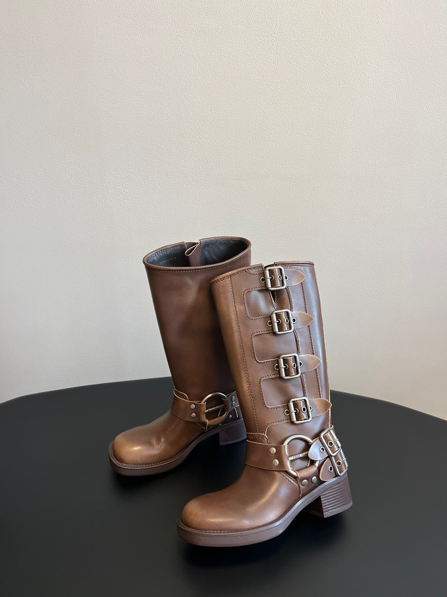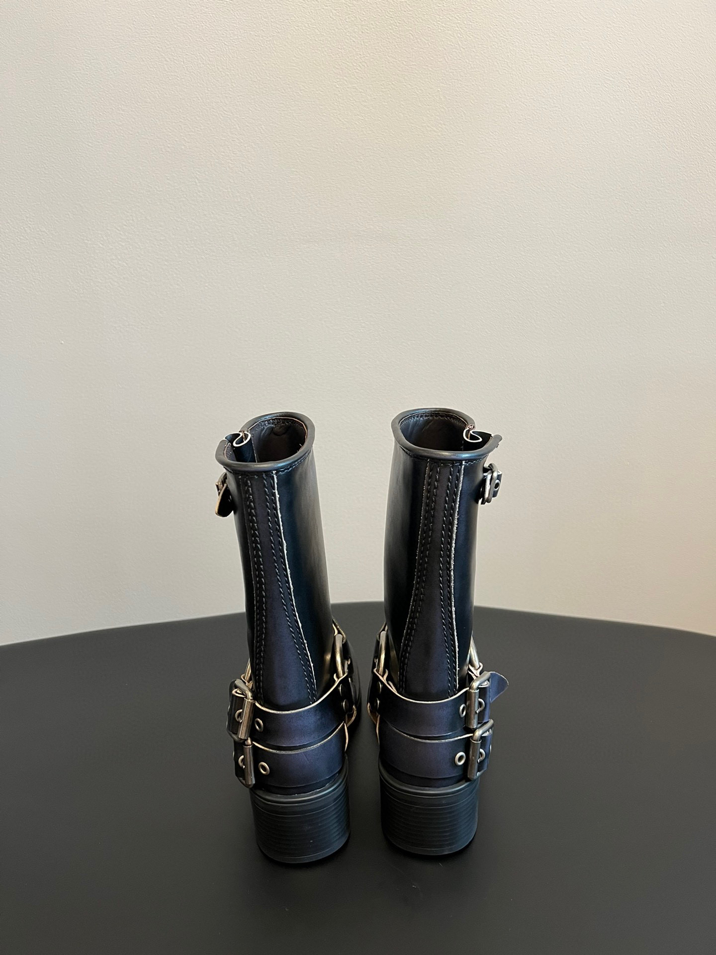 NIGO MiuMiu Women's Fall And Winter Two-Tone Cowhide/Suede Four-Buckle Model Tall Boots Shoes #nigo97263