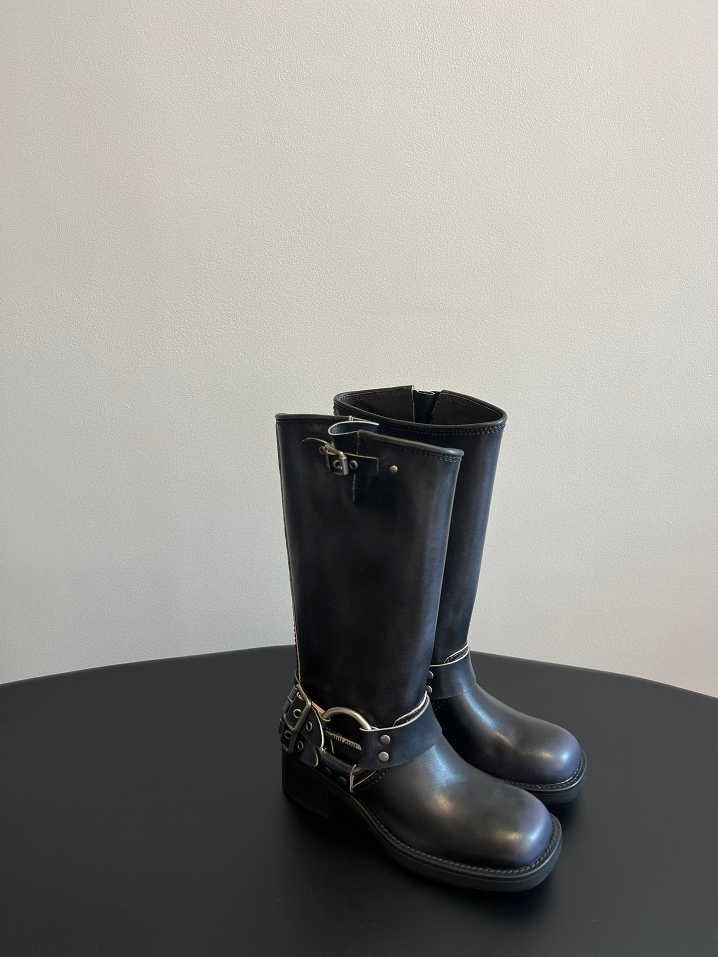 NIGO MiuMiu Women's Fall And Winter Two-Tone Cowhide/Suede Two-Buckle Model Tall Boots Shoes #nigo97264