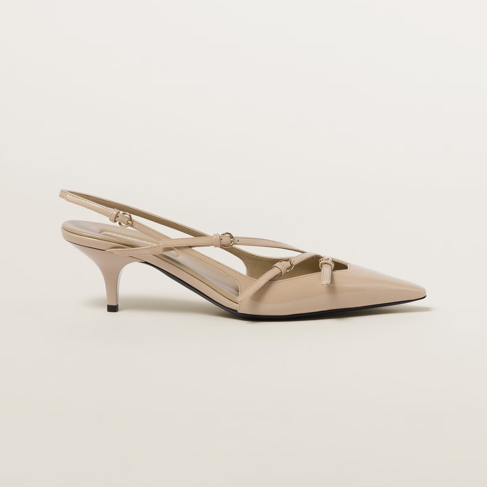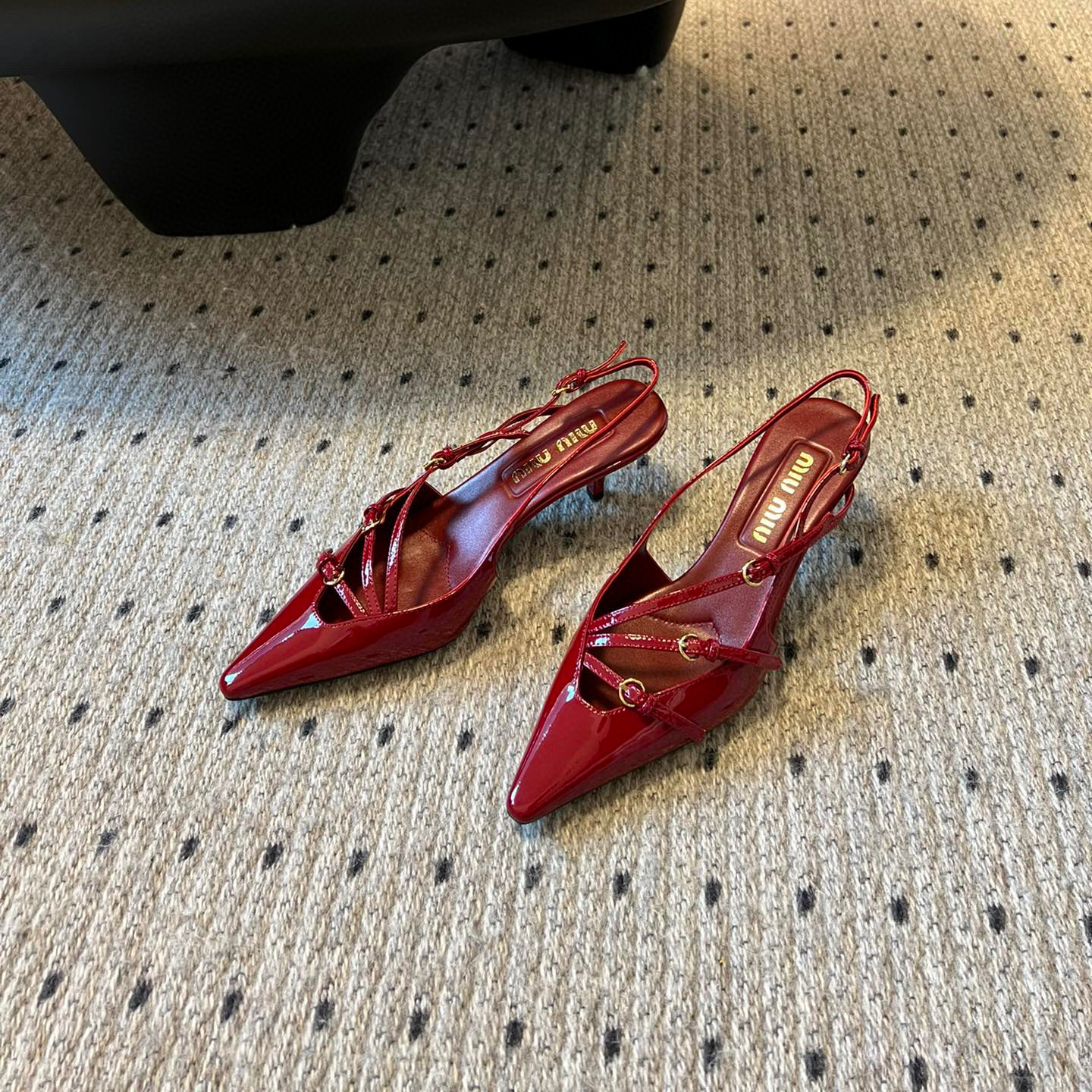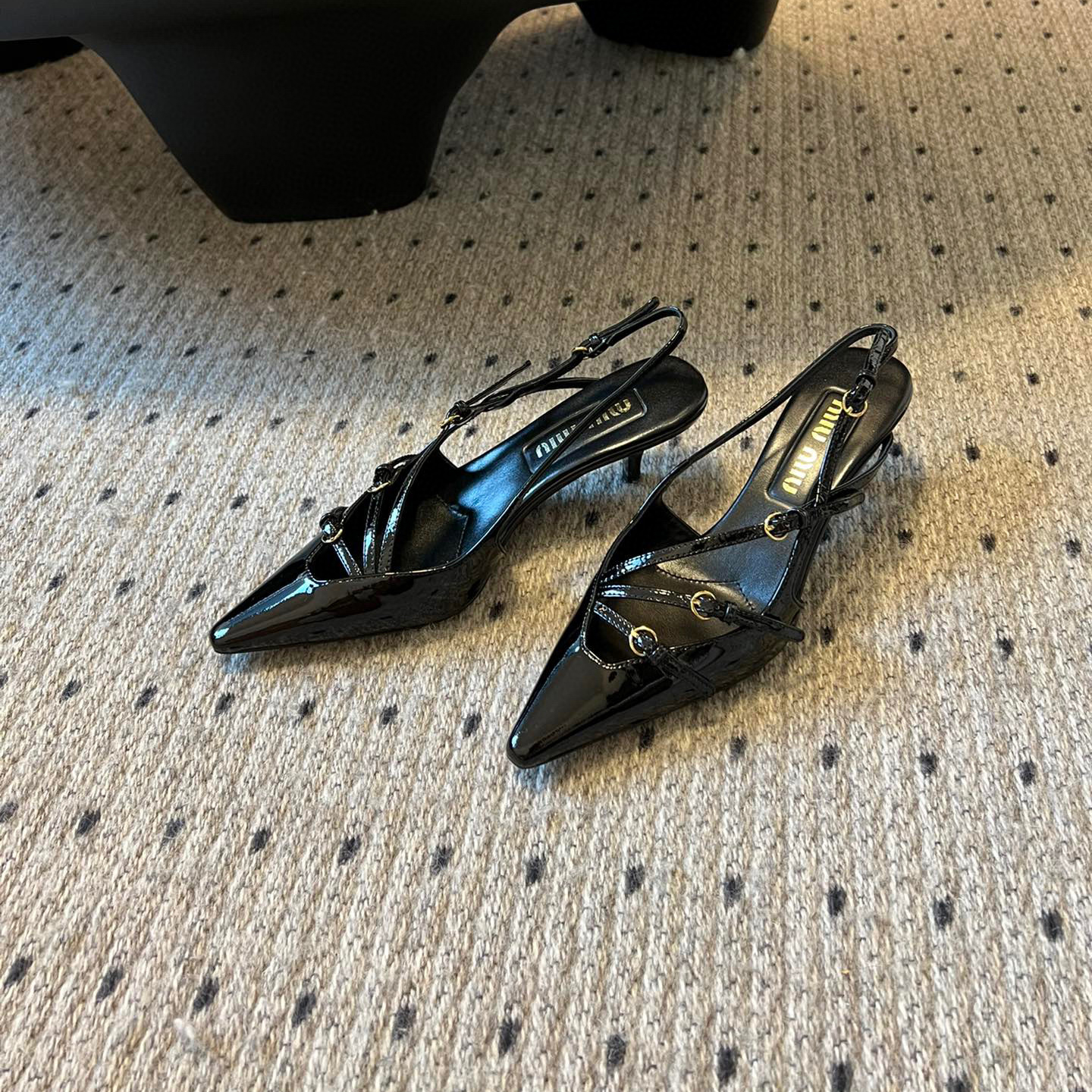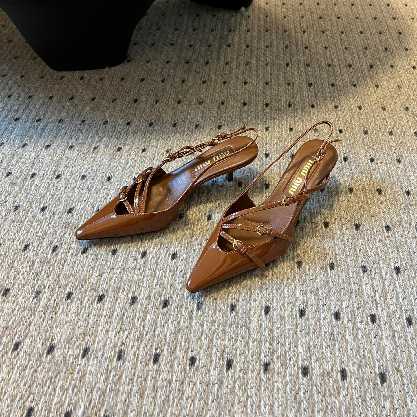 NIGO MiuMiu Women's Cowhide Fine Heel Pointed High Heels Shoes Patent Leather Slingbacks With Buckles #nigo97294