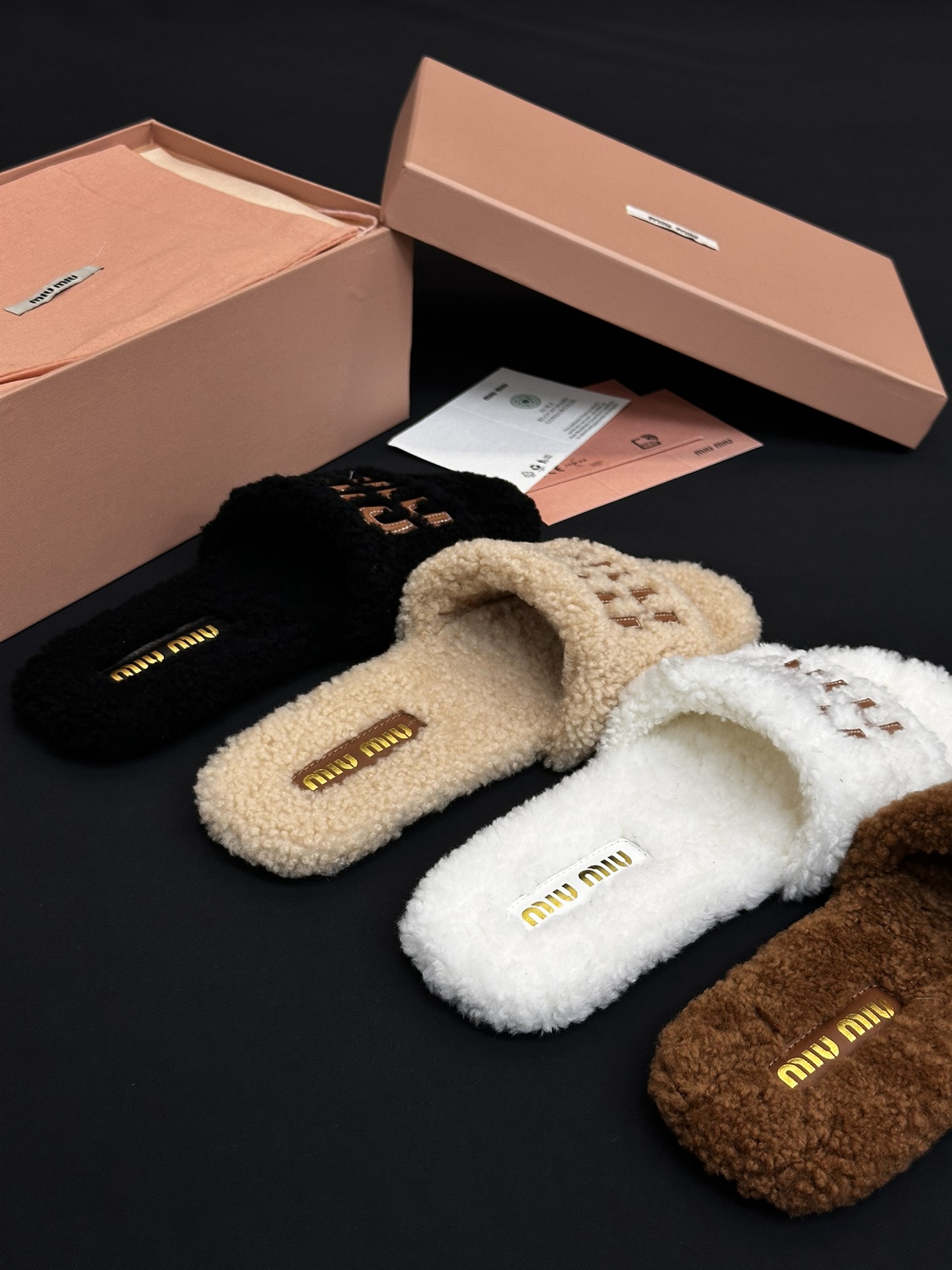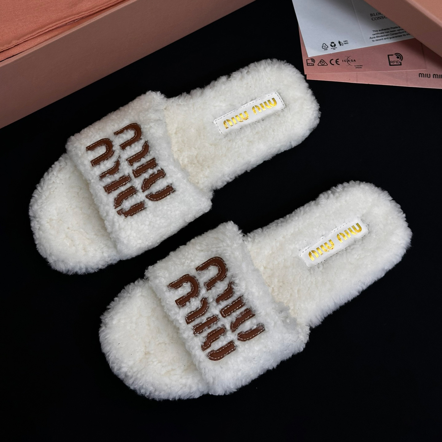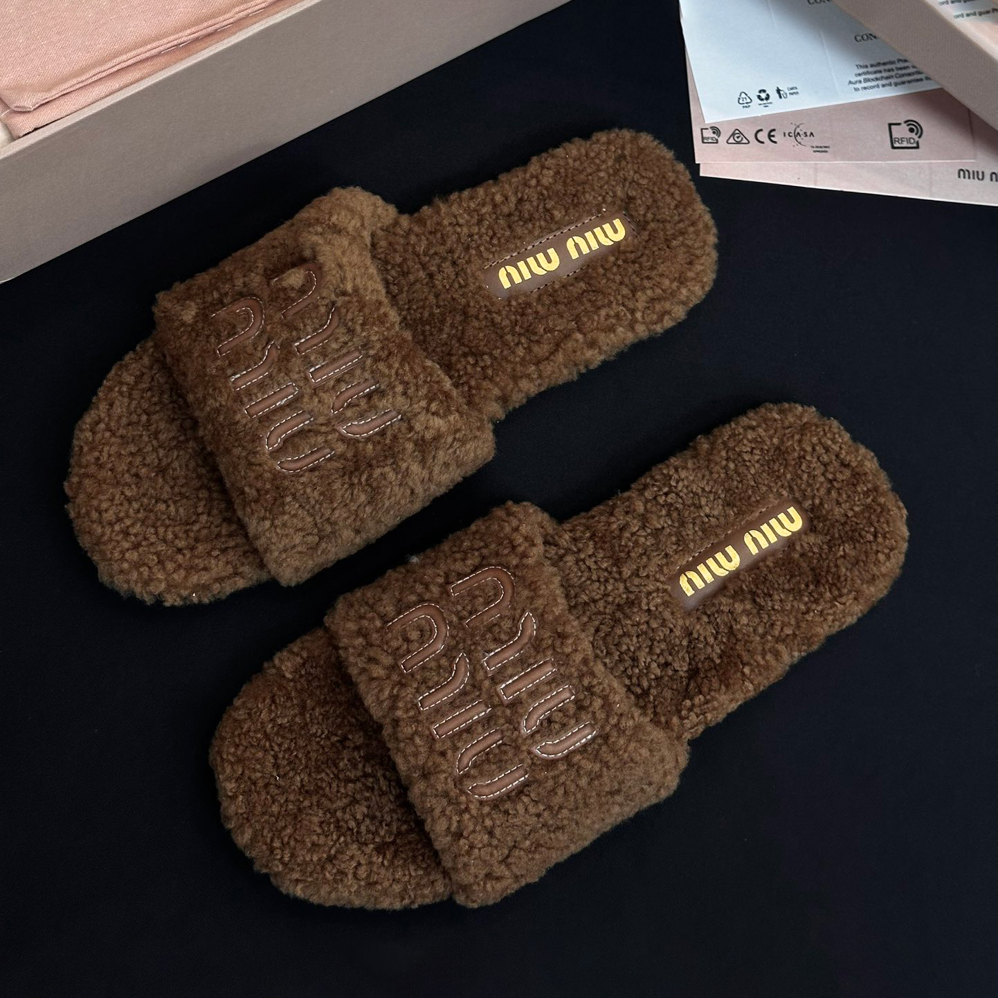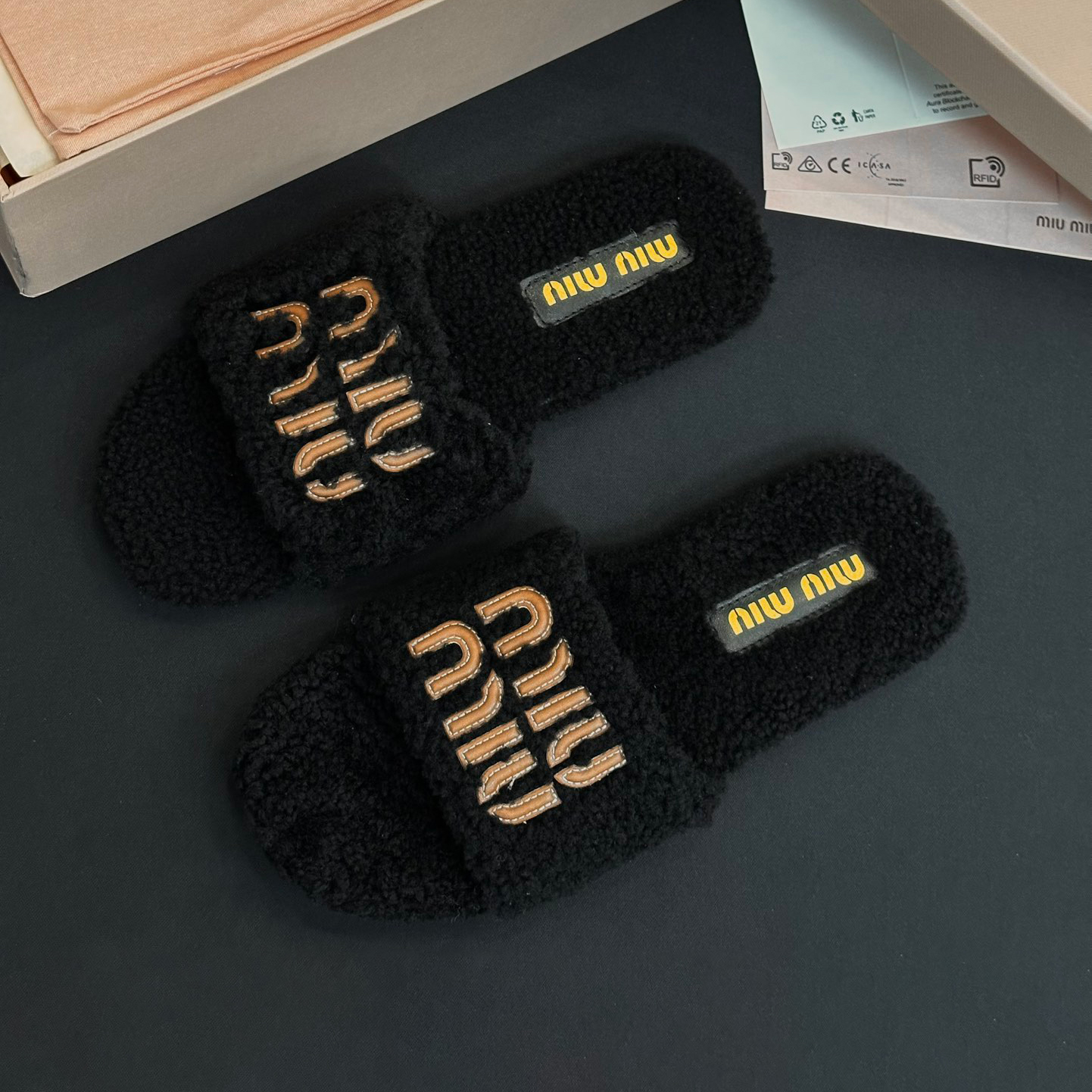 NIGO MiuMiu Women's Fall/winter Fashion Casual Round Toe Open Toe Flat Soled Shearling Slippers Shoes#nigo78477