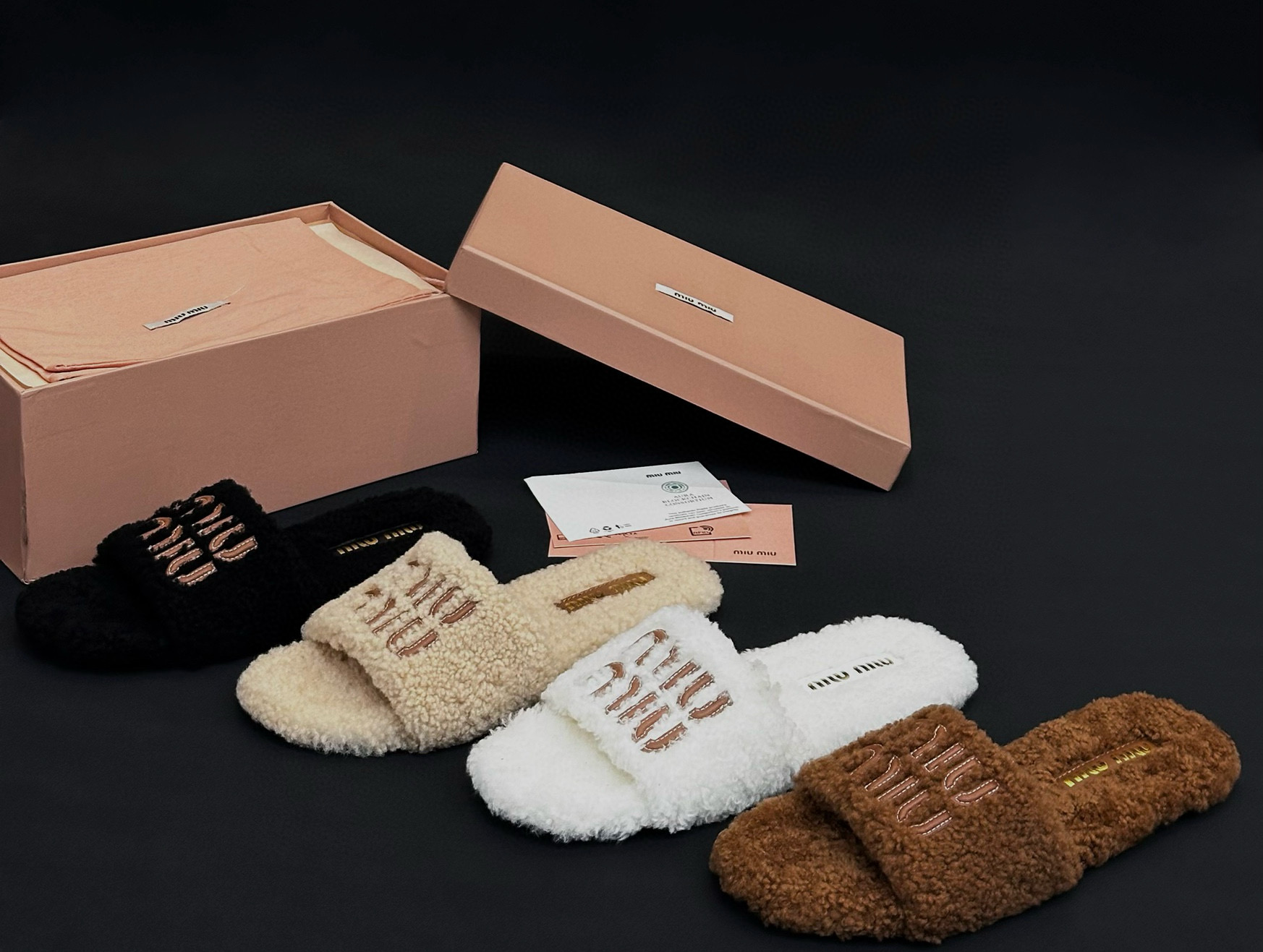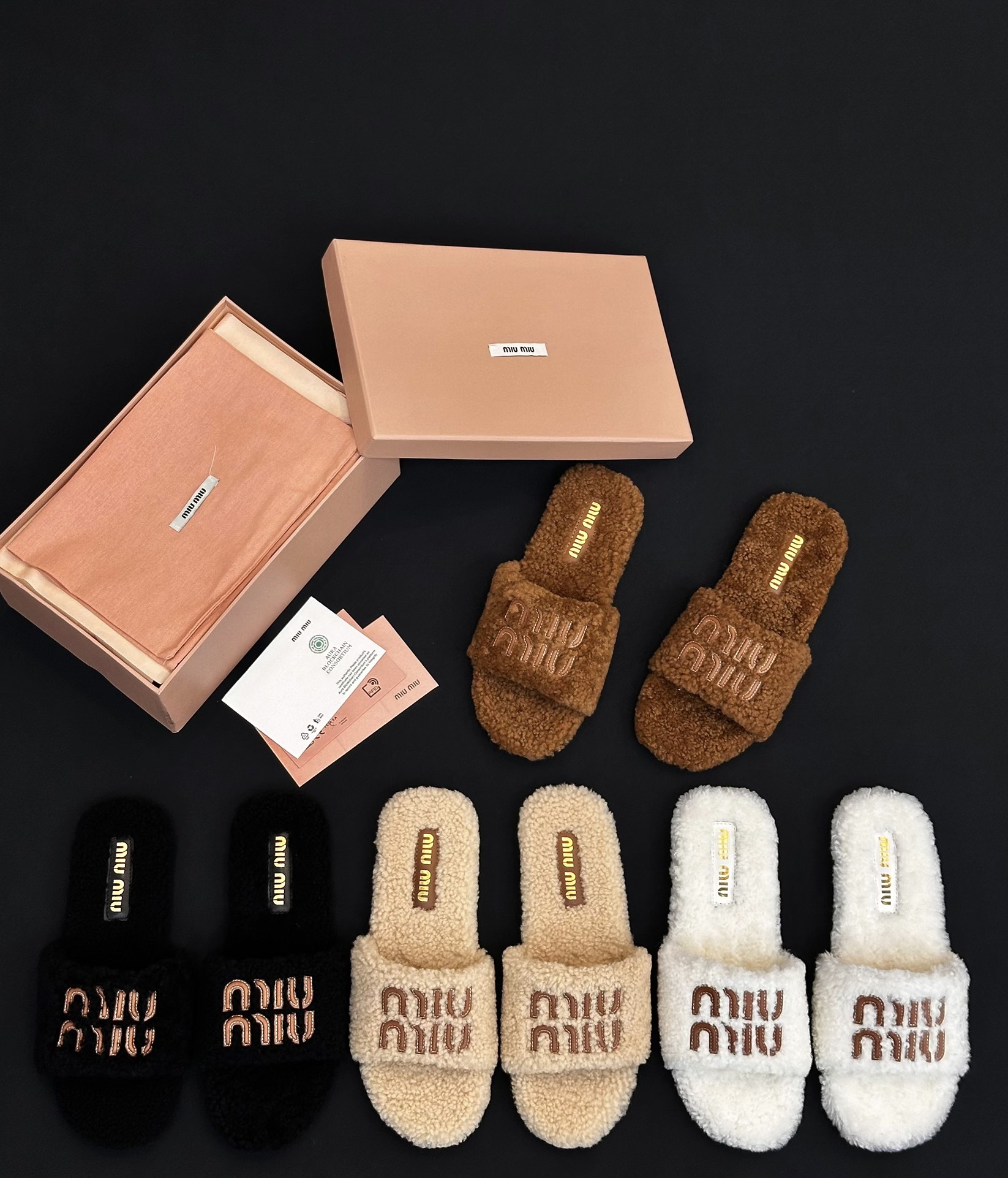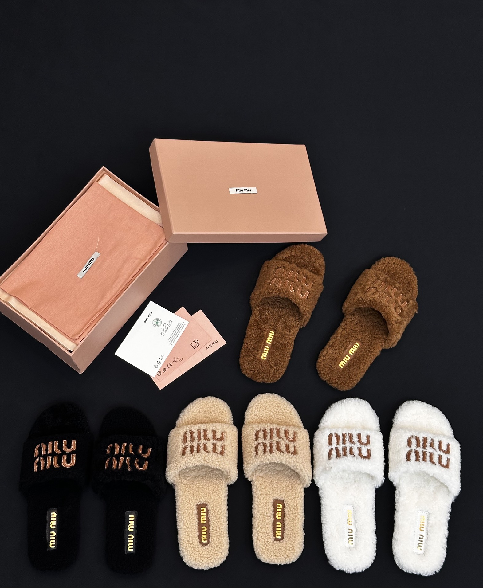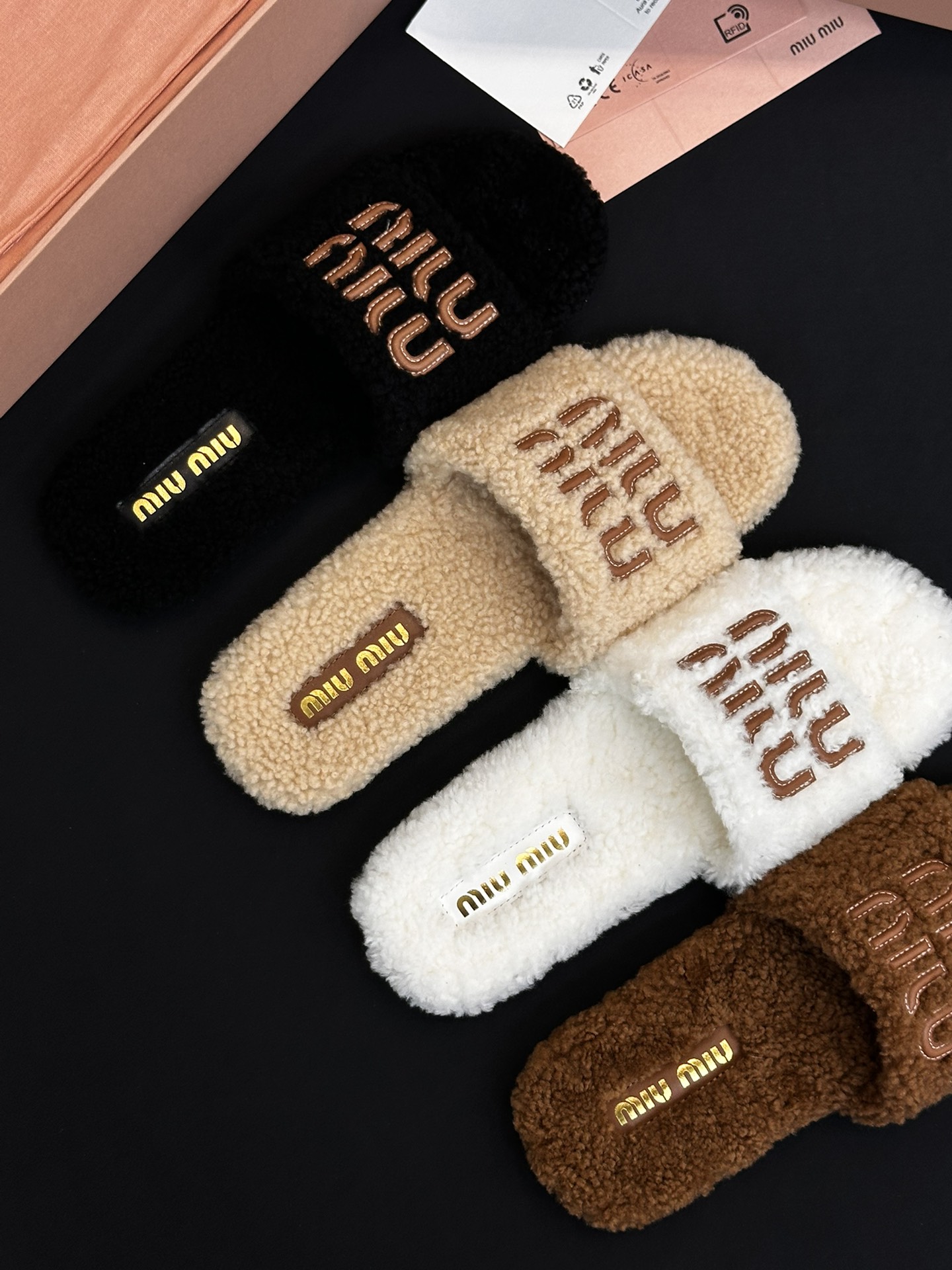 NIGO MiuMiu Women's Fall/winter Fashion Casual Round Toe Open Toe Flat Soled Shearling Slippers Shoes#nigo78477