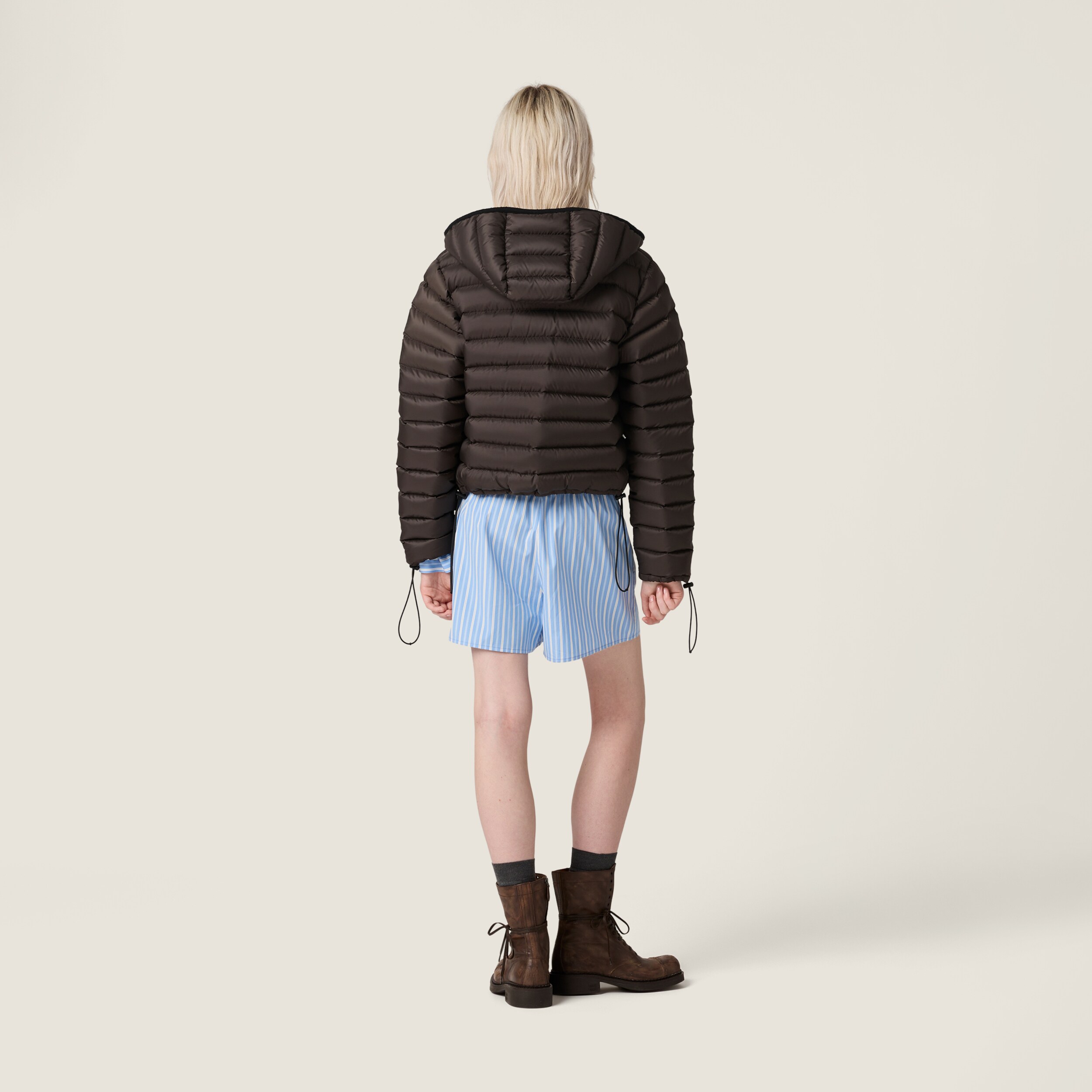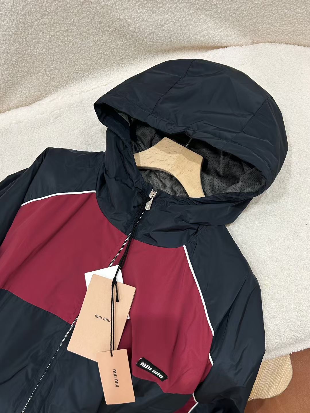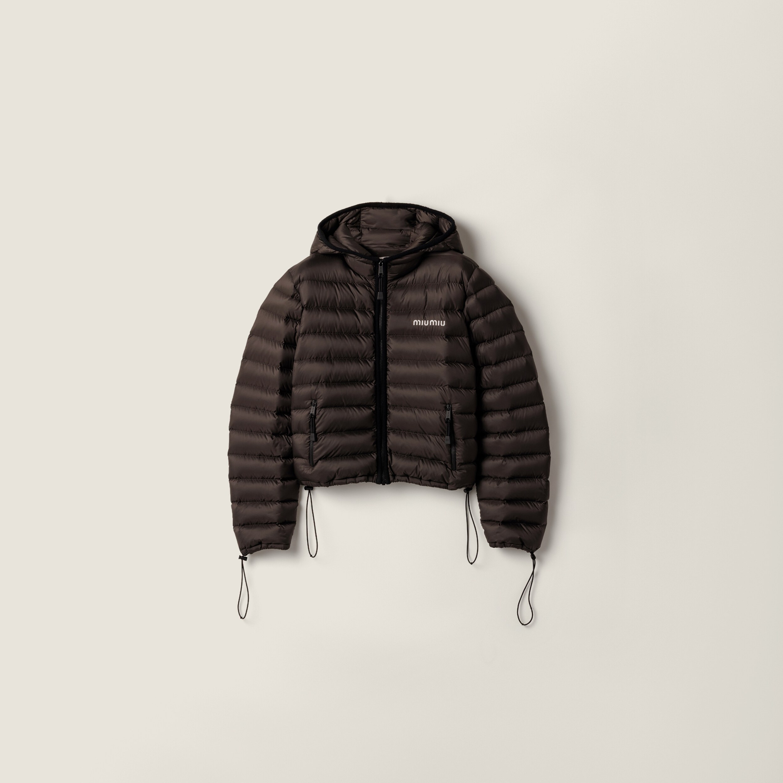NIGO MiuMiu Women's Lightweight Pongé Down Hooded Jacket Solid Color Zipper Logo Embroidered Long Sleeve Outerwear #nigo81545