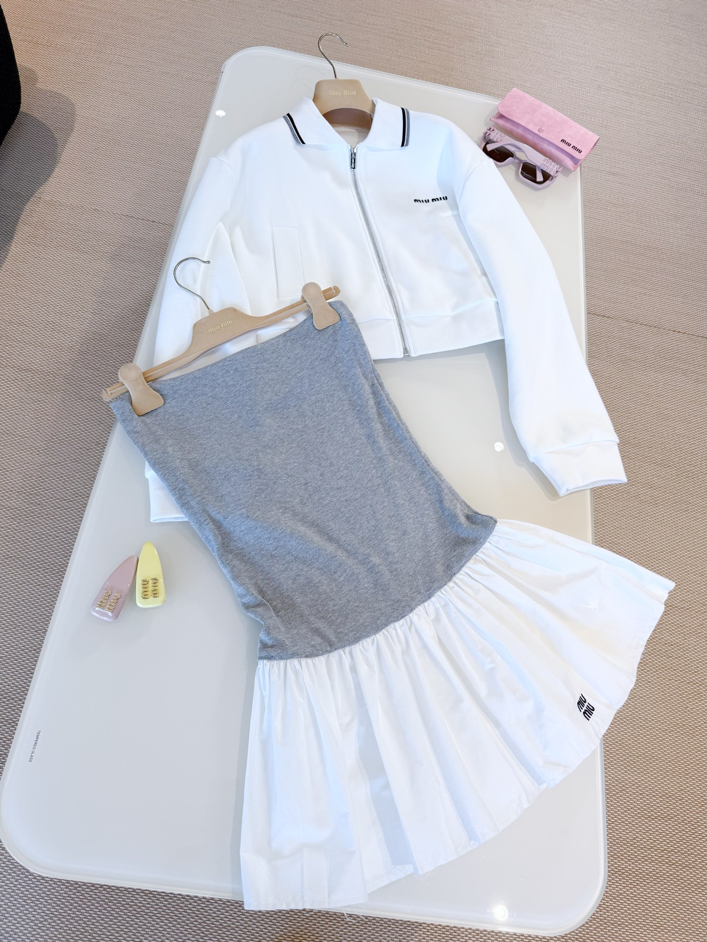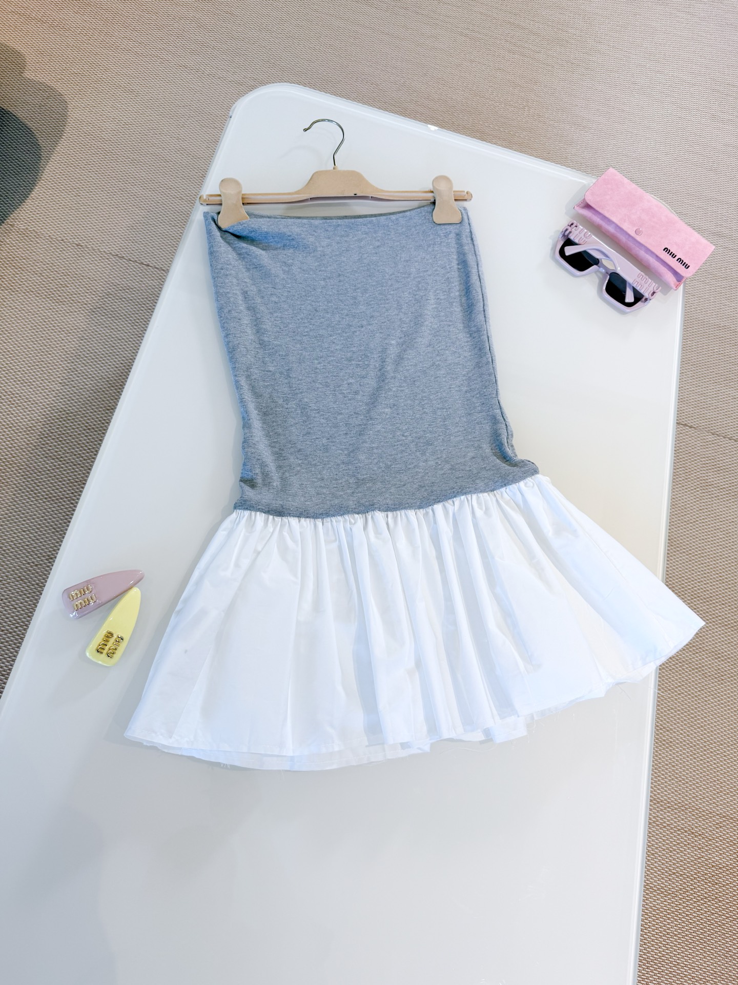 NIGO MiuMiu Women's Spring/summer Fashion Casual Poplin And Plain Knit Strapless Sleeveless Dress #nigo78396