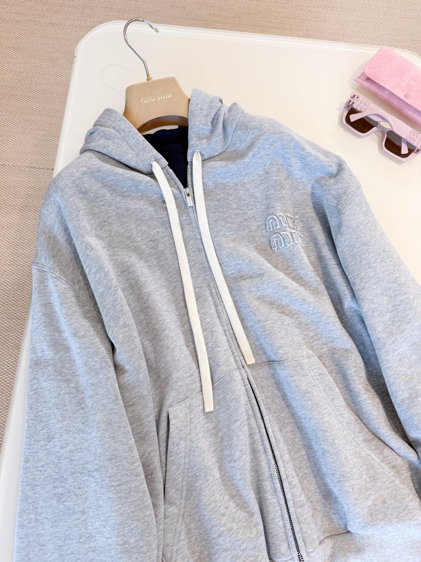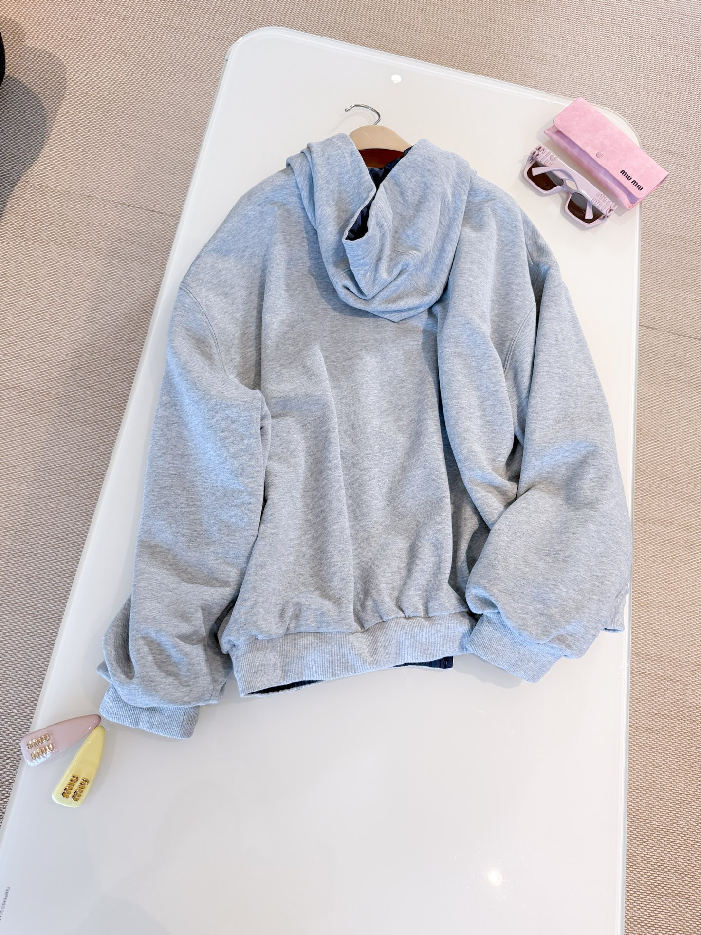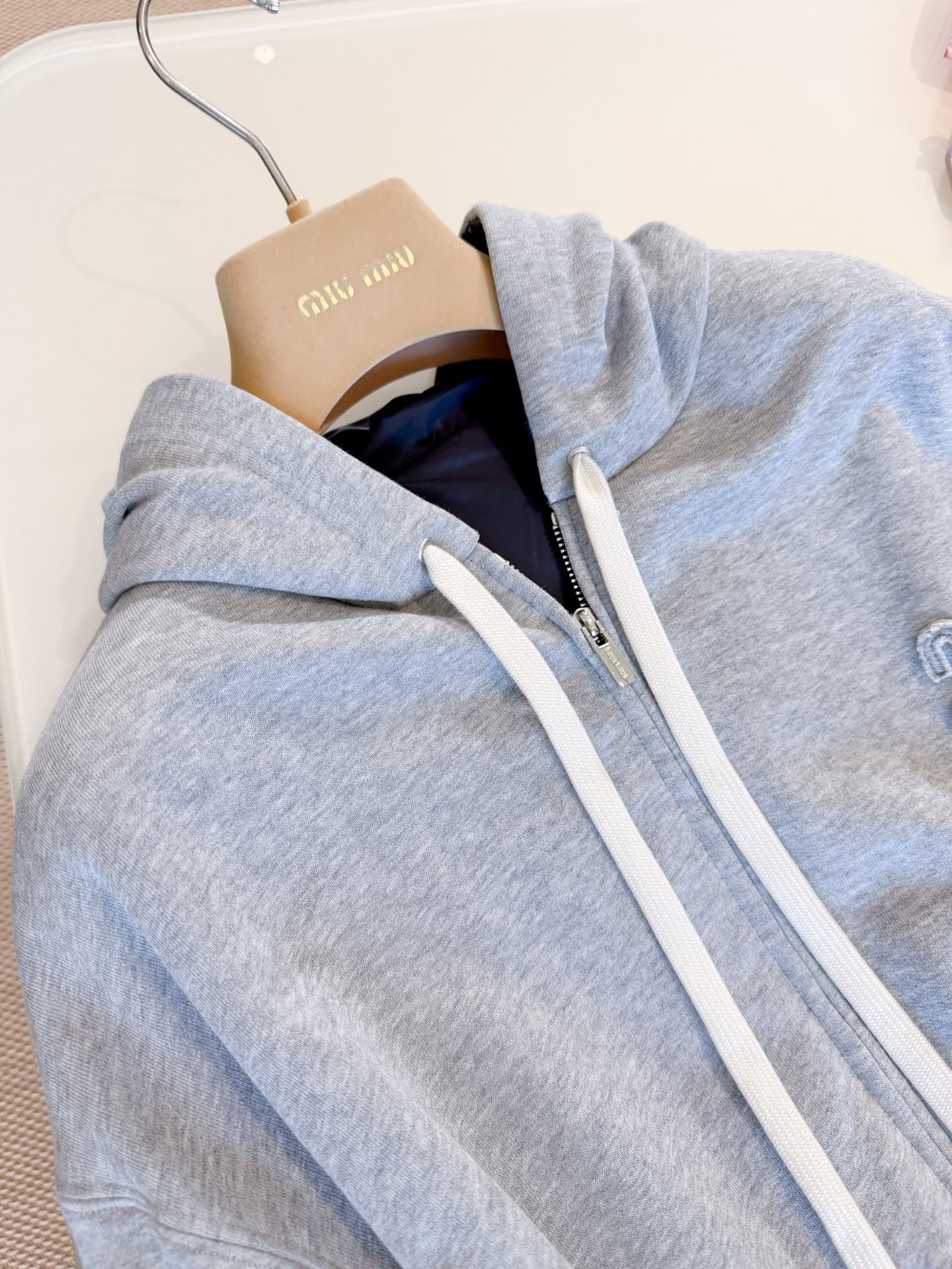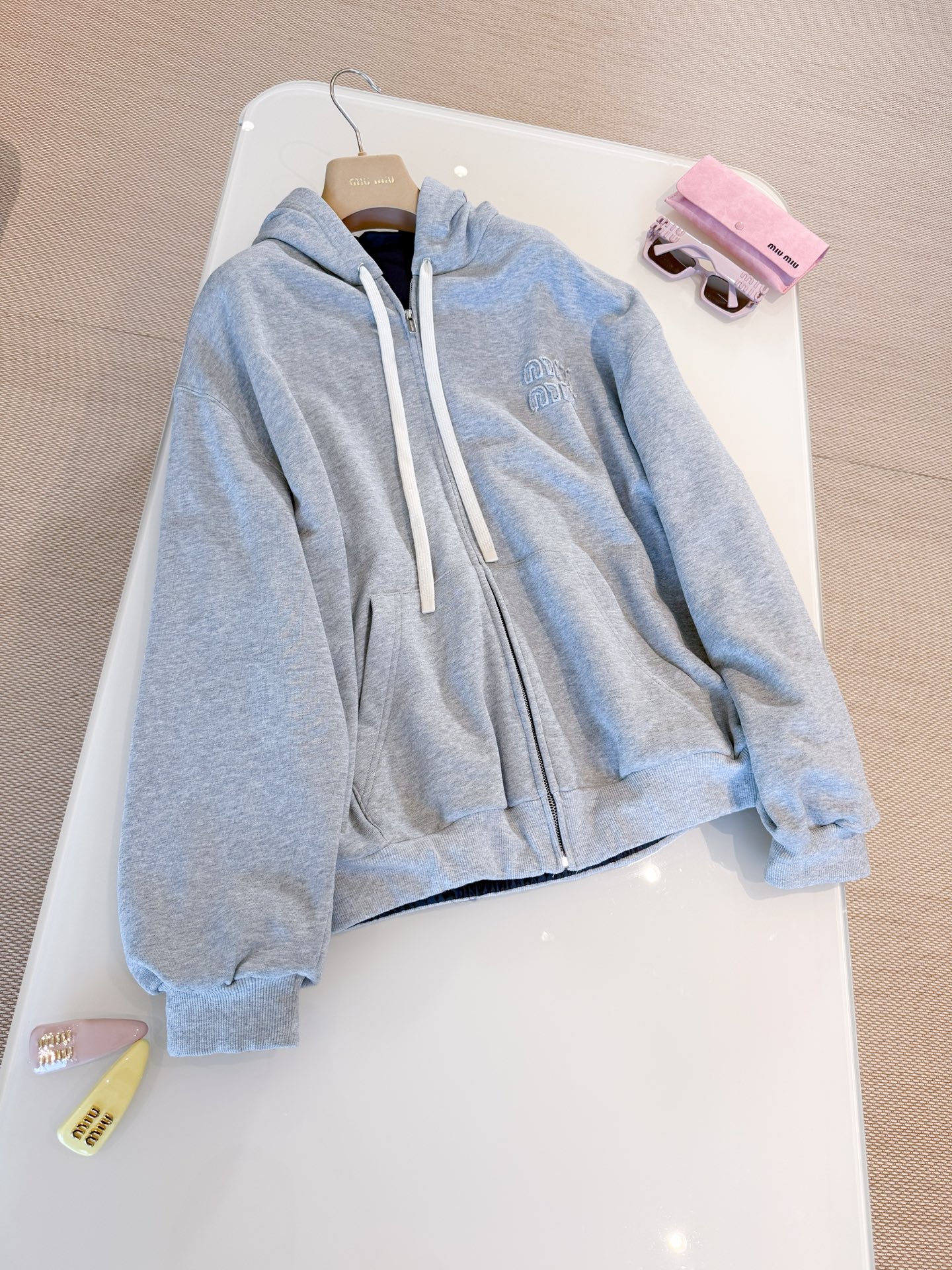 NIGO MiuMiu Women's Spring/autumn Fashion Casual Plain Knit Cotton Nylon Reversible Hooded Zipper Jacket #nigo78399