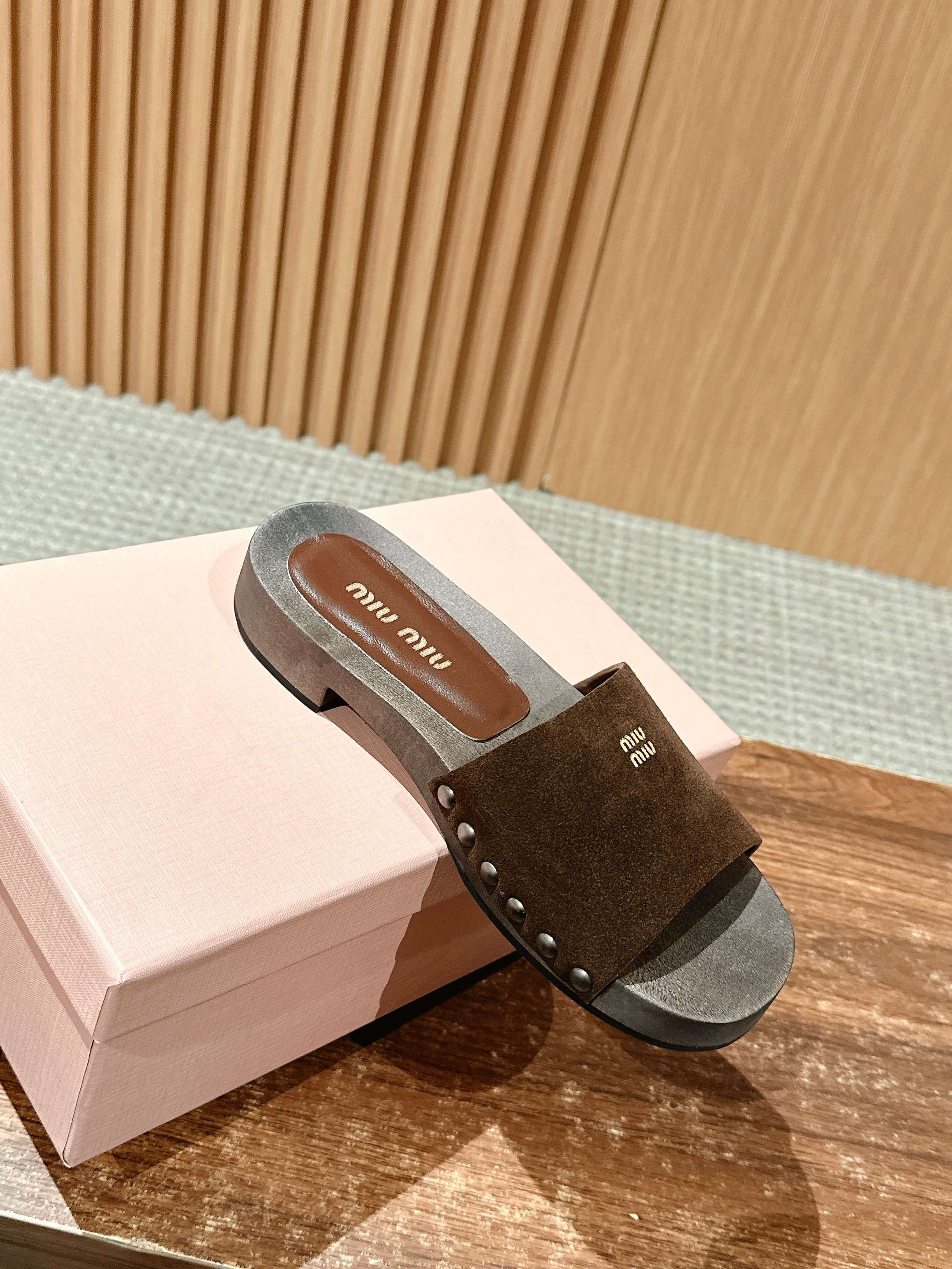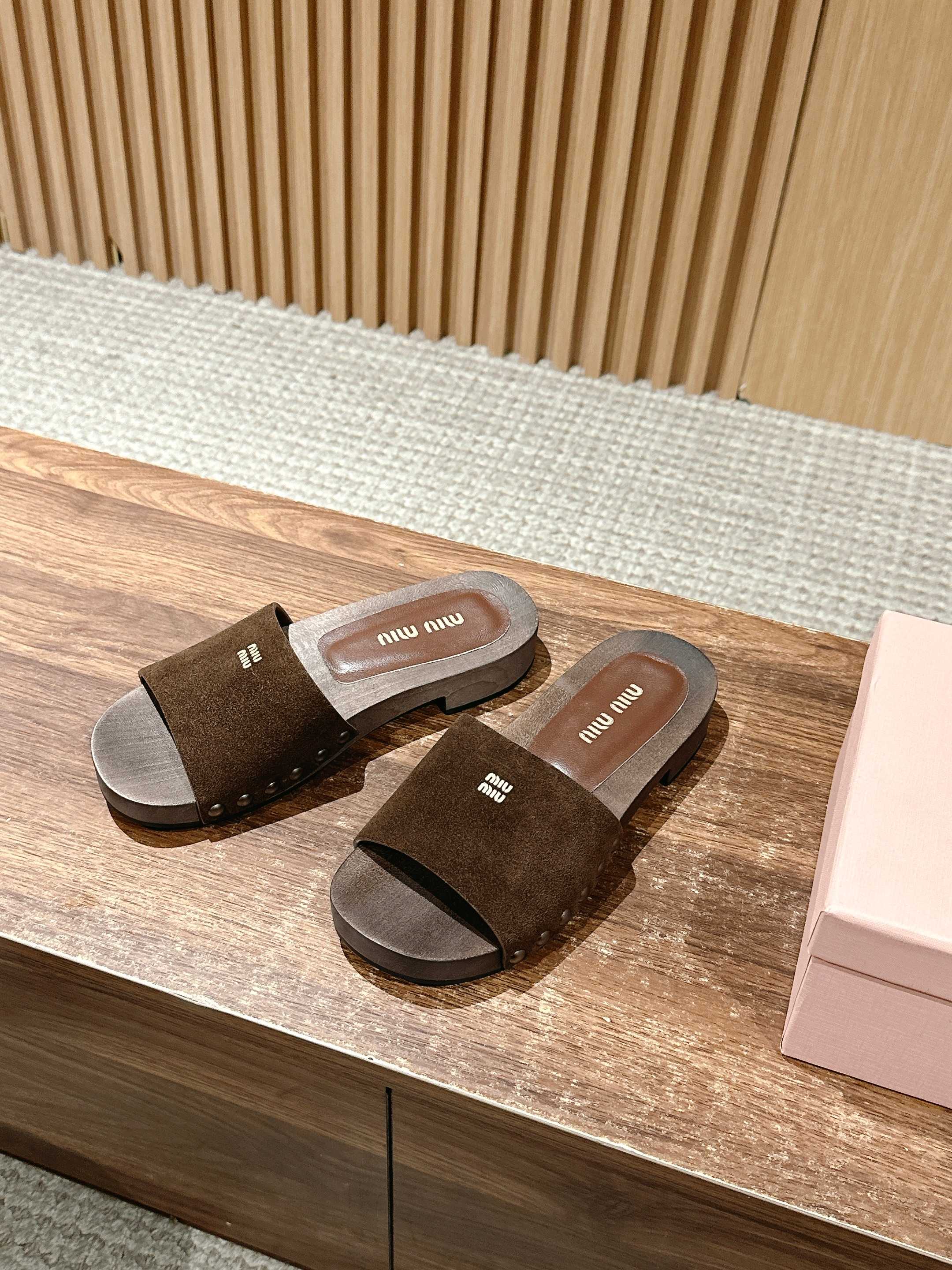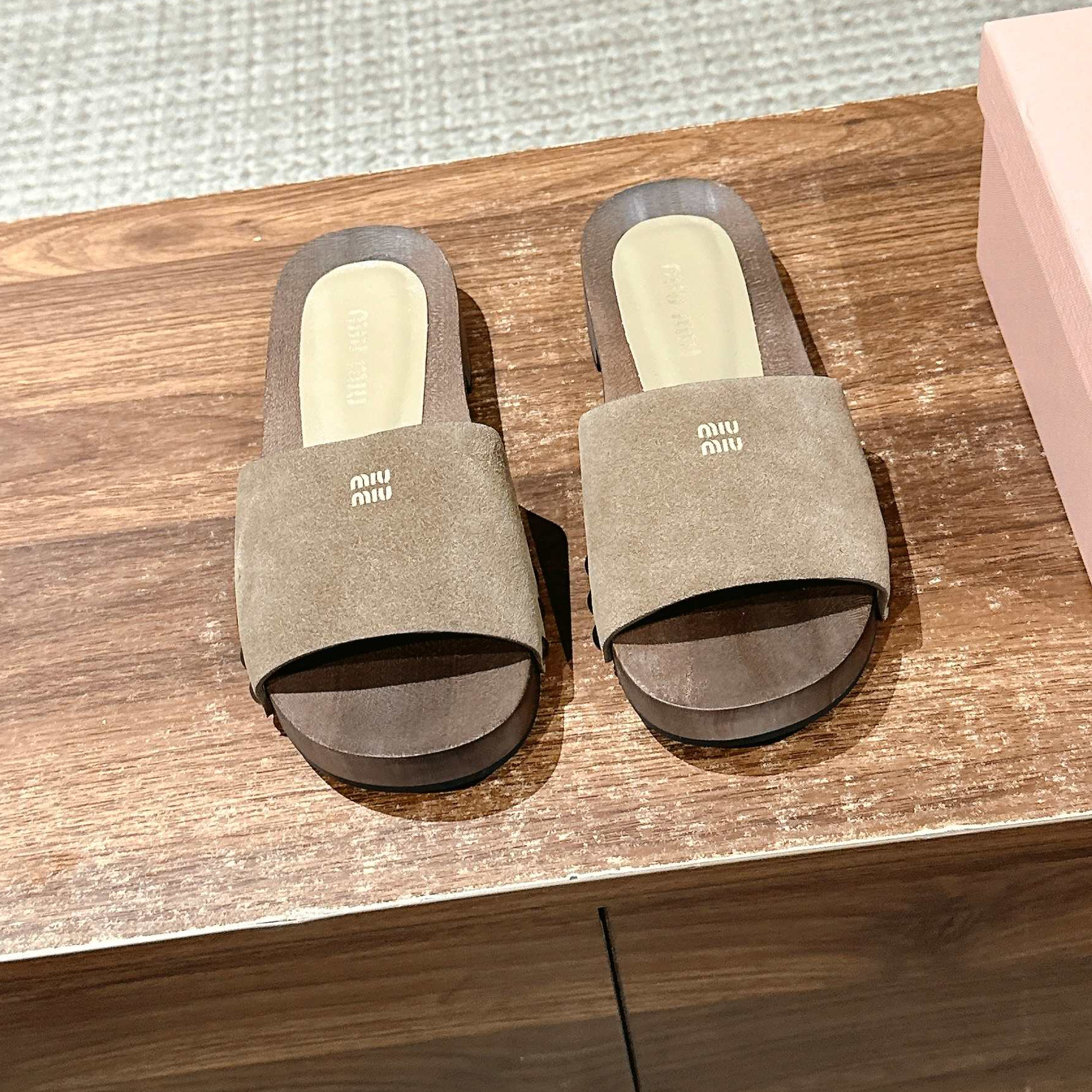 NIGO MiuMiu Women's Summer Fashion Casual Round Toe Slip On Suede Leather Wooden Sole Sandals Shoes #nigo78432