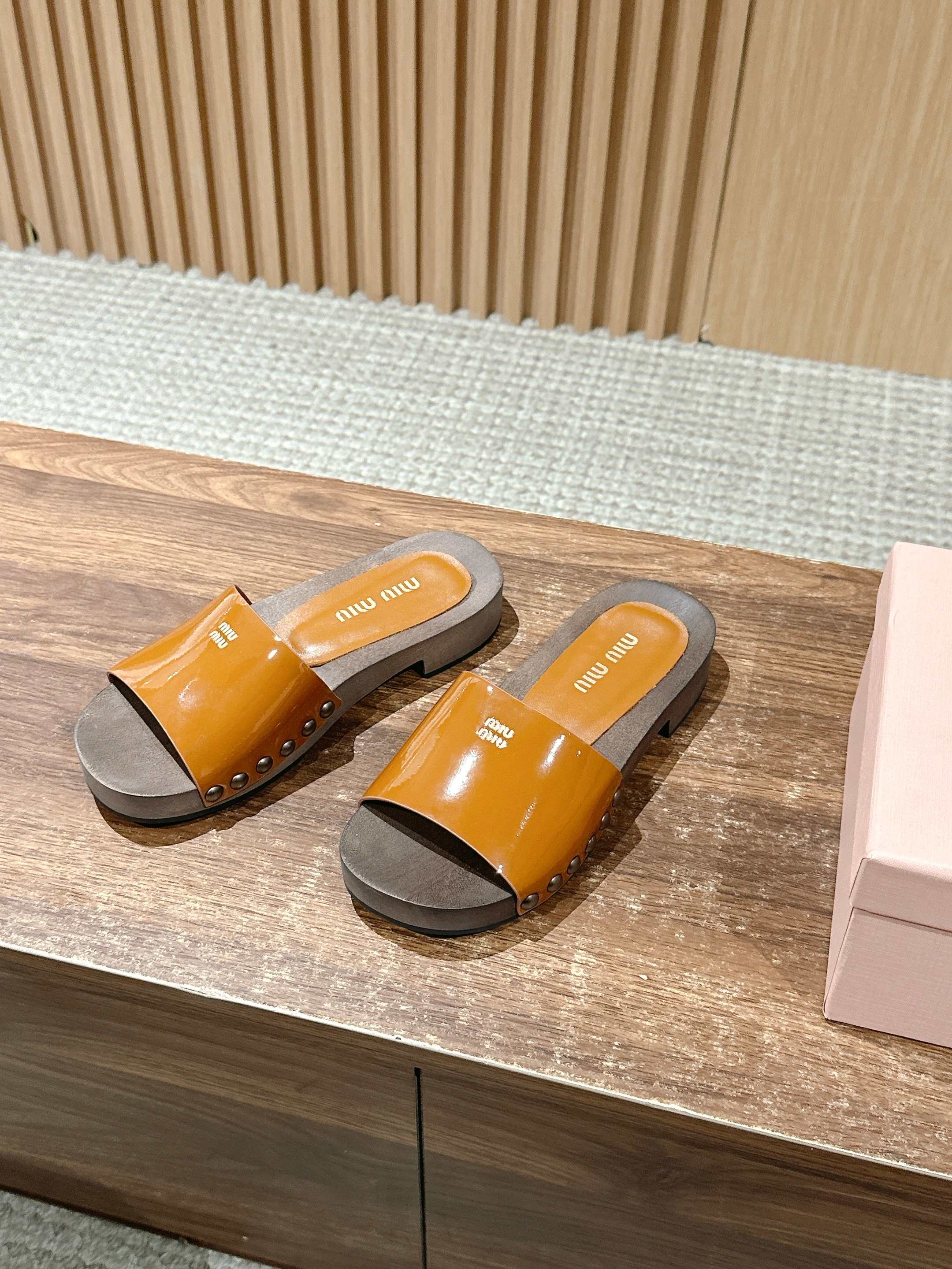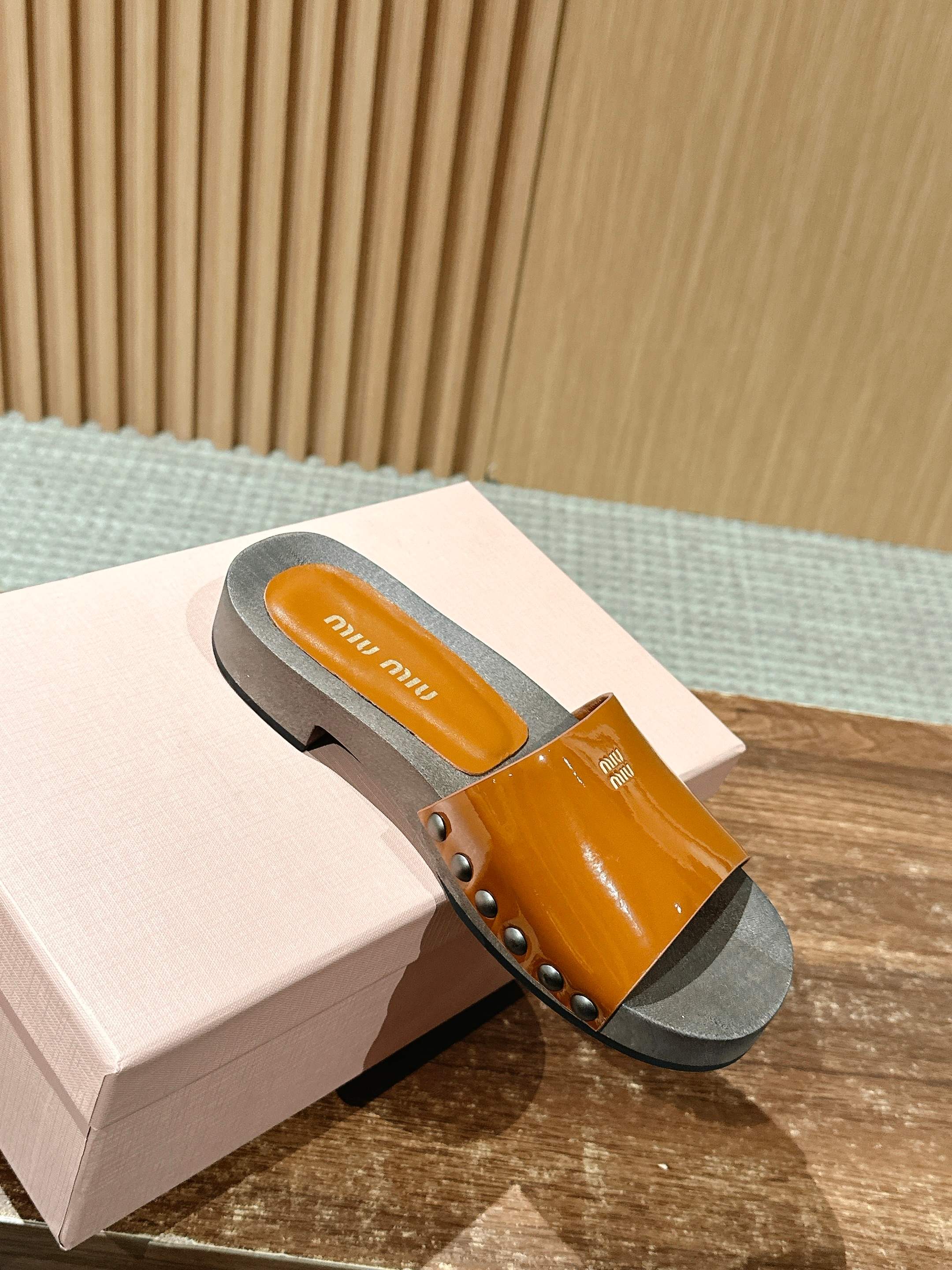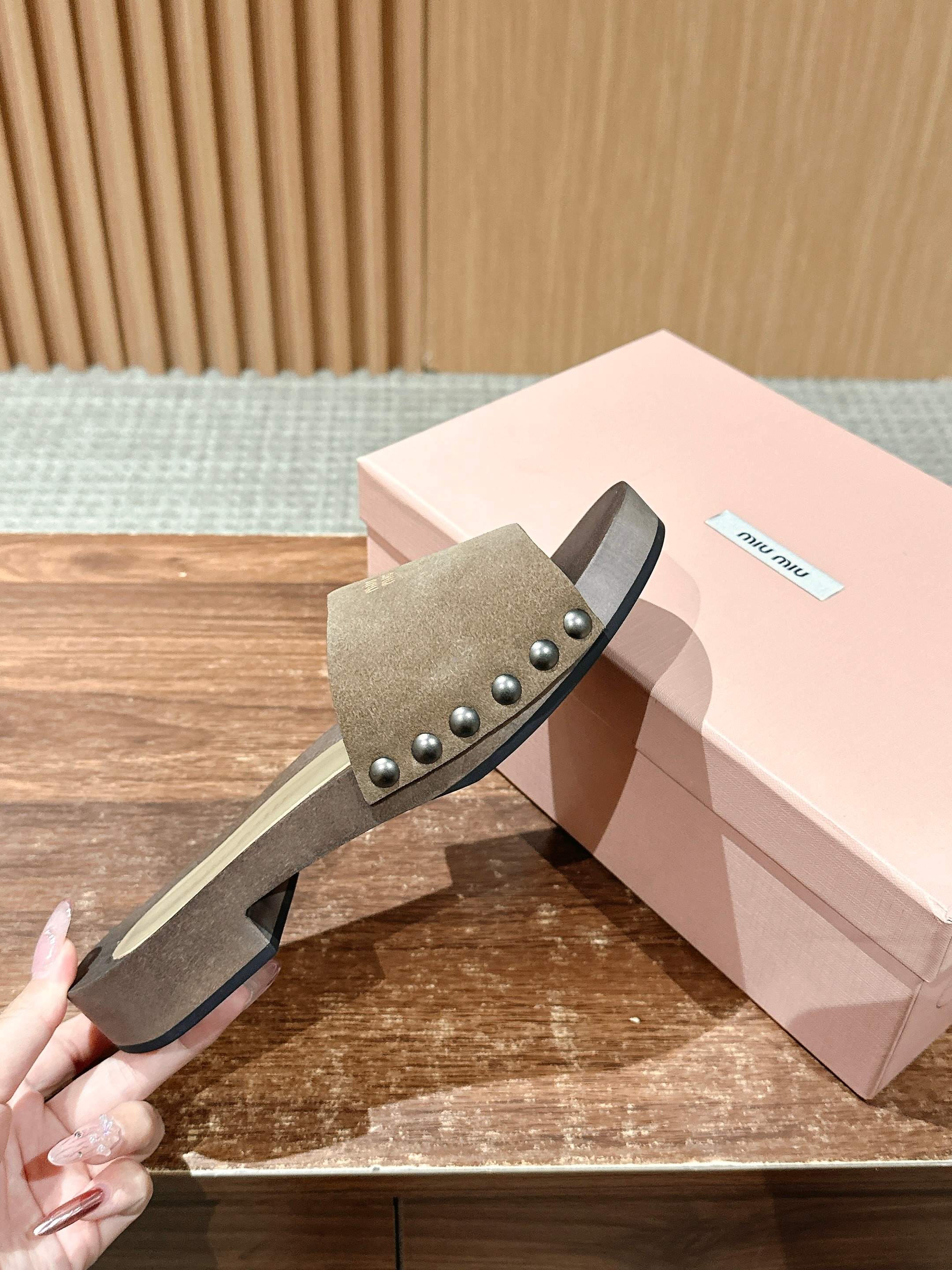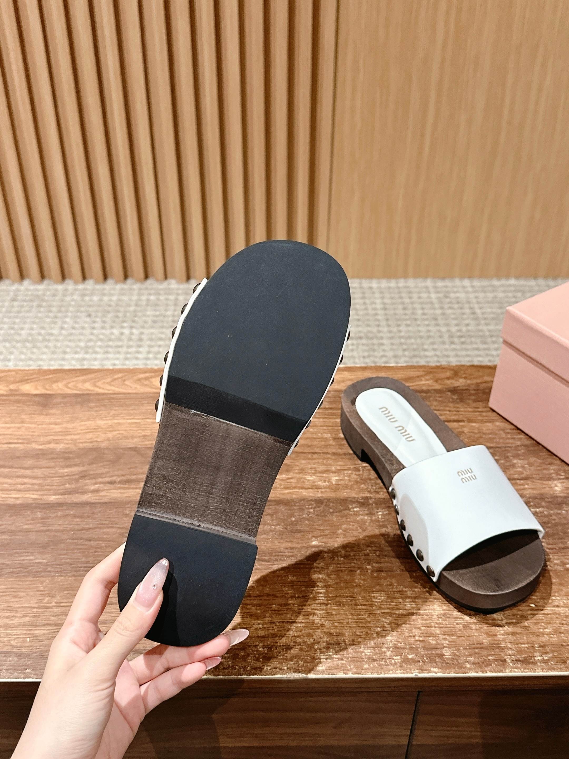 NIGO MiuMiu Women's Summer Fashion Casual Round Toe Slip On Suede Leather Wooden Sole Sandals Shoes #nigo78432
