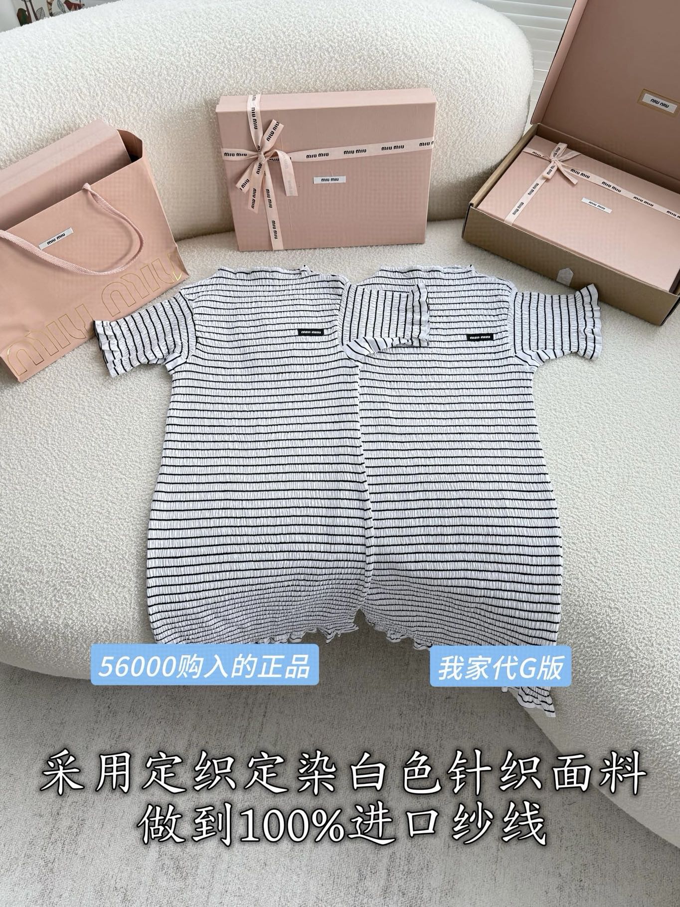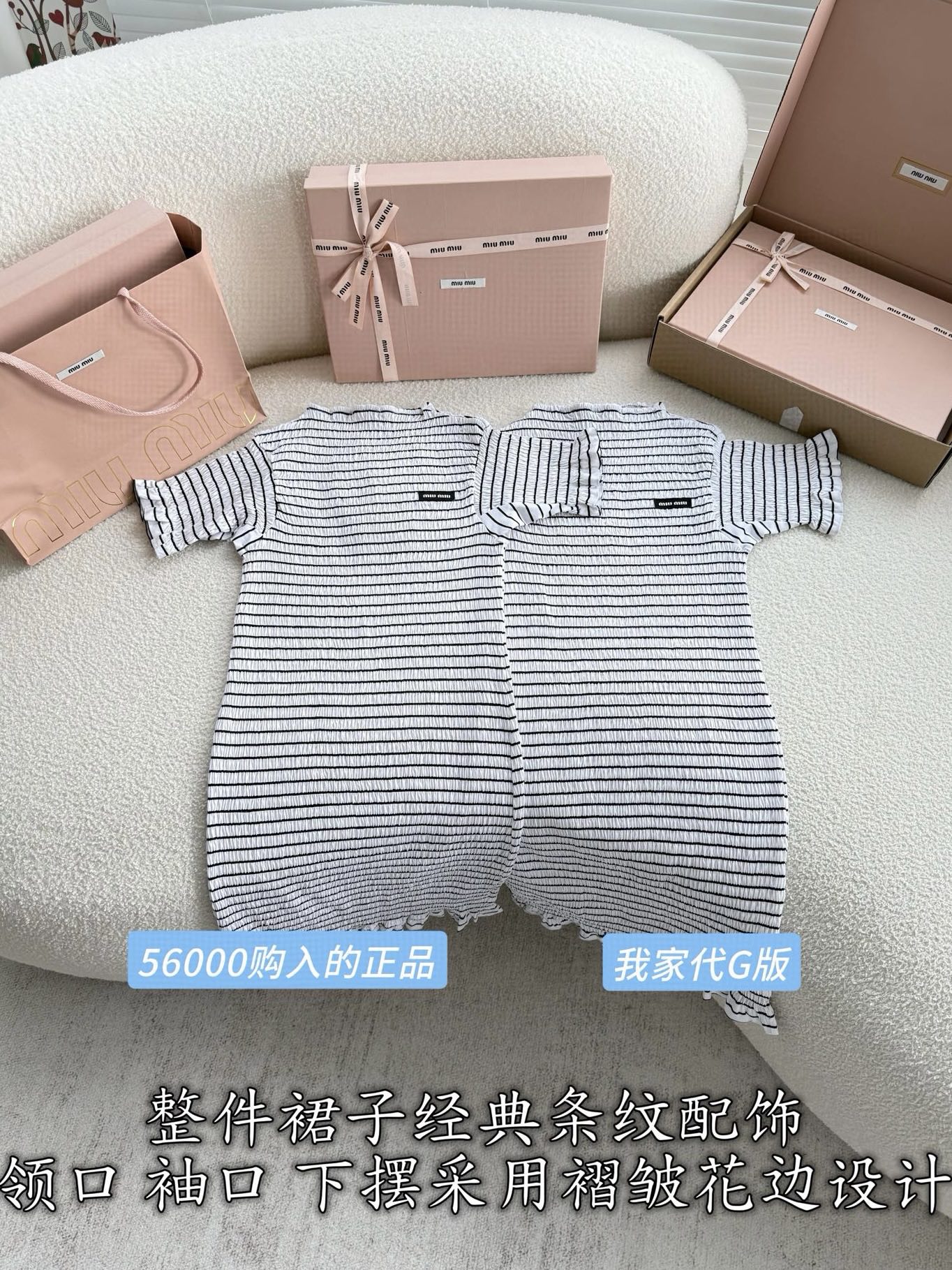 NIGO MiuMiu Women's Summer Fashion Casual Pleated Striped Plain Knit Short Sleeve Dress #nigo78442