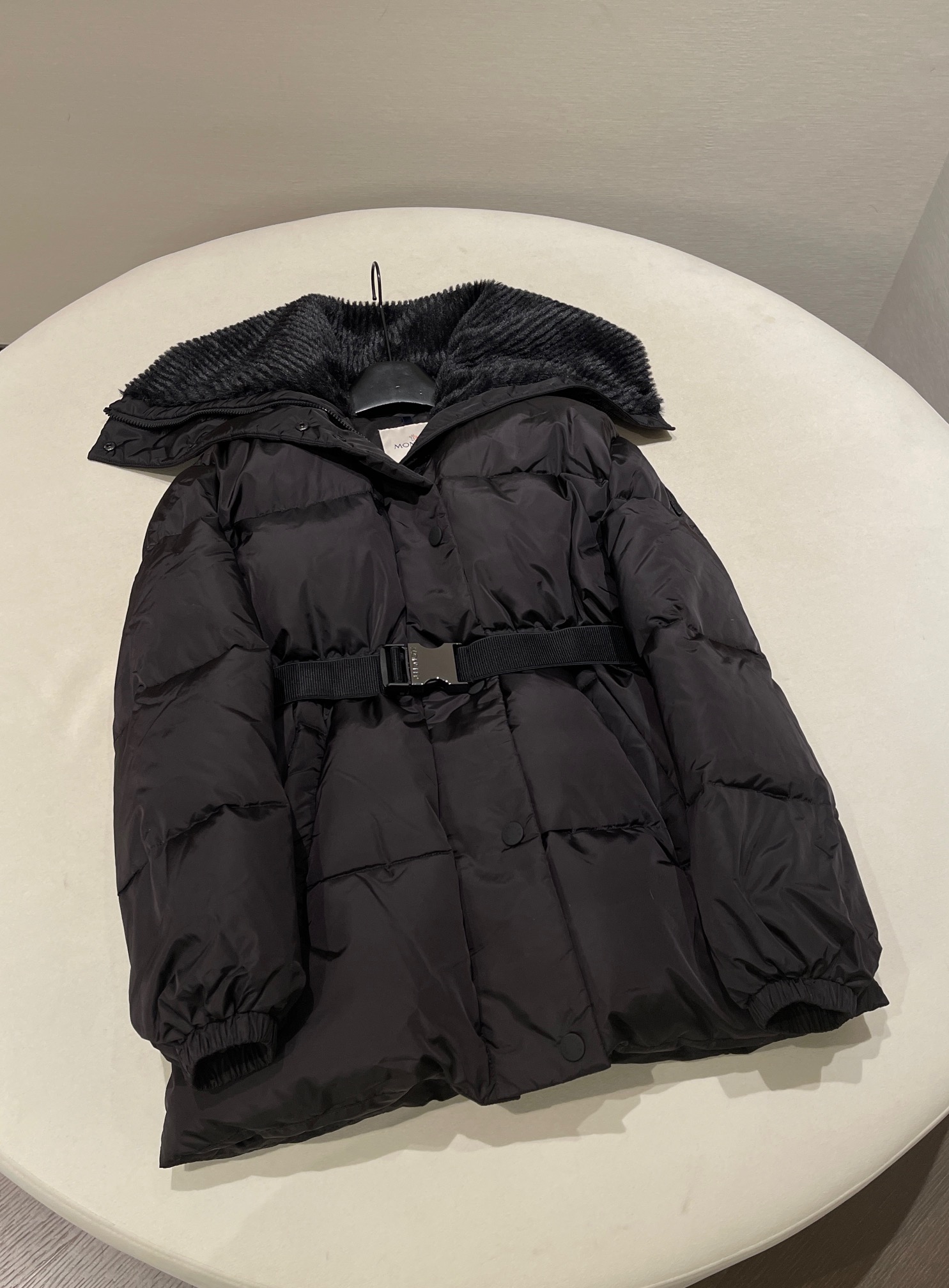 NIGO Moncler Women's Fall/Wimter Black Large Lapel Goose Down Jacket With Belt Nylon Short Style Light Jacket #nigo332539
