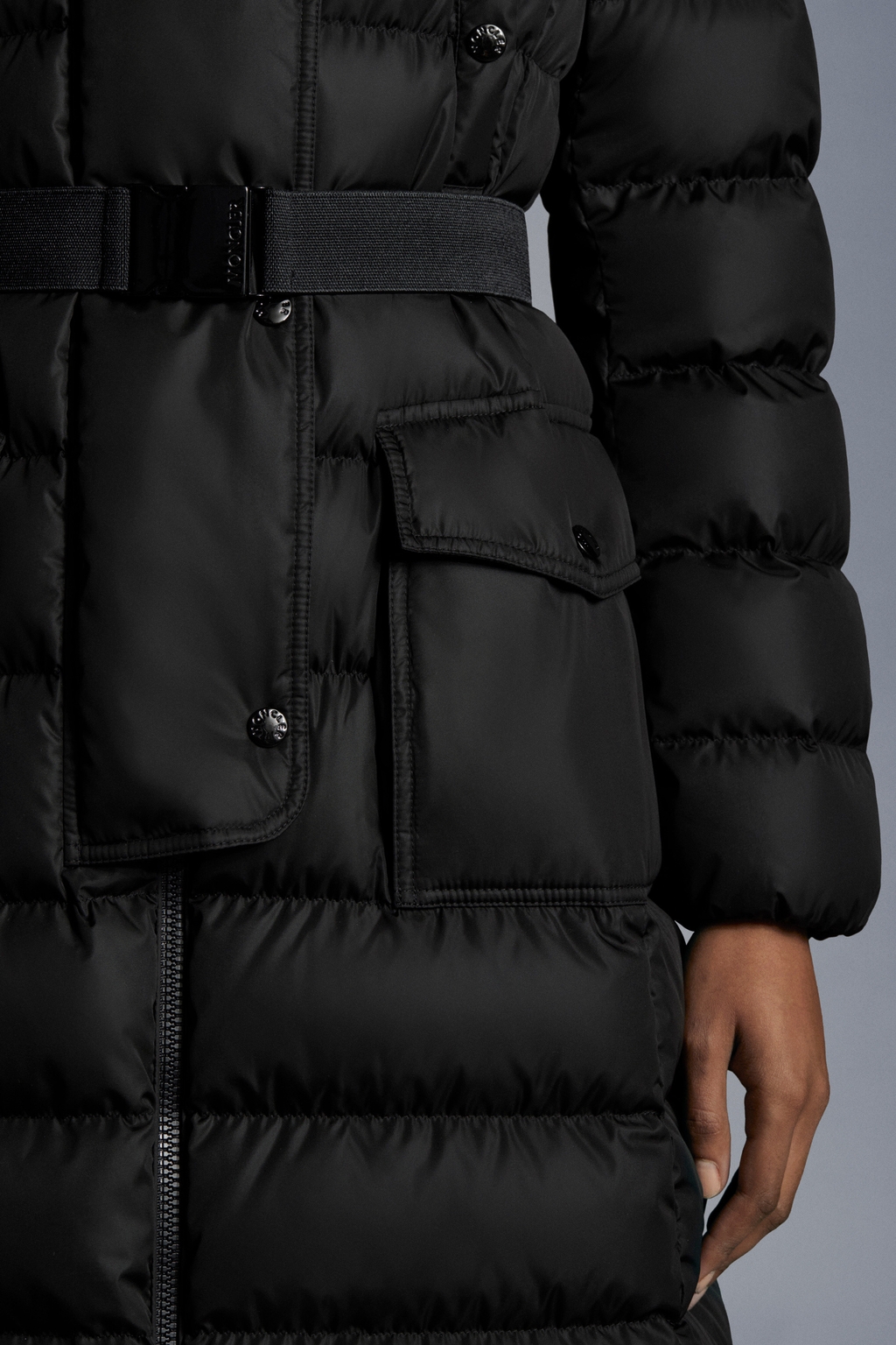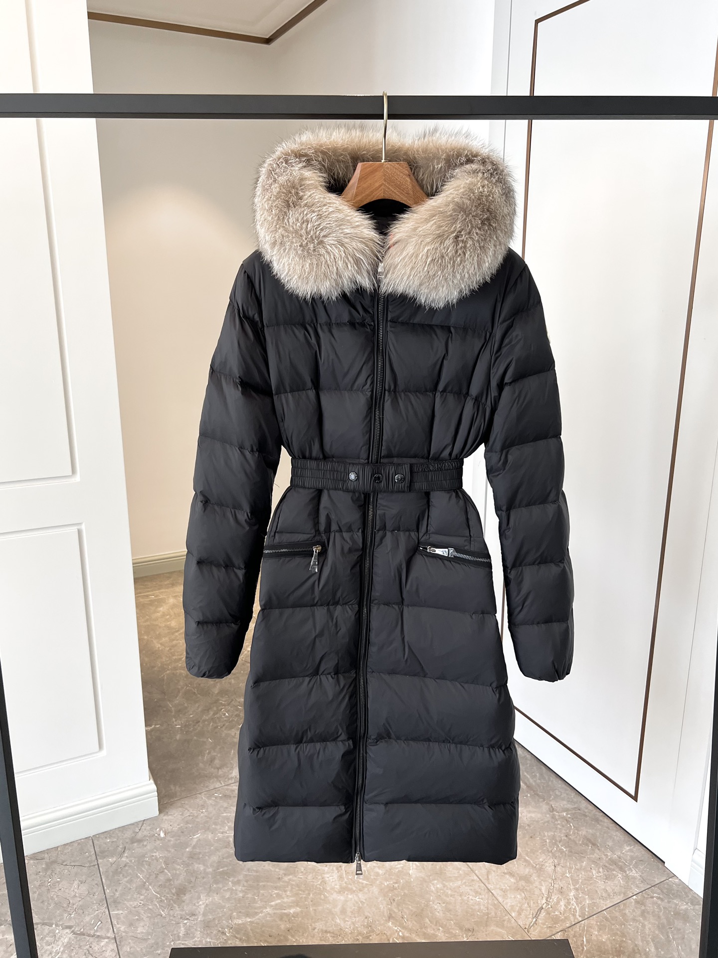 NIGO Moncler Fall/Winter Women's Fur Collar Logo Label Waist Long Solid Color Down Jacket Black #nigo293107