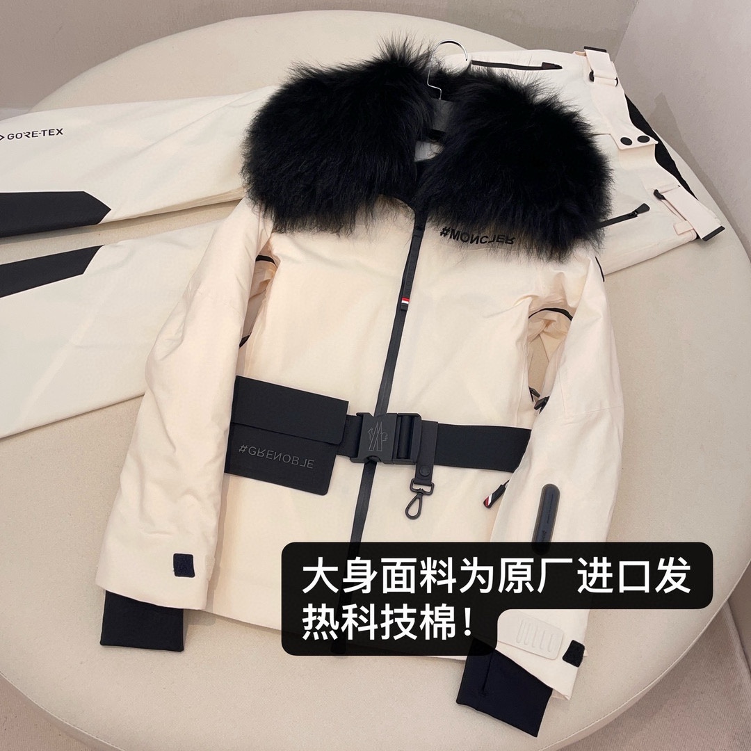 NIGO Moncler Grenoble Women's Autumn/winter Flap Lapel Zip Long Sleeve Jacket Ski Suit Letter Mid Waist Fitted Micro Casual Pants White #nigo71795
