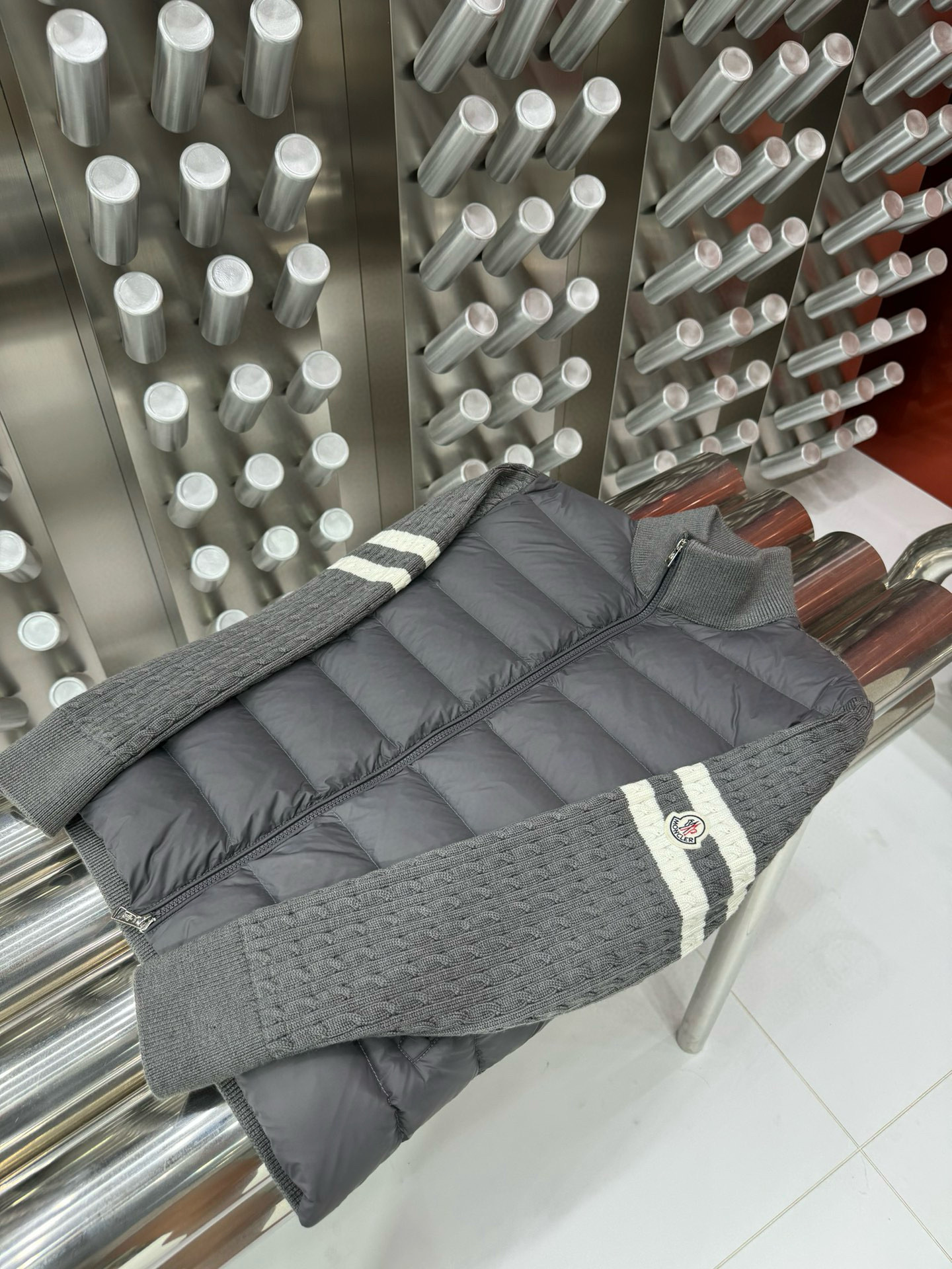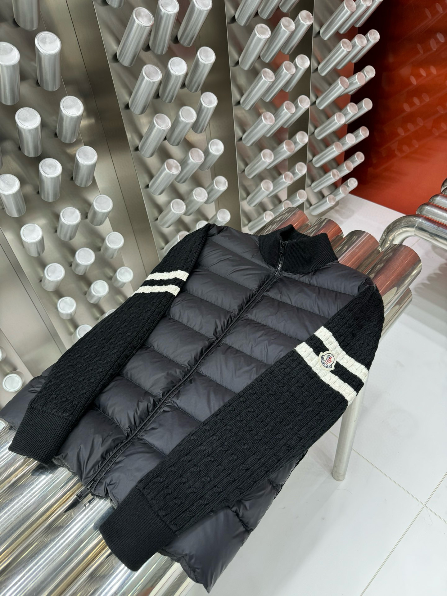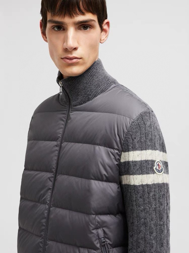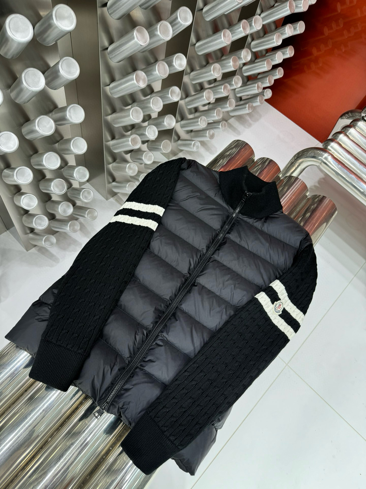 NIGO Moncler Men's Autumn And Winter Solid Colour Stand-up Collar Zip-up Striped Wool Patchwork Puffer Down Jacket #nigo77833