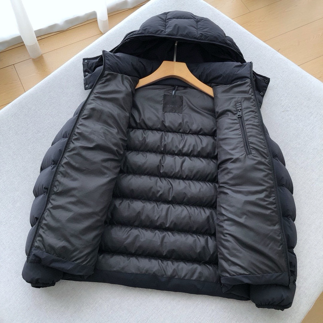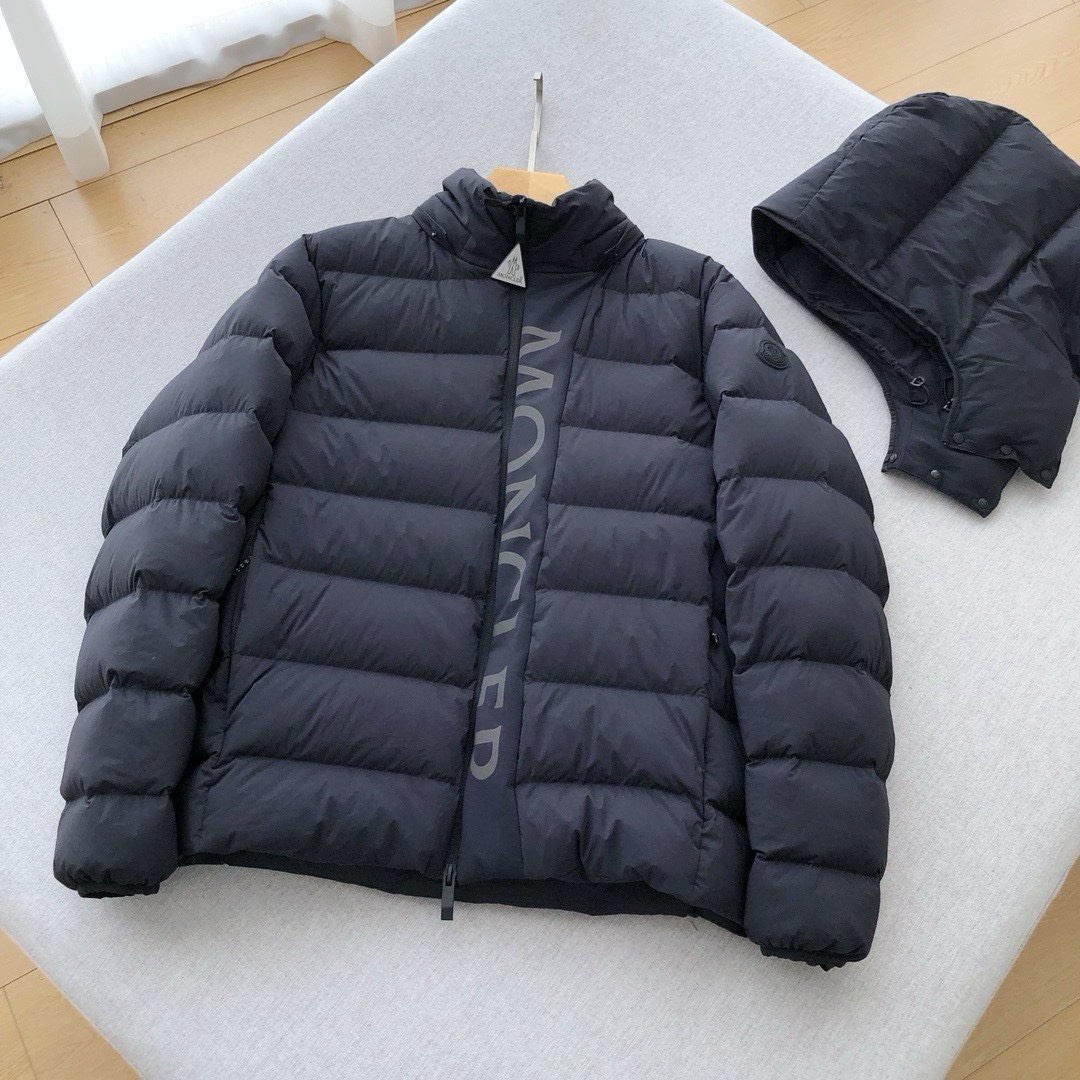 NIGO Moncler Men's Winter Black Letters Logo Print Zipper Hooded Short Puffer Down Long Sleeve Jacket #nigo73615