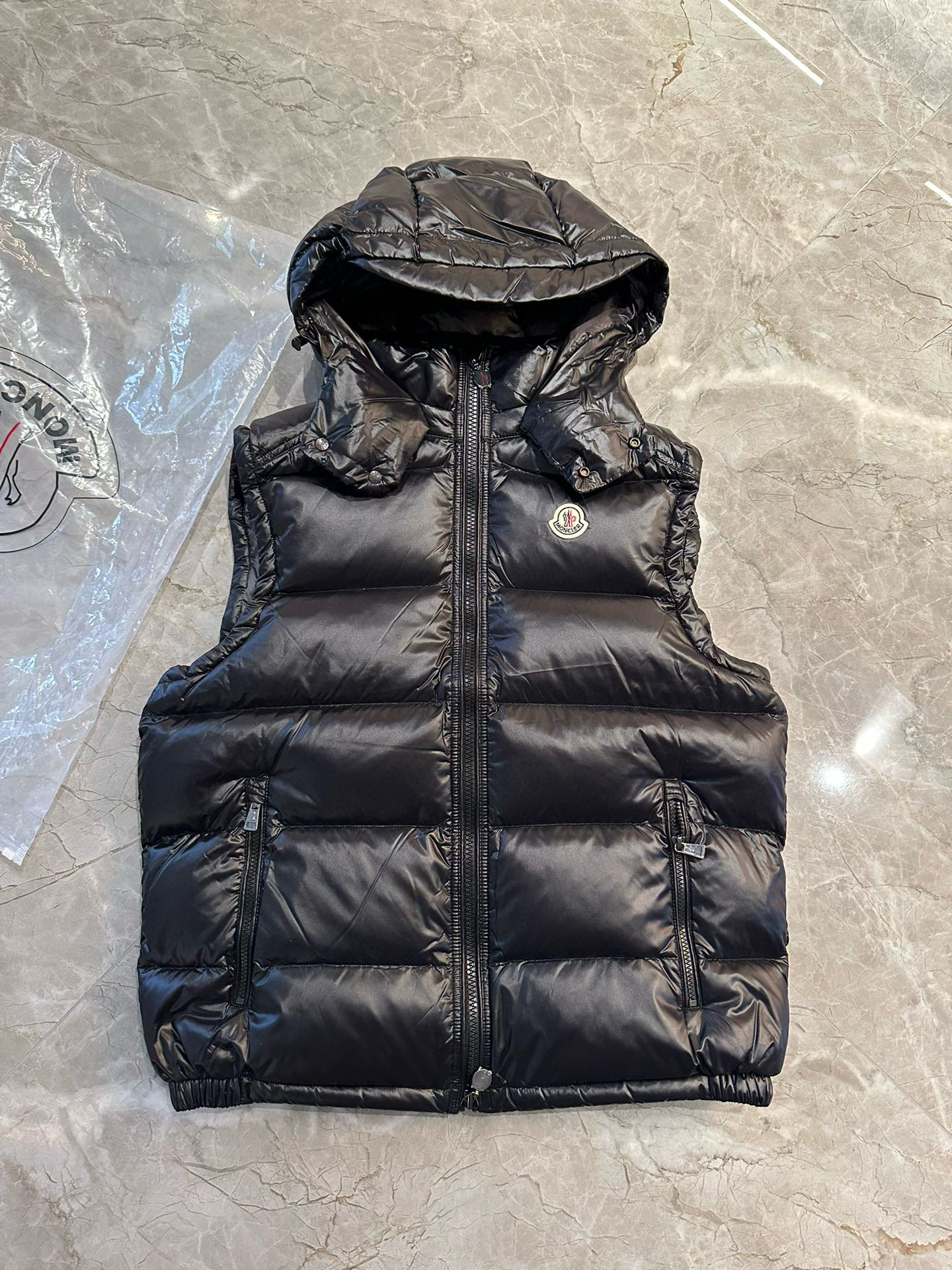 NIGO Moncler Men's Winter Black Solid Colour Logo Label Zip Hooded Down Short Waistcoat Vest #nigo97646