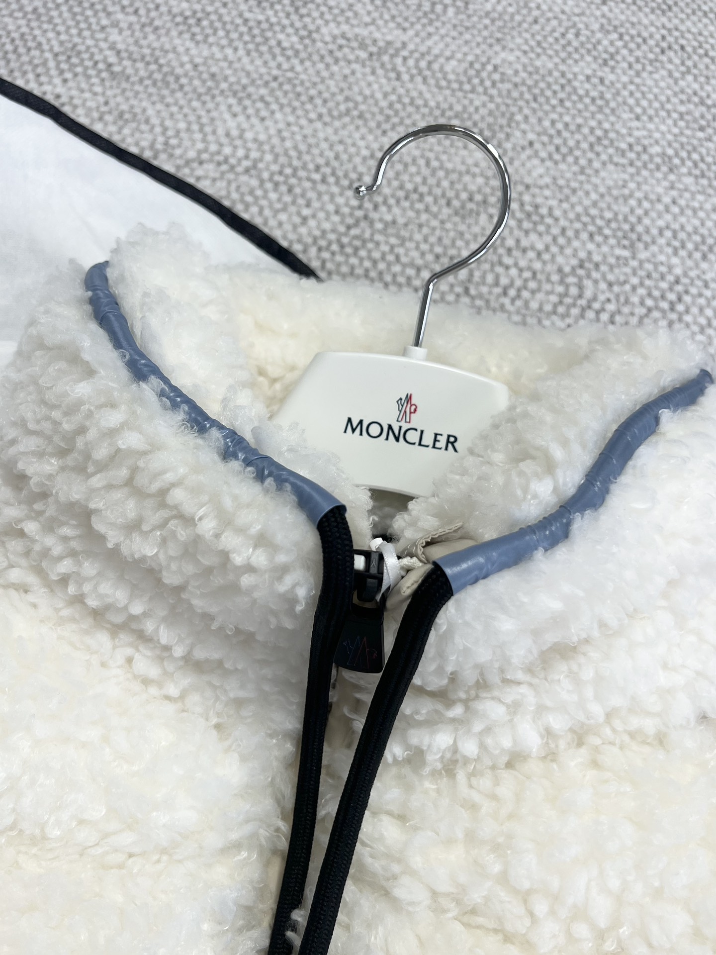 NIGO Moncler Women's Fall And Winter White Plush Stand Up Collar Drawstring Zipper Casual Long Sleeved Jacket #nigo74417