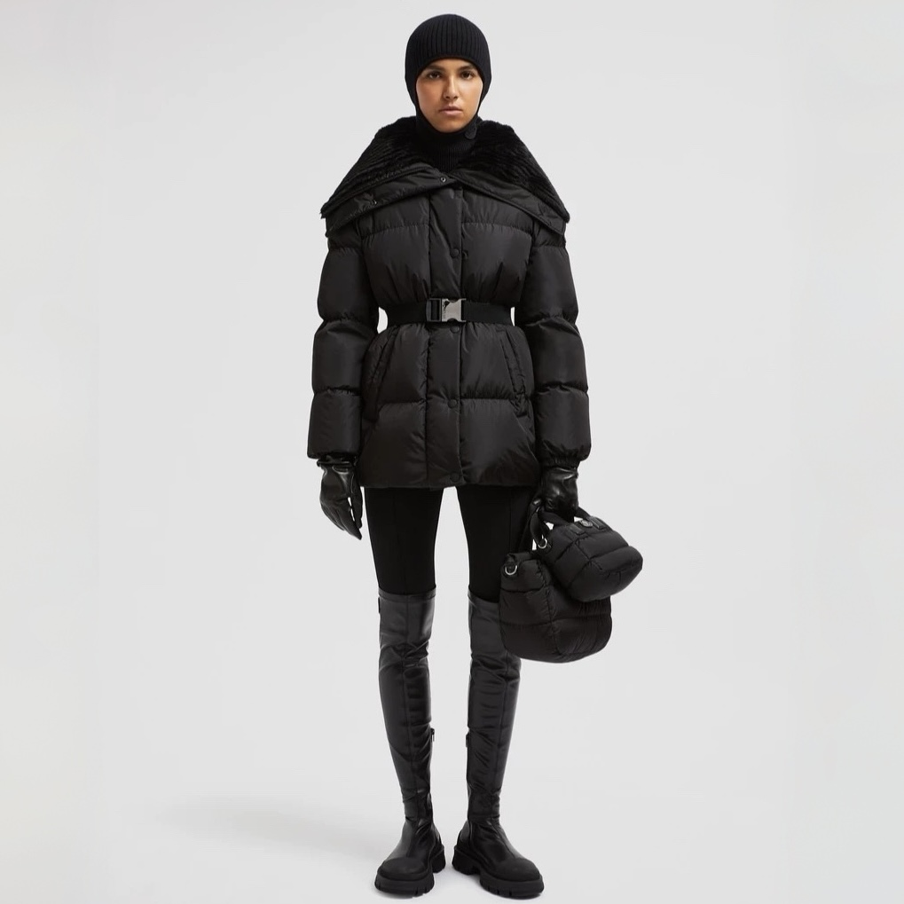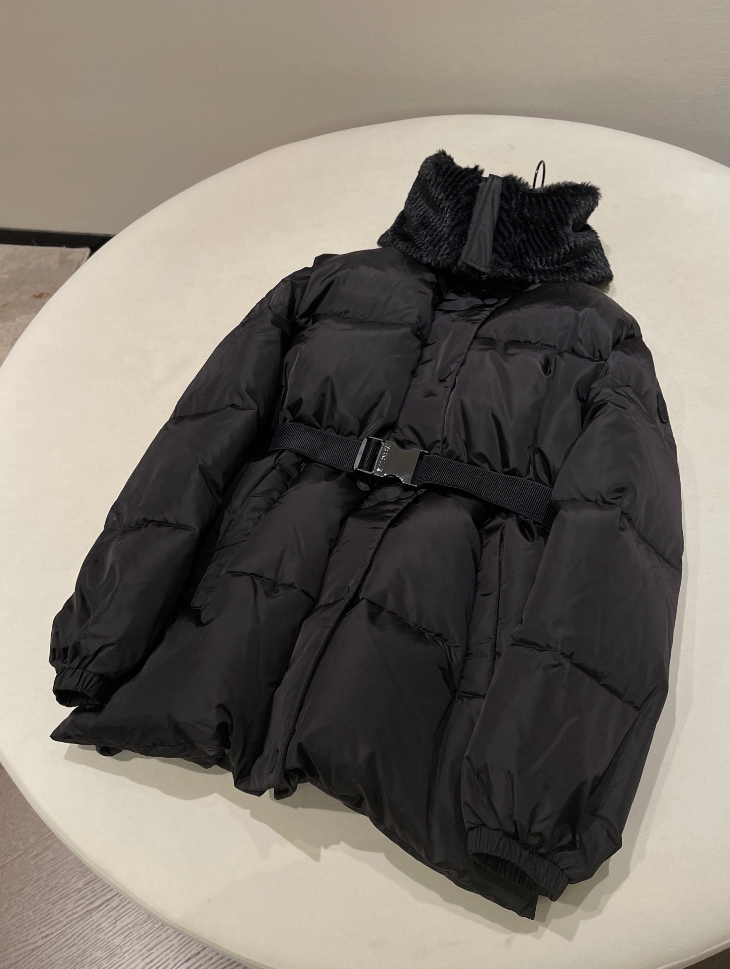 NIGO Moncler Women's Fall/Wimter Black Large Lapel Goose Down Jacket With Belt Nylon Short Style Light Jacket #nigo332539