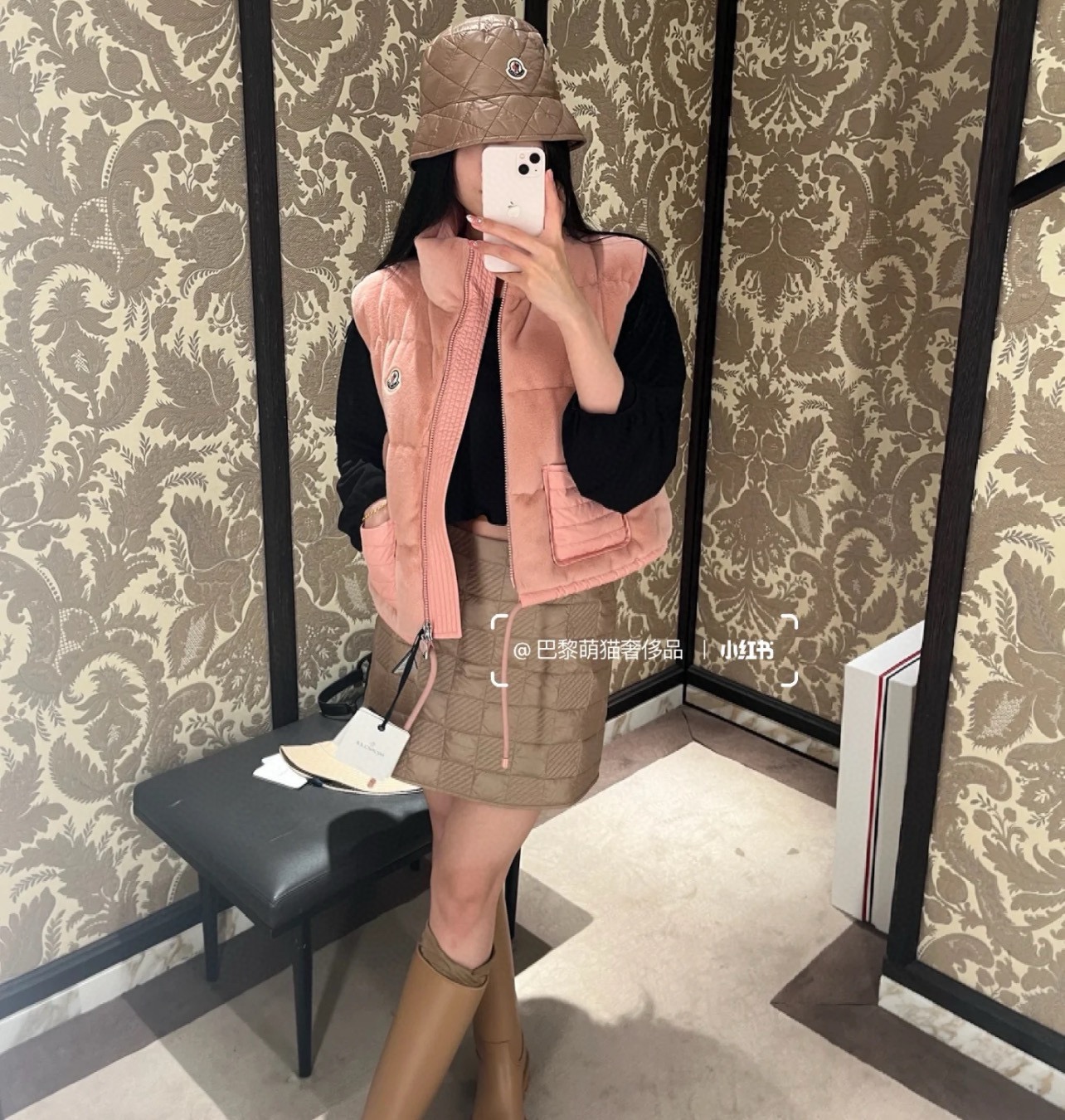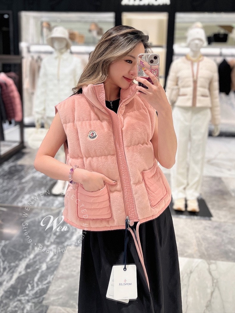 NIGO Moncler Women's Spring and Autumn Pink Logo Zipper Drawstring Down Sleeveless Vest Jacket #nigo72875