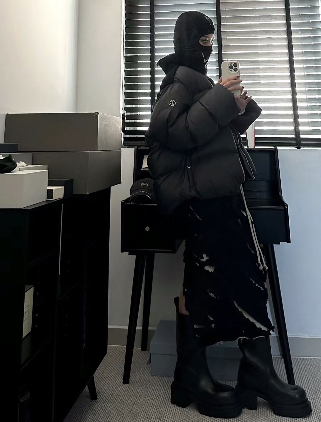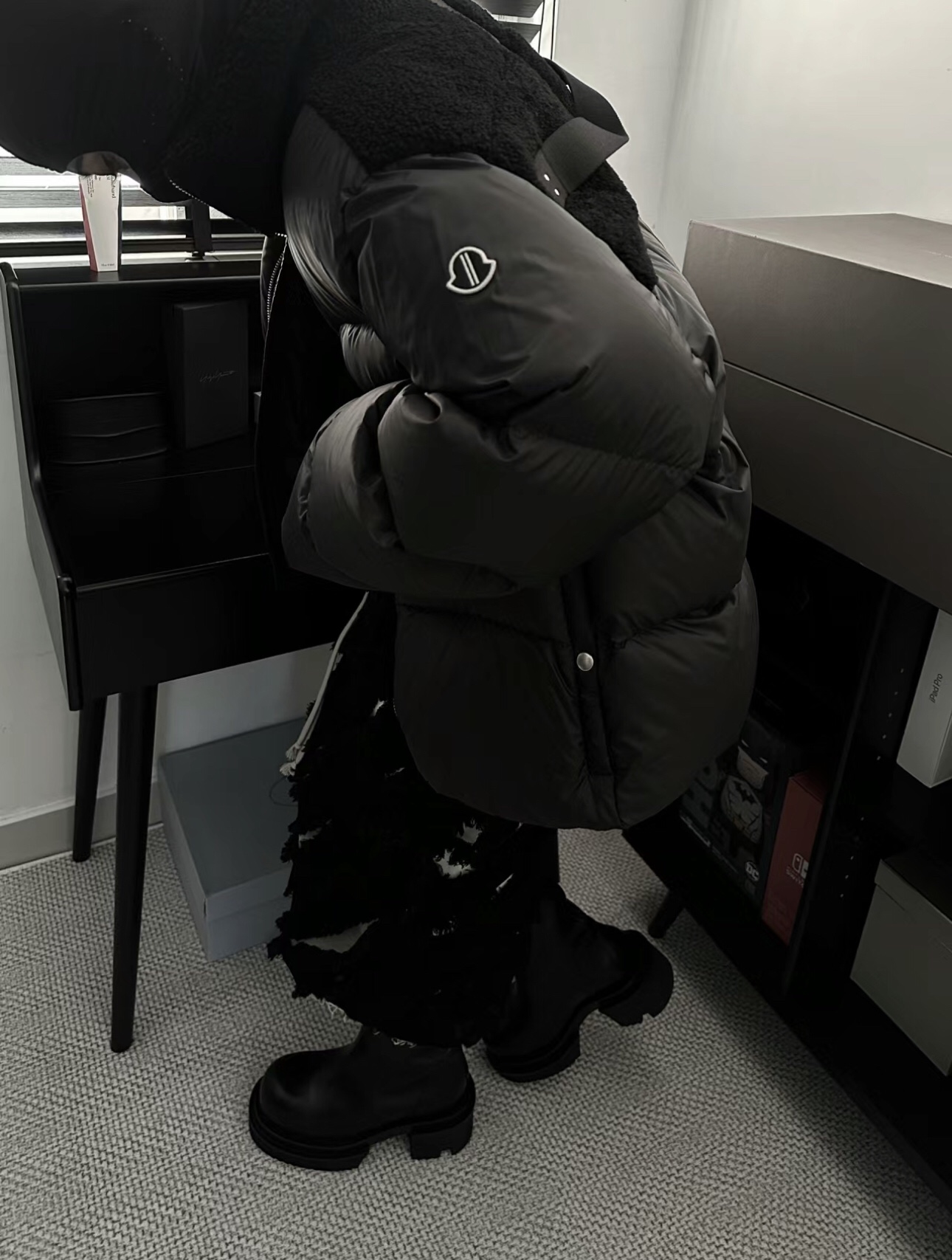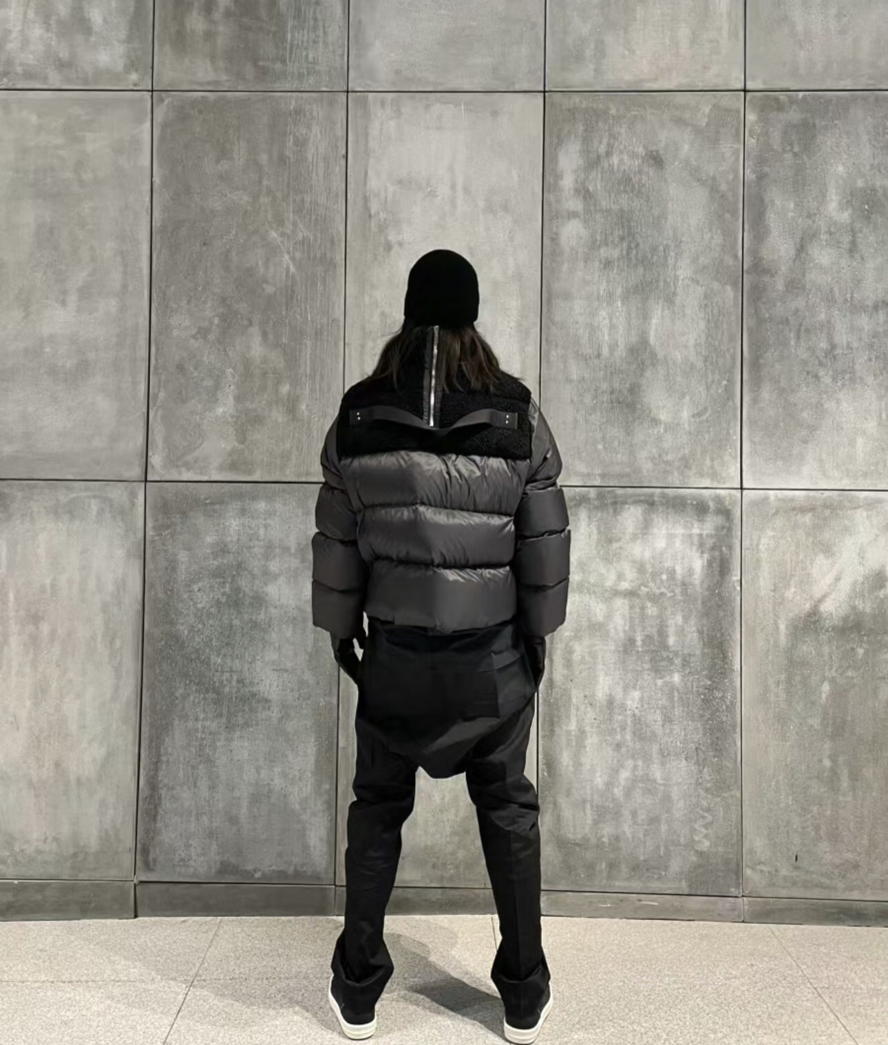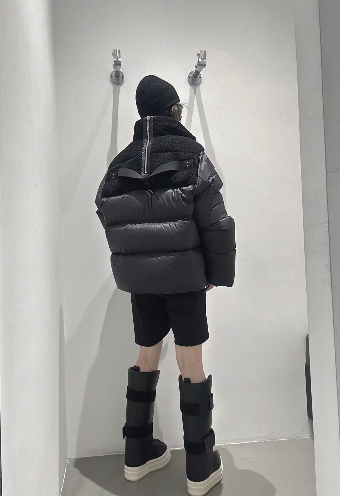 NIGO Moncler x Rick Owens Men's And Women's Winter Black Glossy Fur Collar Zipper Long Sleeve Puffer Down Jacket #nigo72459