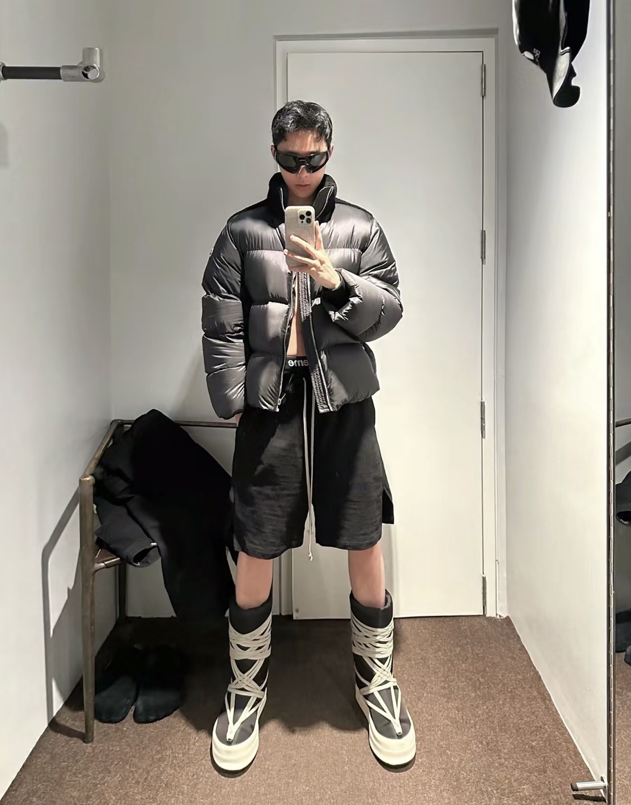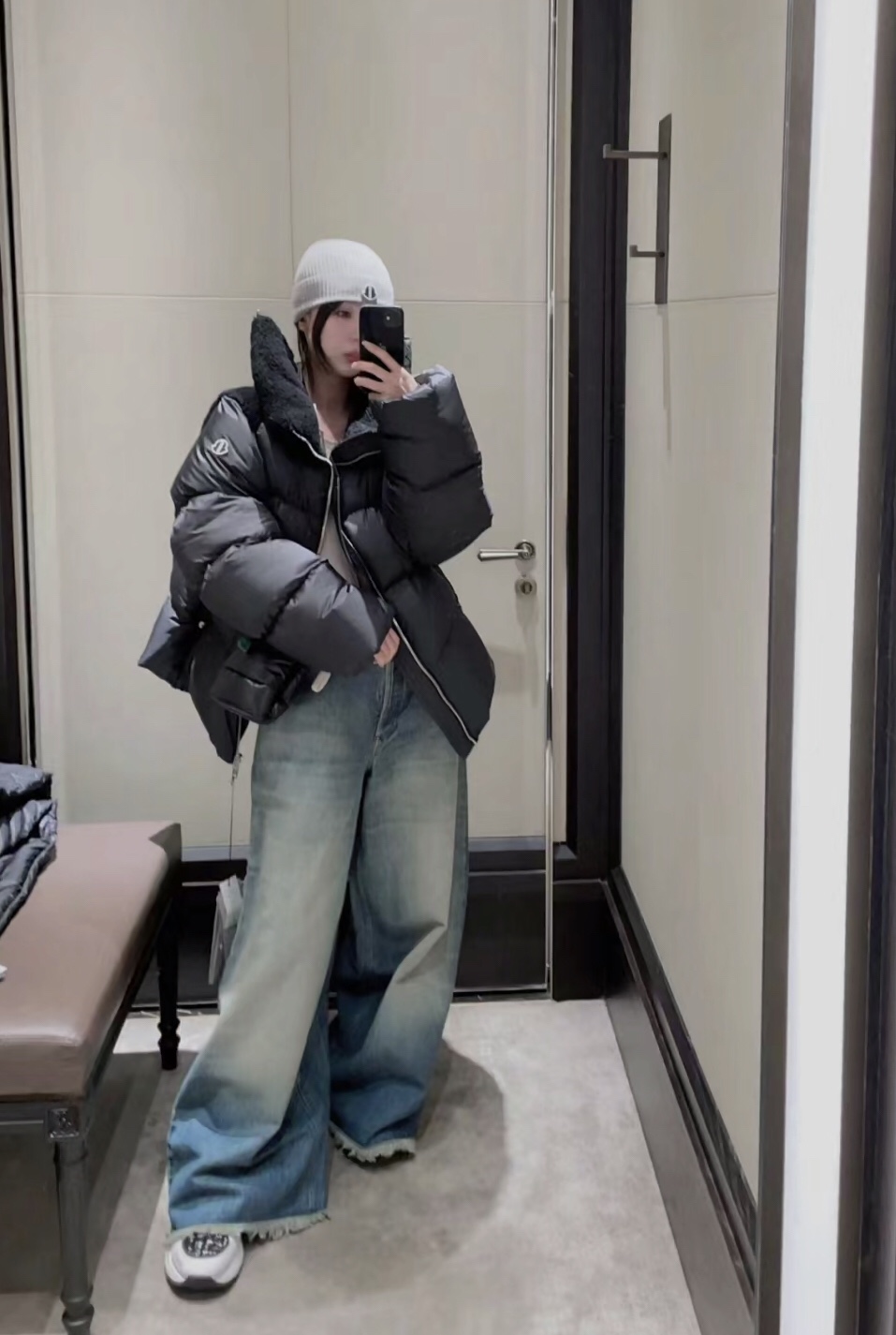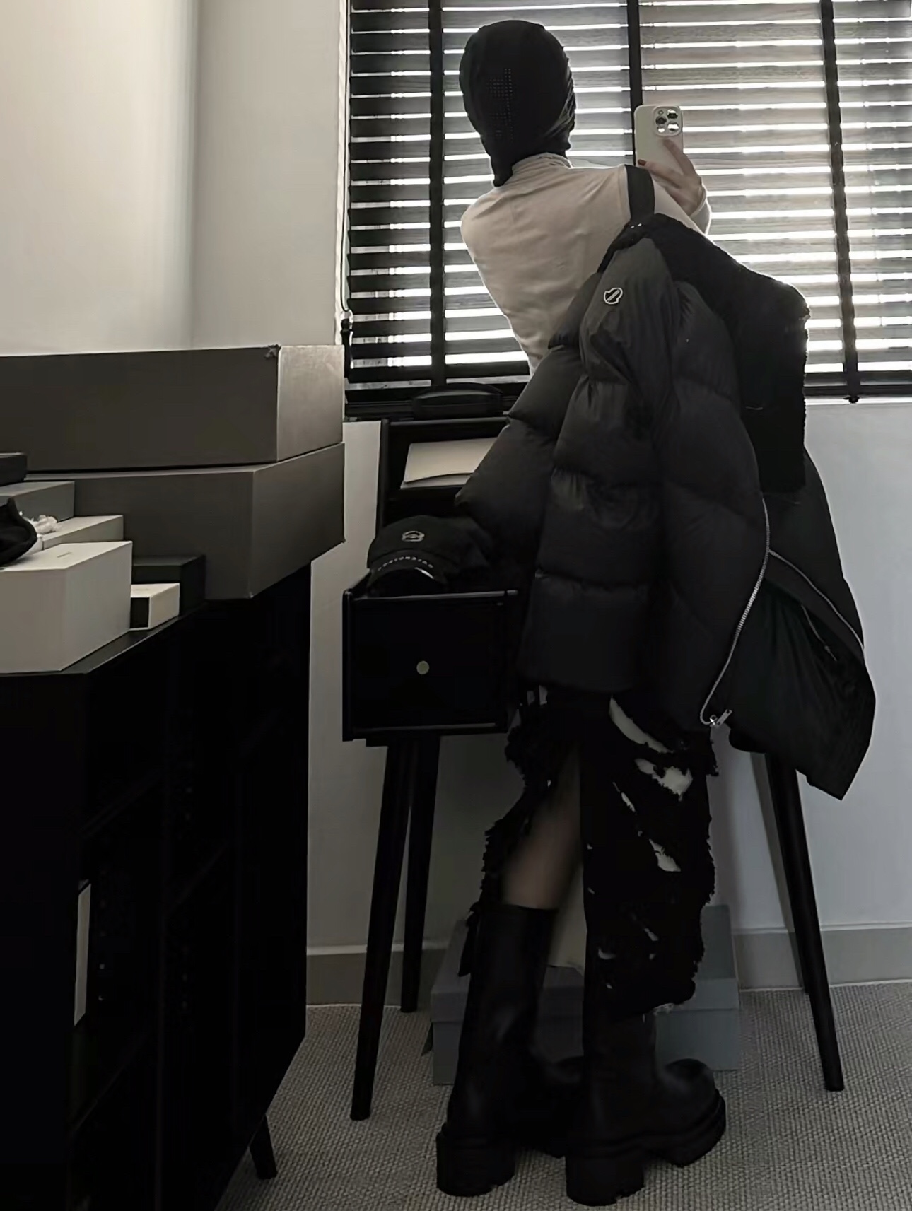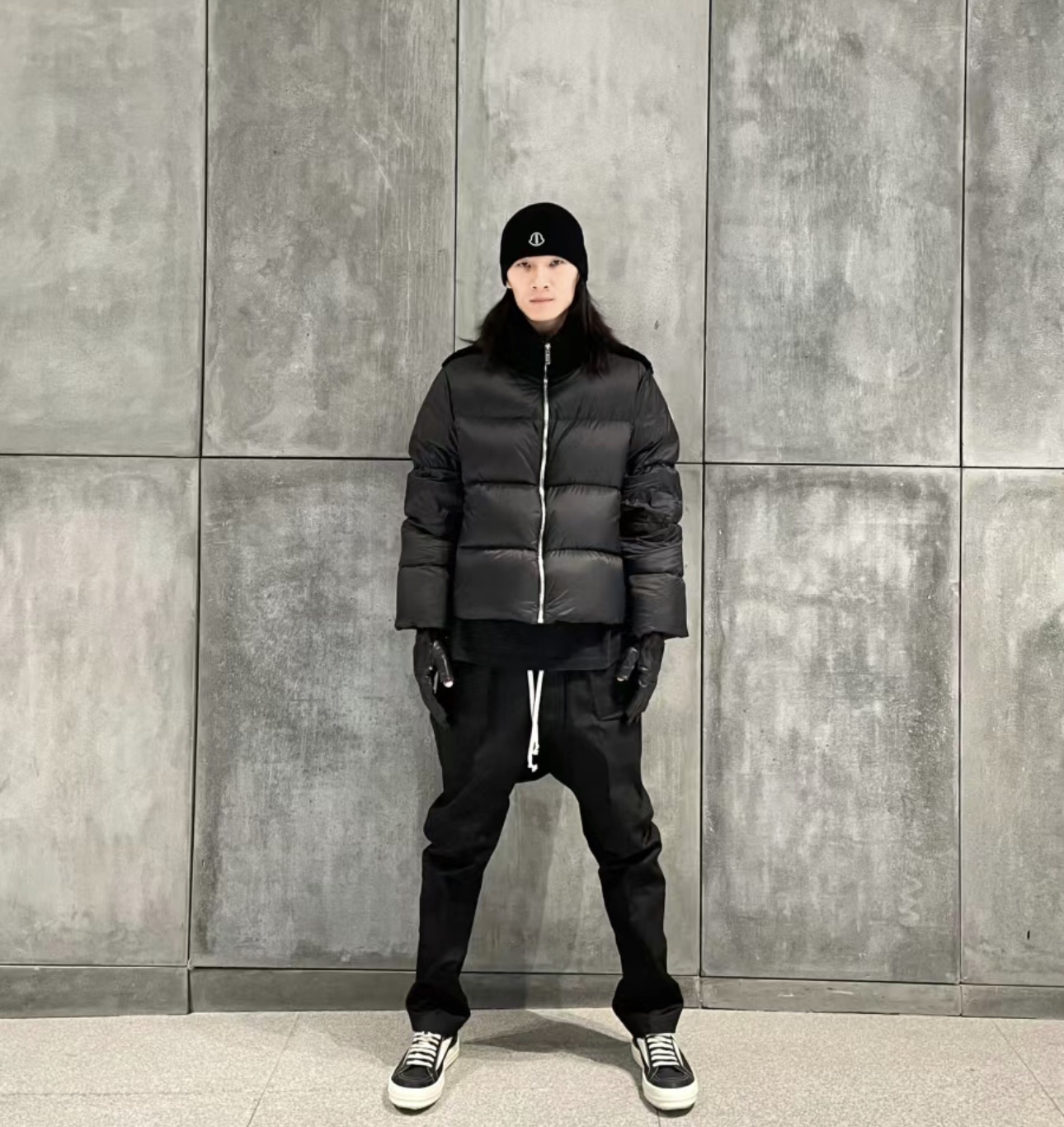 NIGO Moncler x Rick Owens Men's And Women's Winter Black Glossy Fur Collar Zipper Long Sleeve Puffer Down Jacket #nigo72459