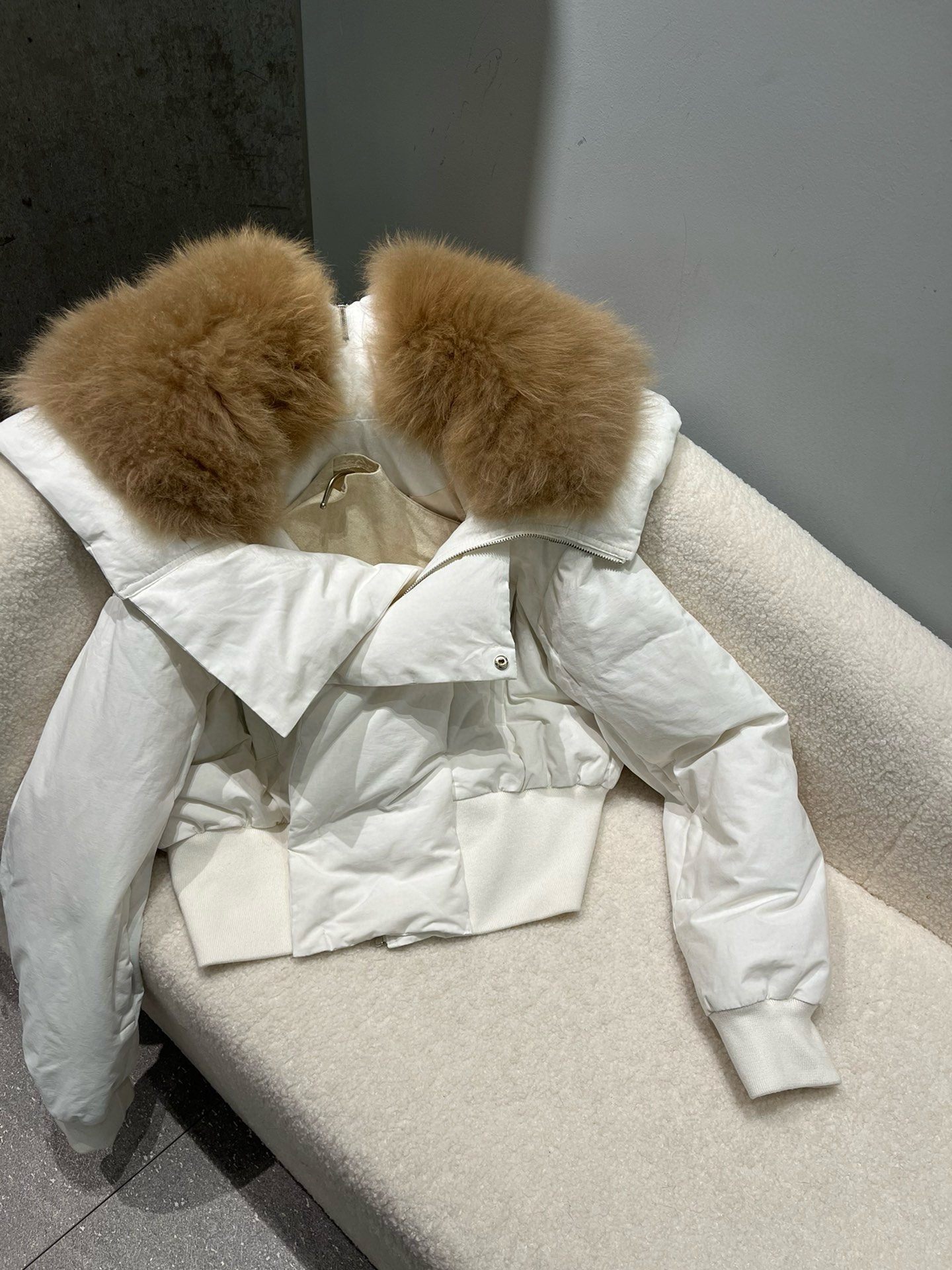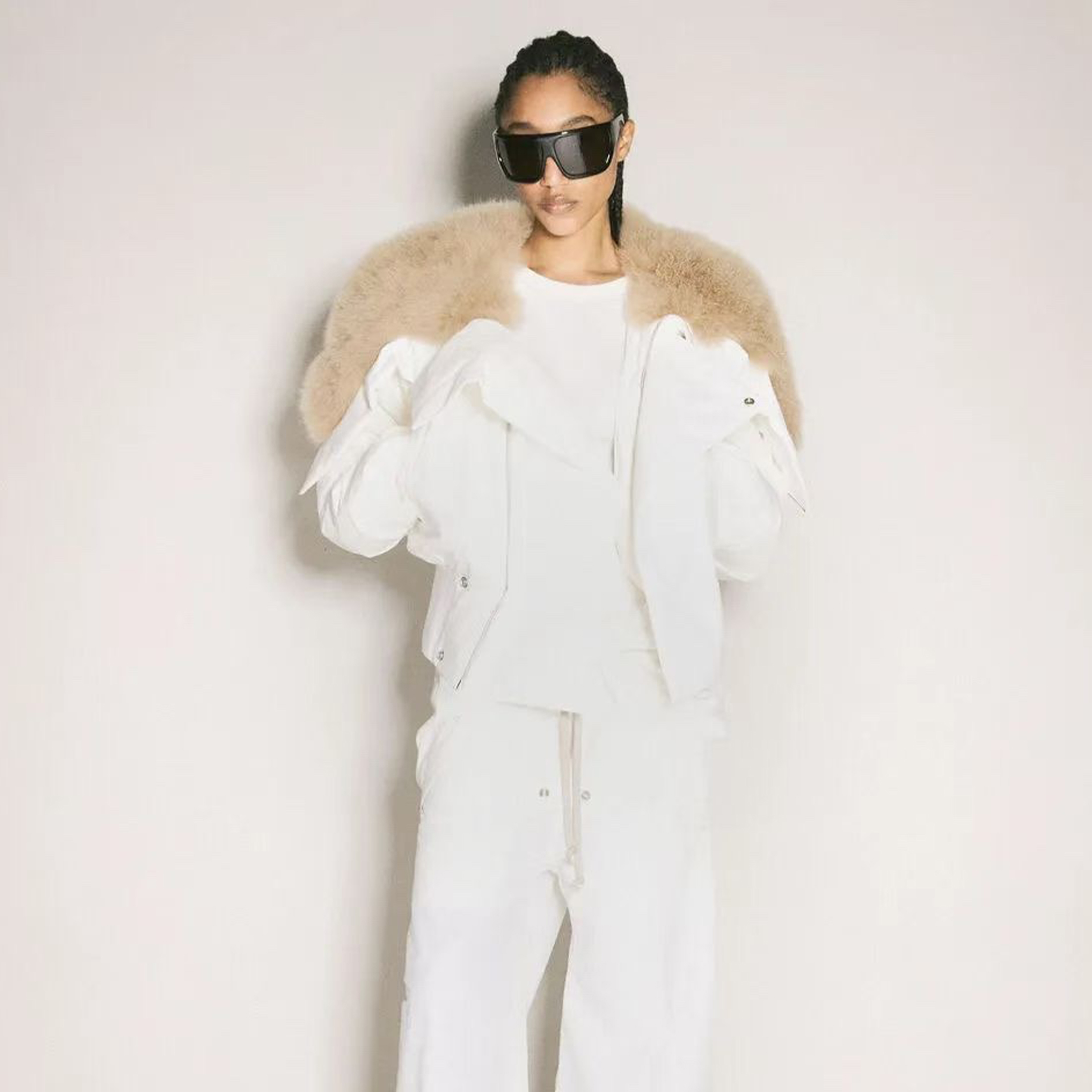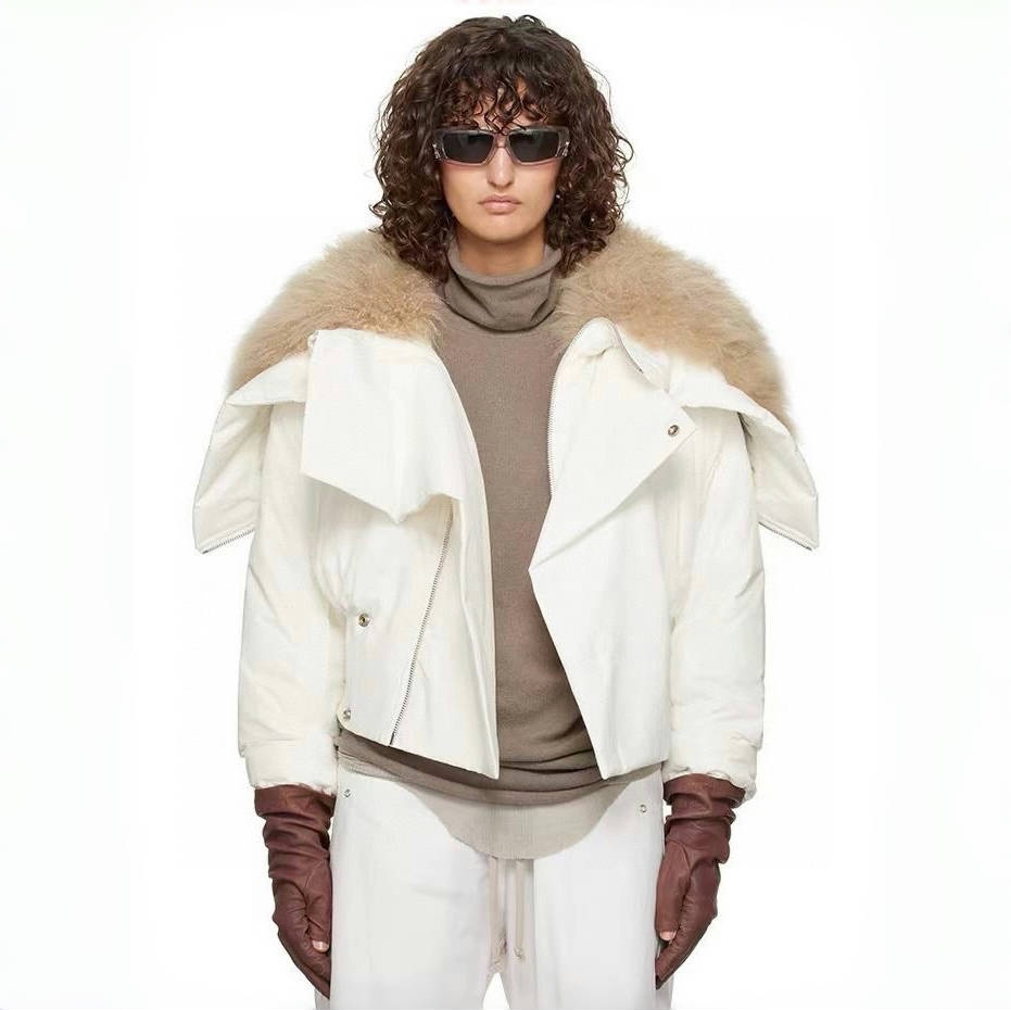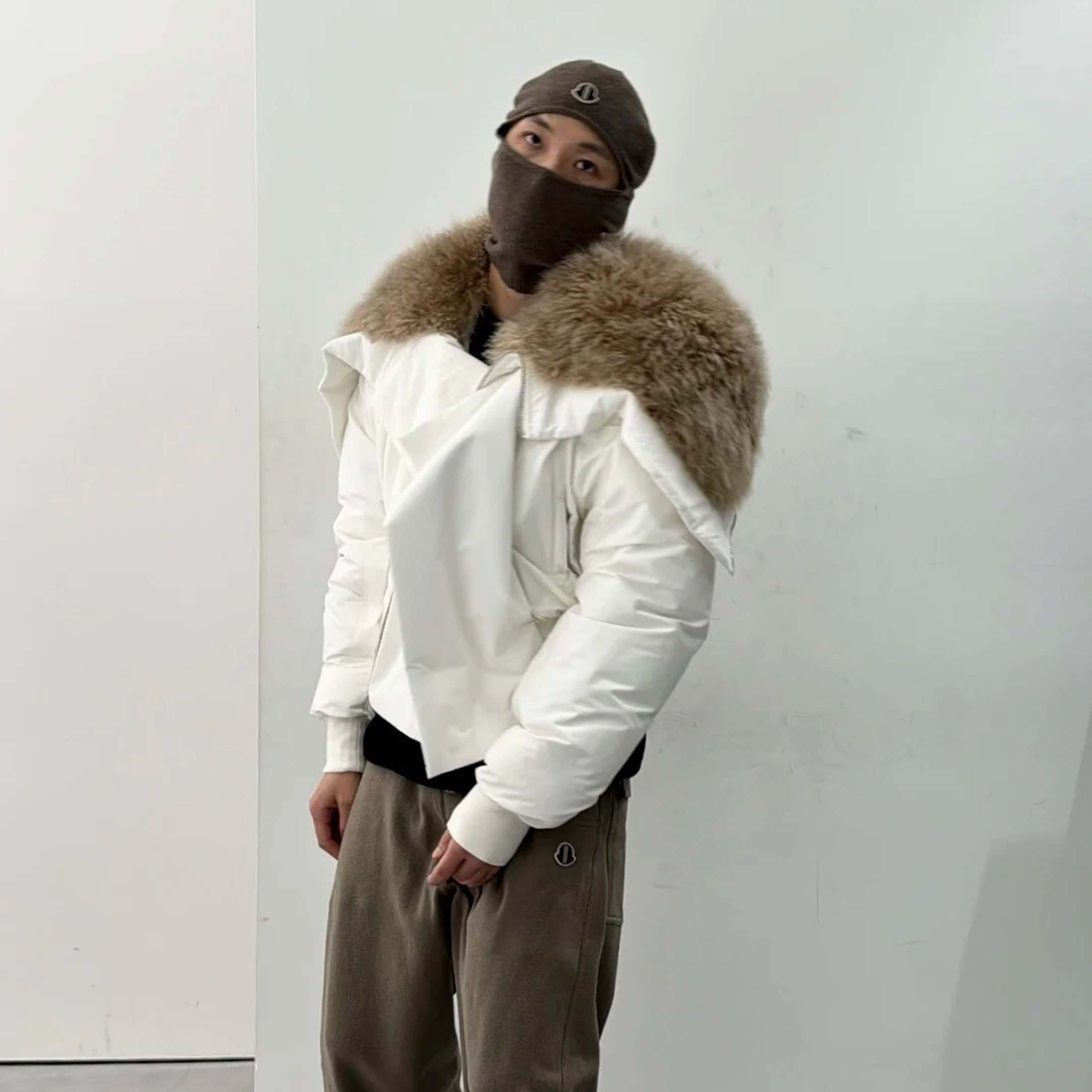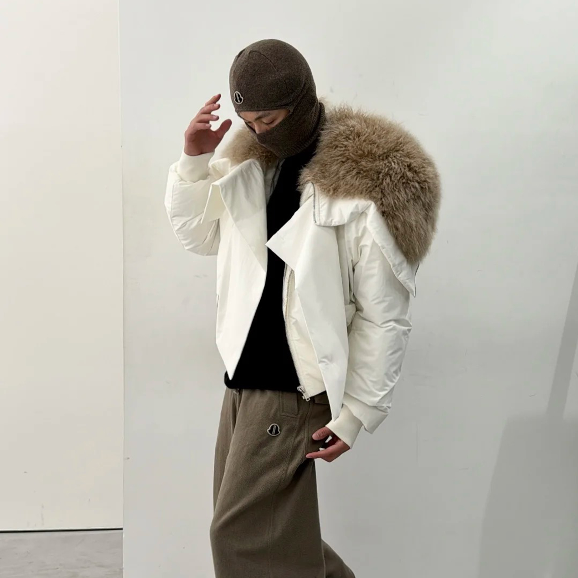 NIGO Moncler x Rick Owens Men's Women's Autumn And Winter Large Fur Collar Removable Trend High Street White Down Jacket Zip Hooded Jacket Ngvp #nigo9794