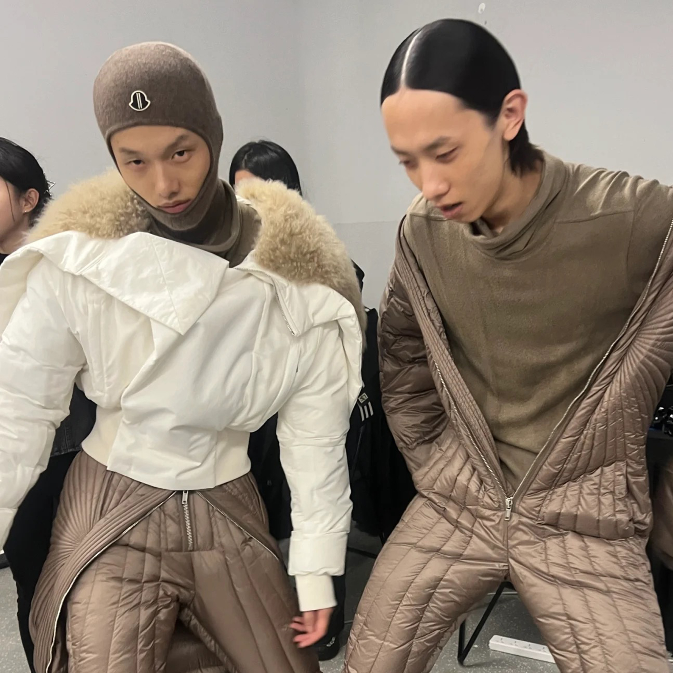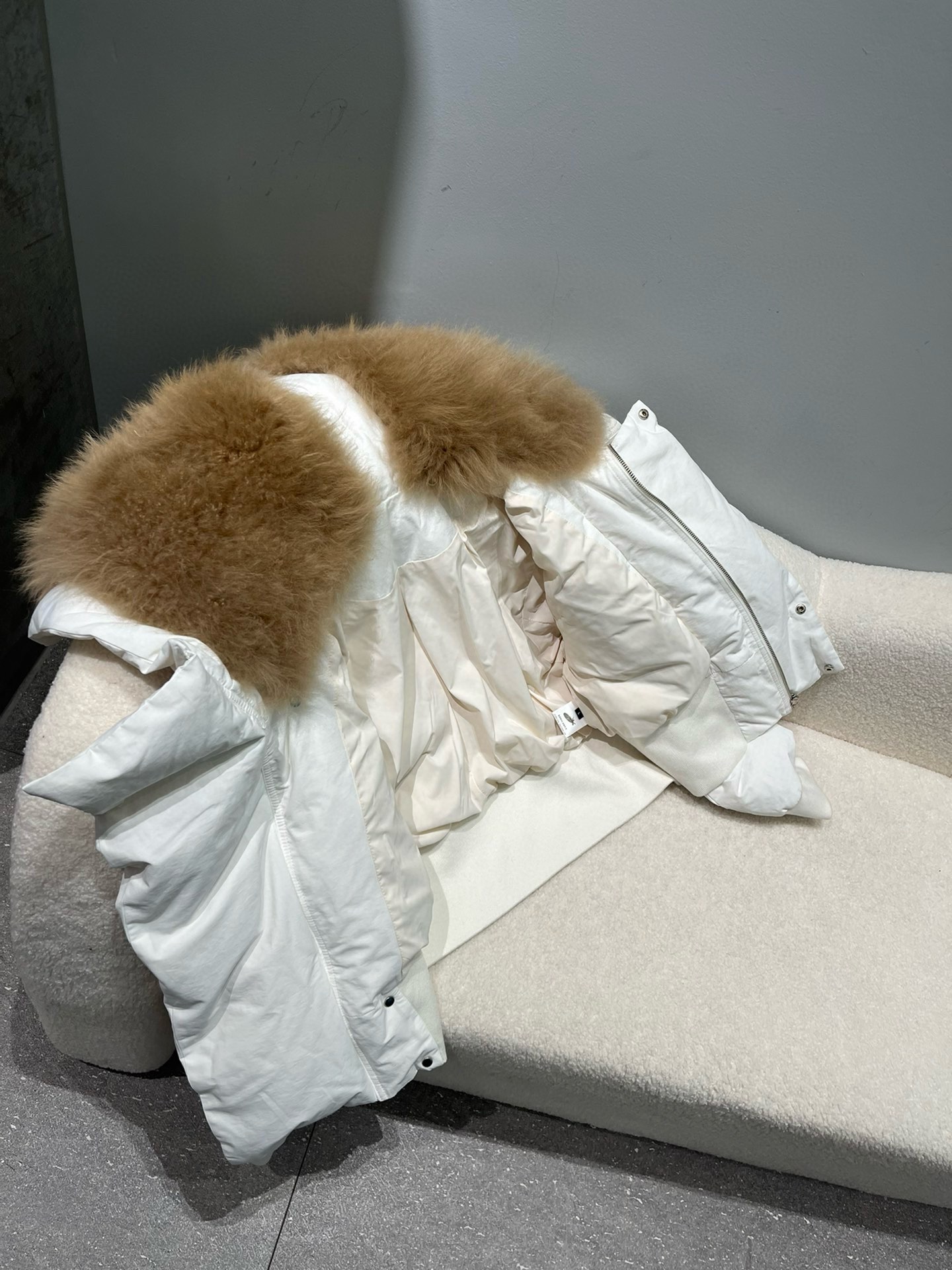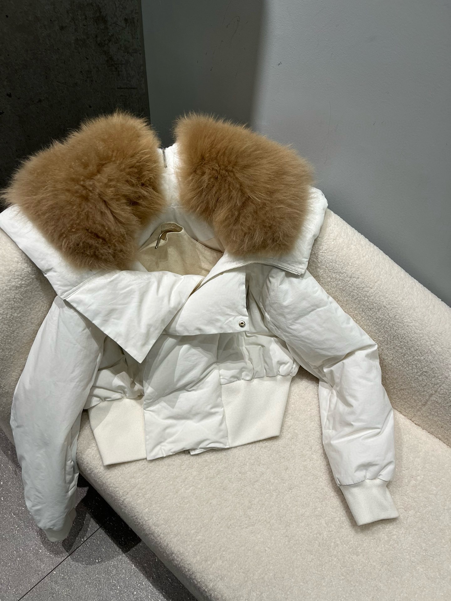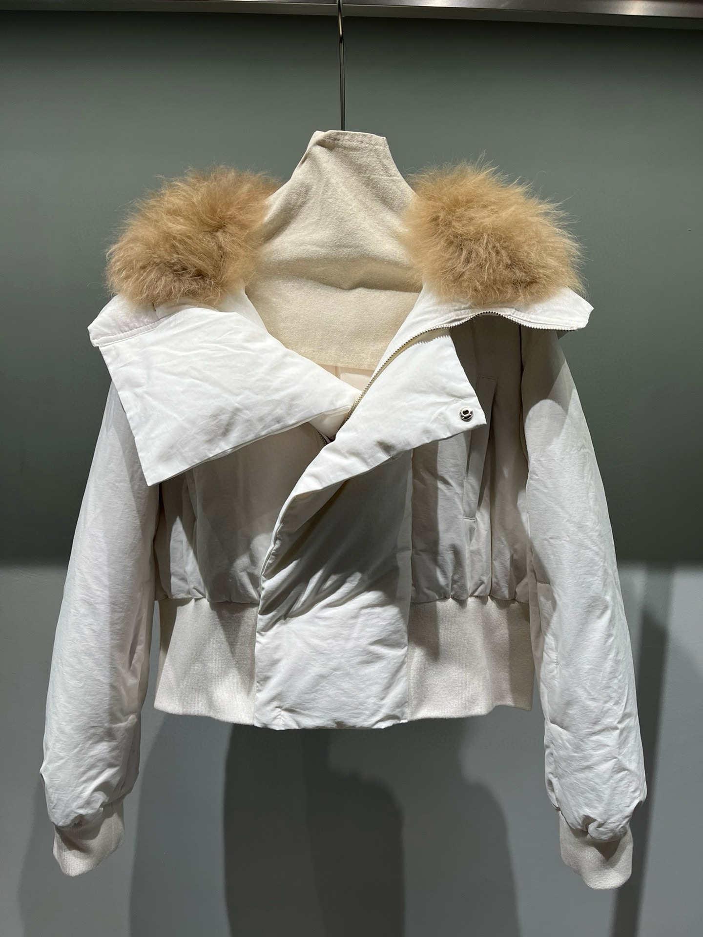 NIGO Moncler x Rick Owens Men's Women's Autumn And Winter Large Fur Collar Removable Trend High Street White Down Jacket Zip Hooded Jacket Ngvp #nigo9794