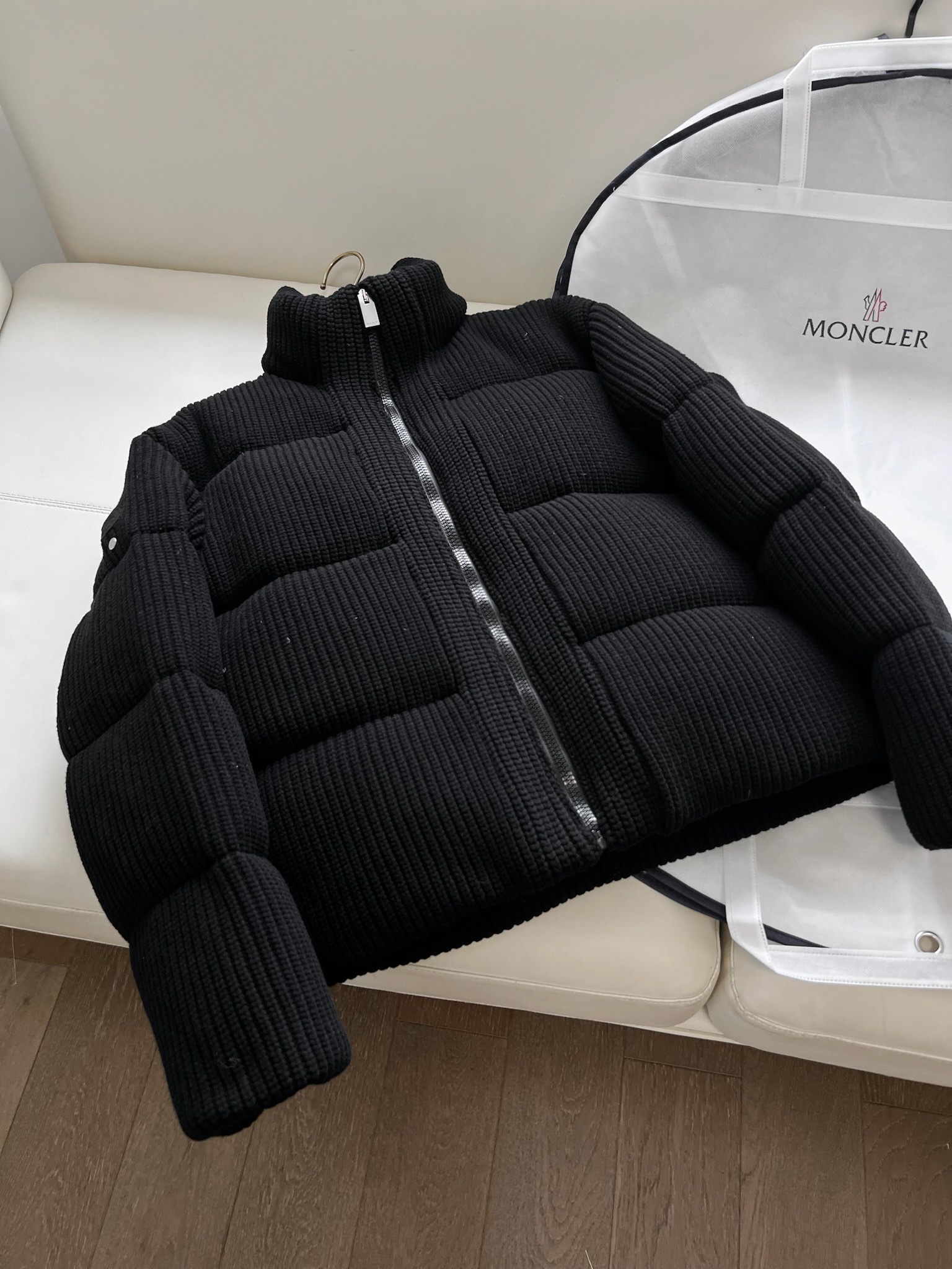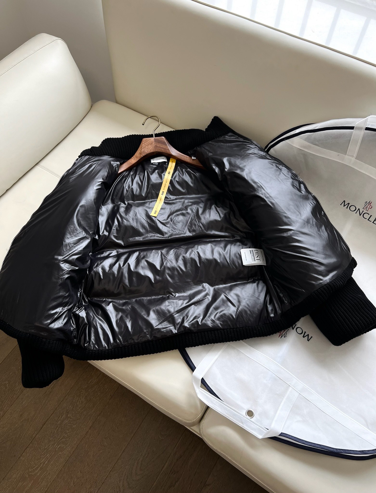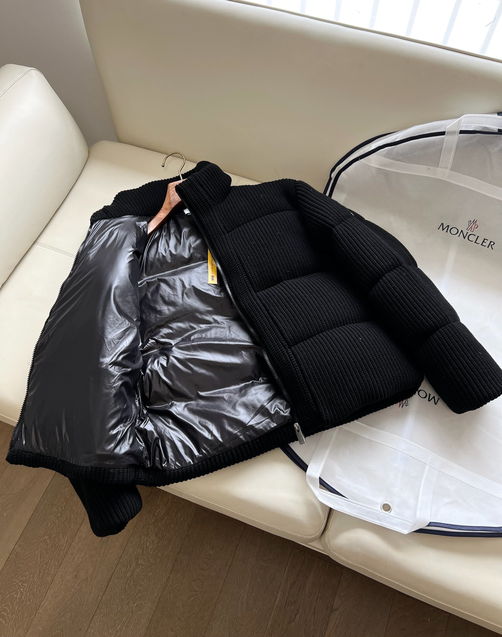 NIGO Moncler Women's Winter Solid Color Ribbed Knit Standing Collar Short Zipper Long Sleeve Puffer Down Jacket #nigo73423