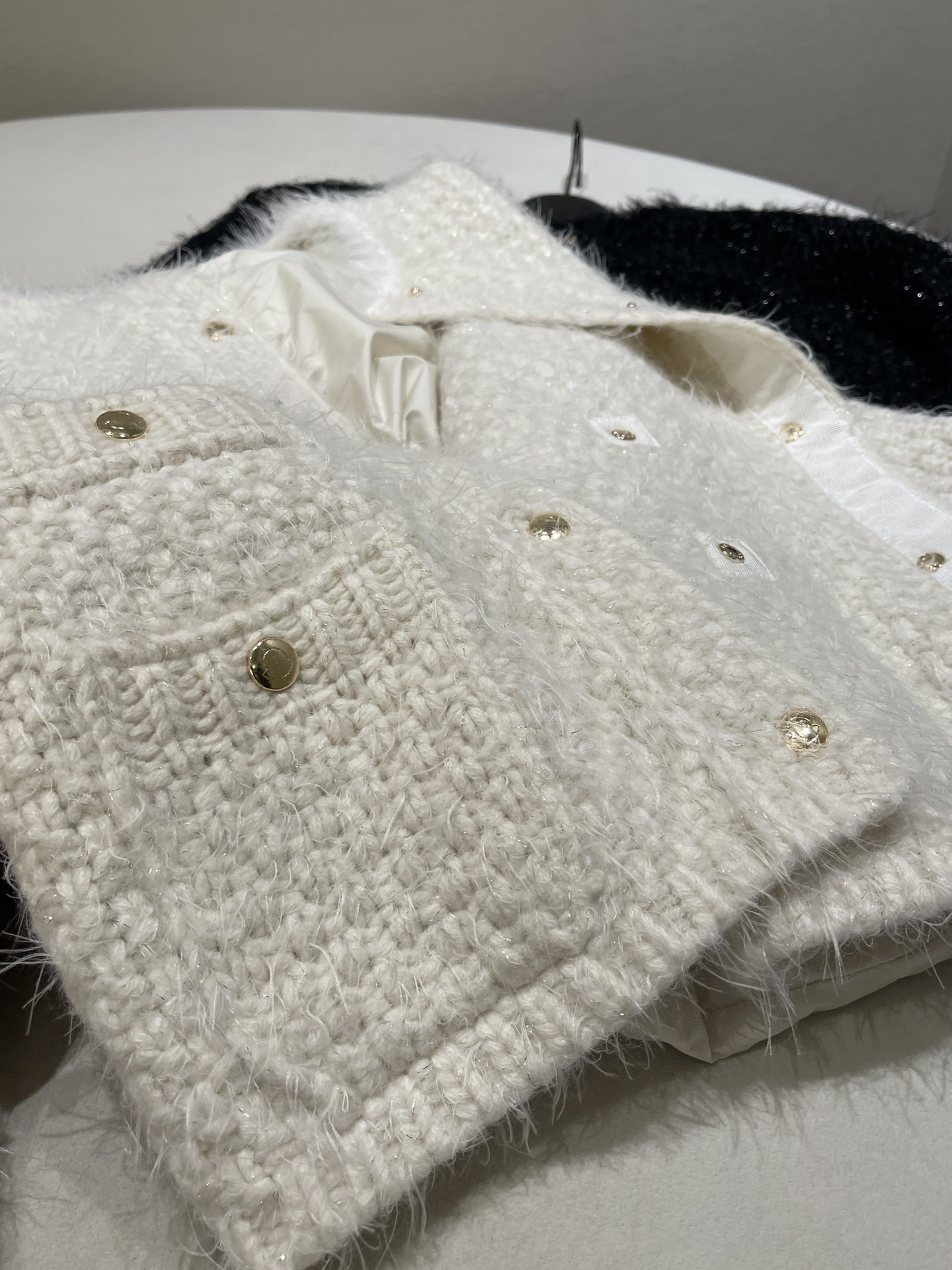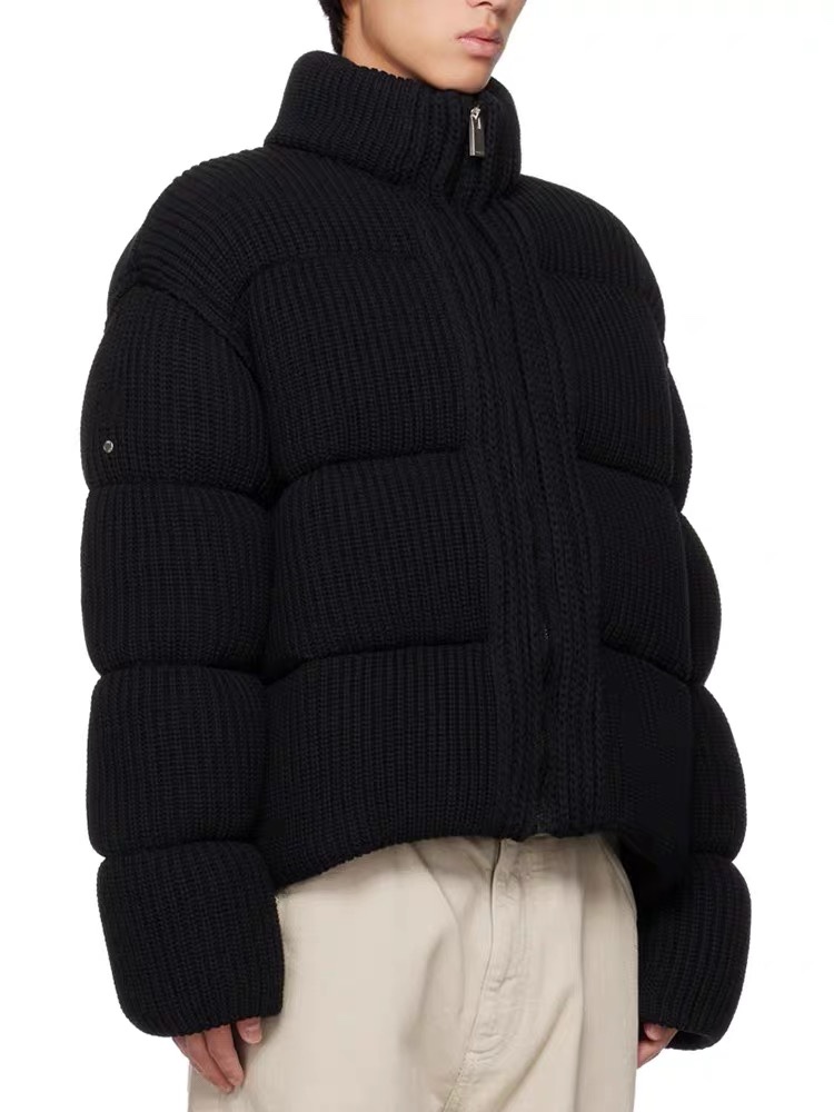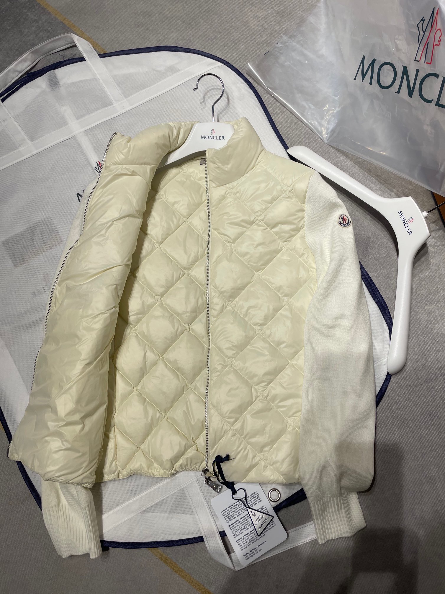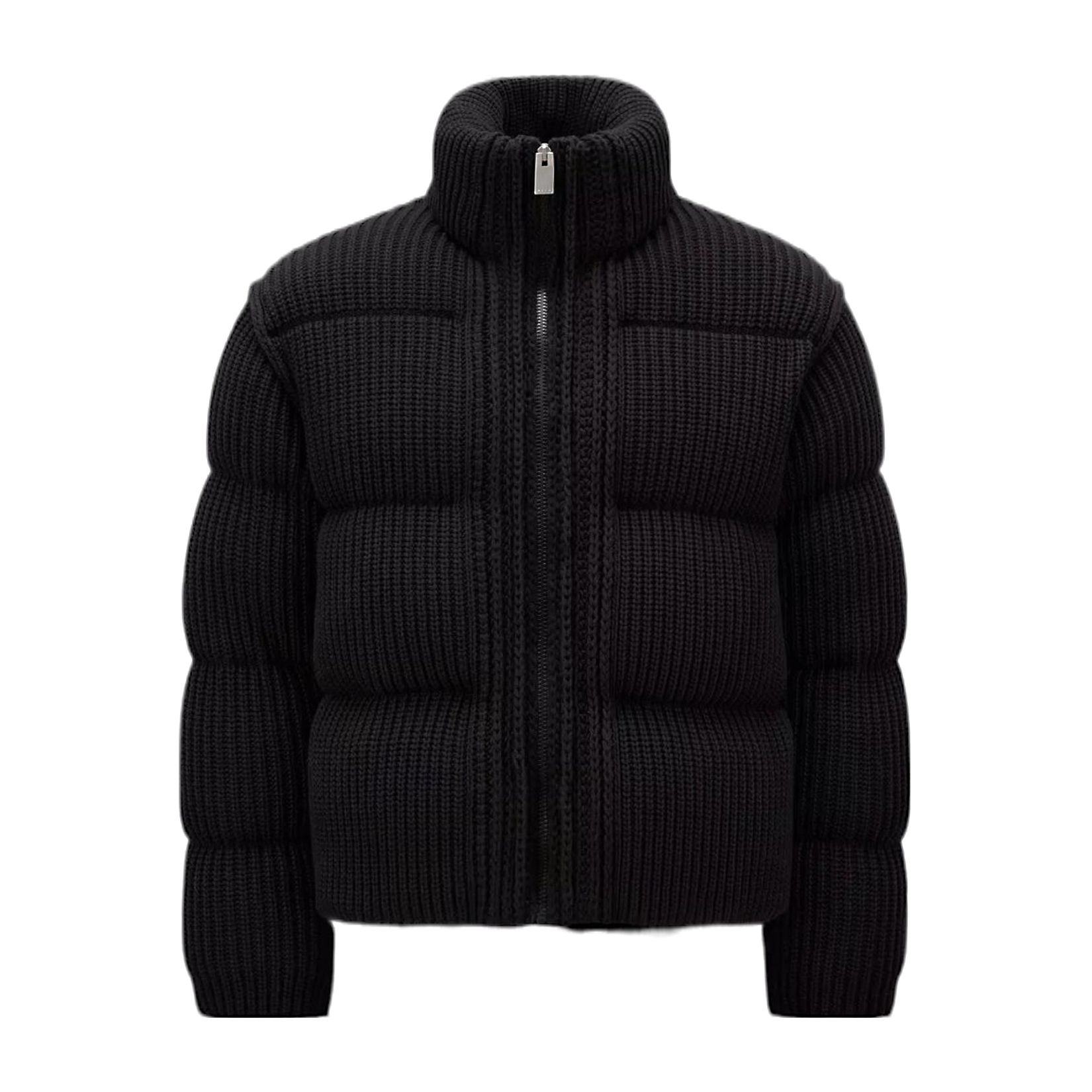 NIGO Moncler Women's Winter Solid Color Ribbed Knit Standing Collar Short Zipper Long Sleeve Puffer Down Jacket #nigo73423