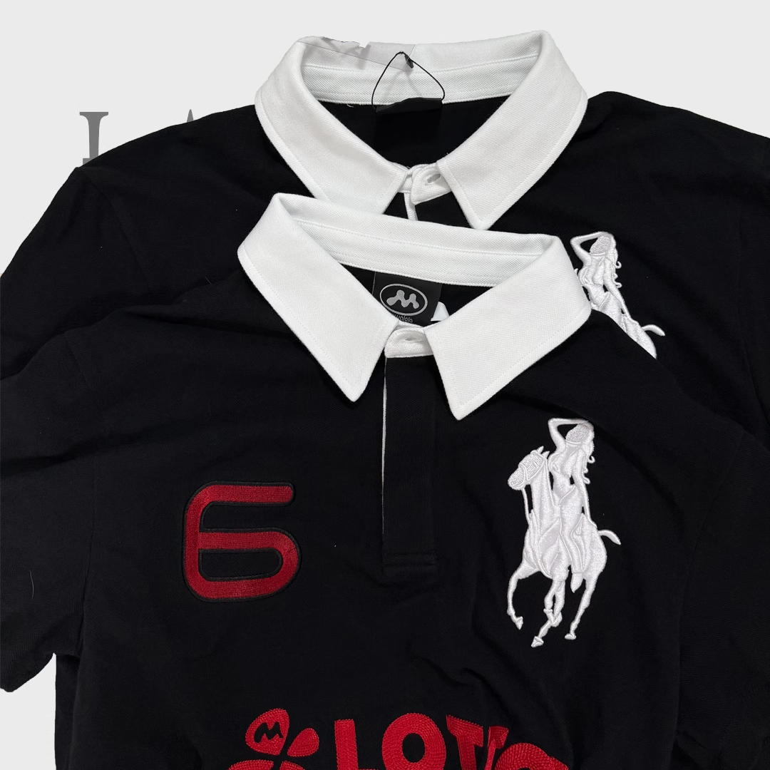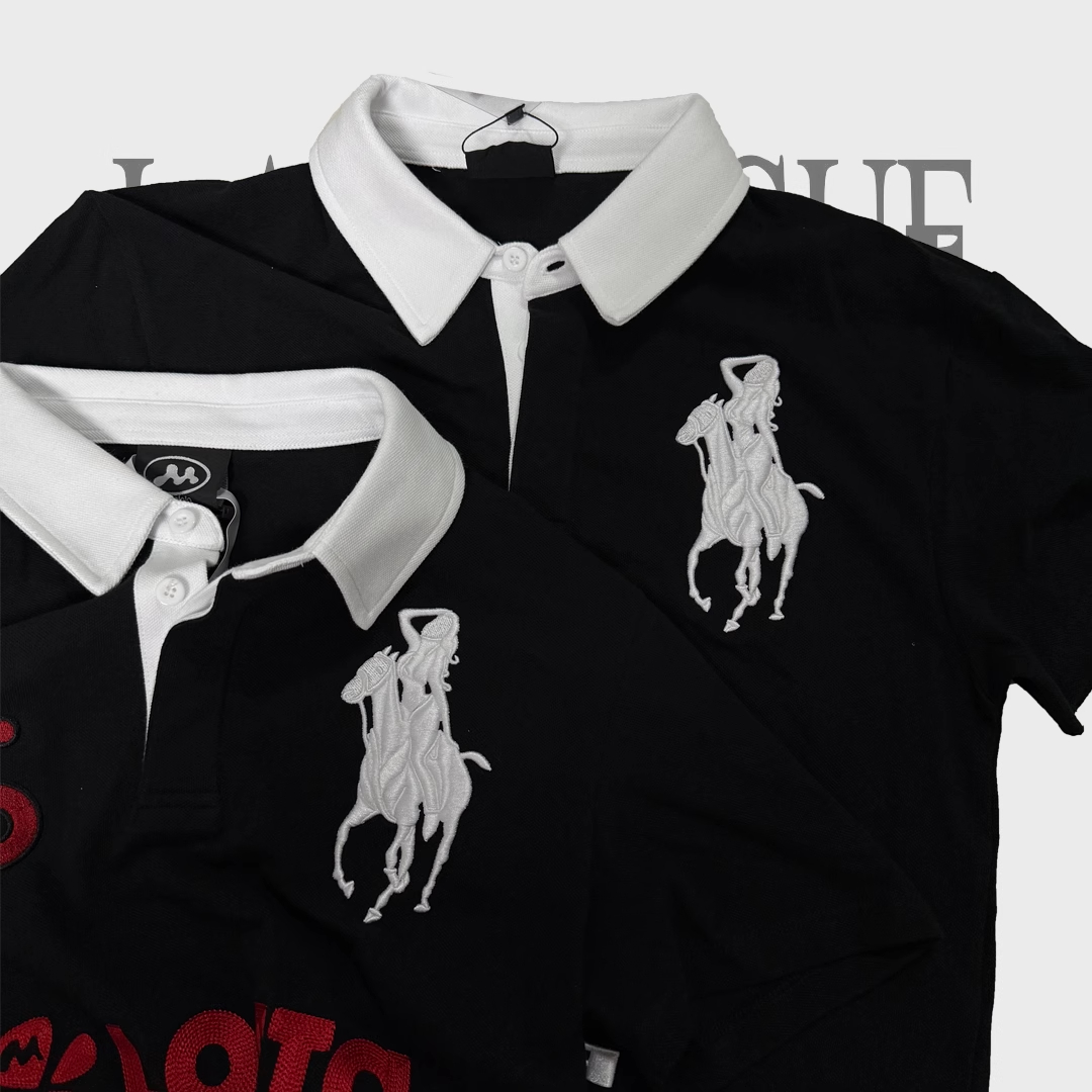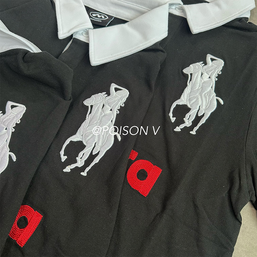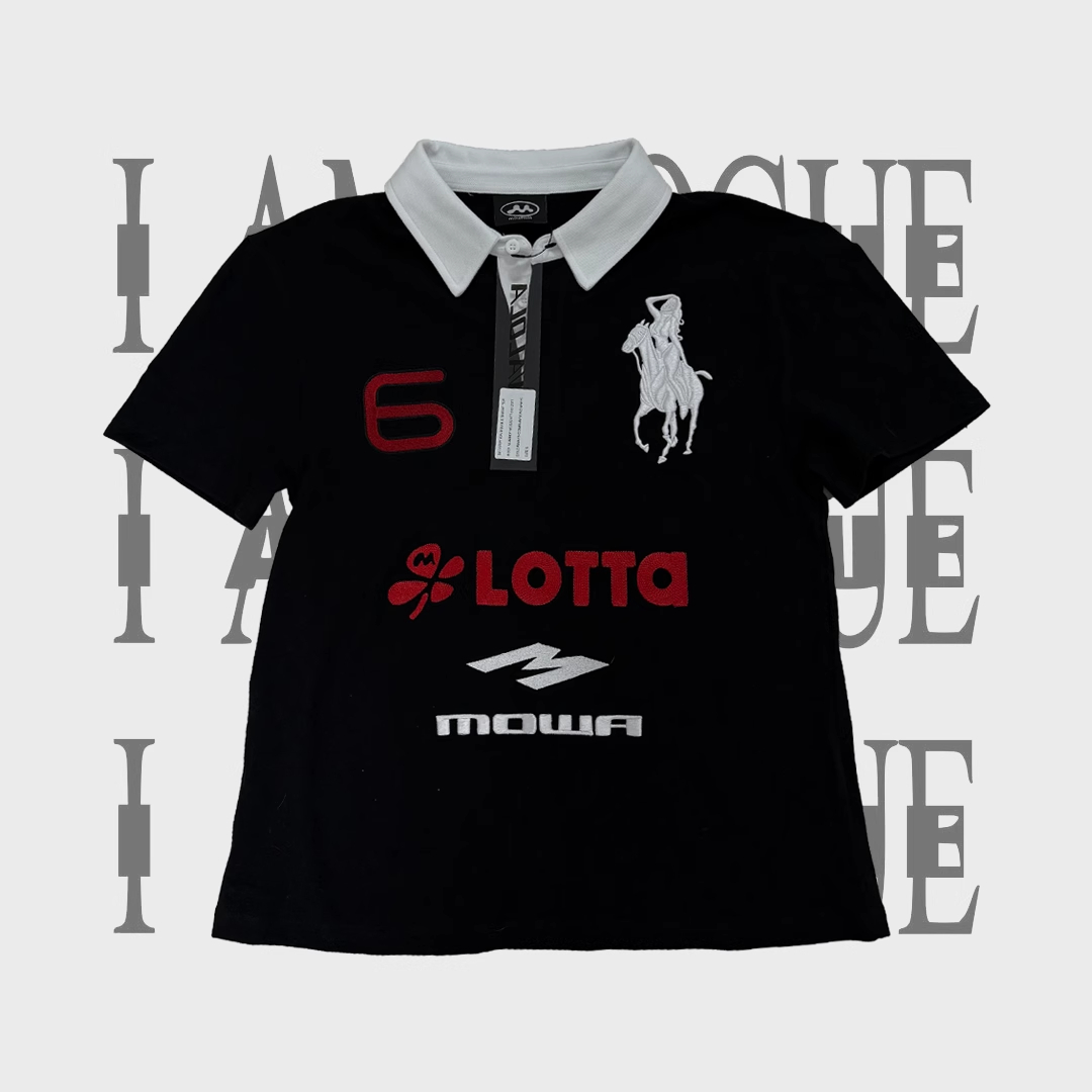 Home / Mowalola / NIGO Mowalola Men's Spring Summer Opium Yvl Style Blue Black Angel War Horse Embroidery Slim Fit Polo Shirt Short Sleeve T-shirt Ngvp #nigo81384