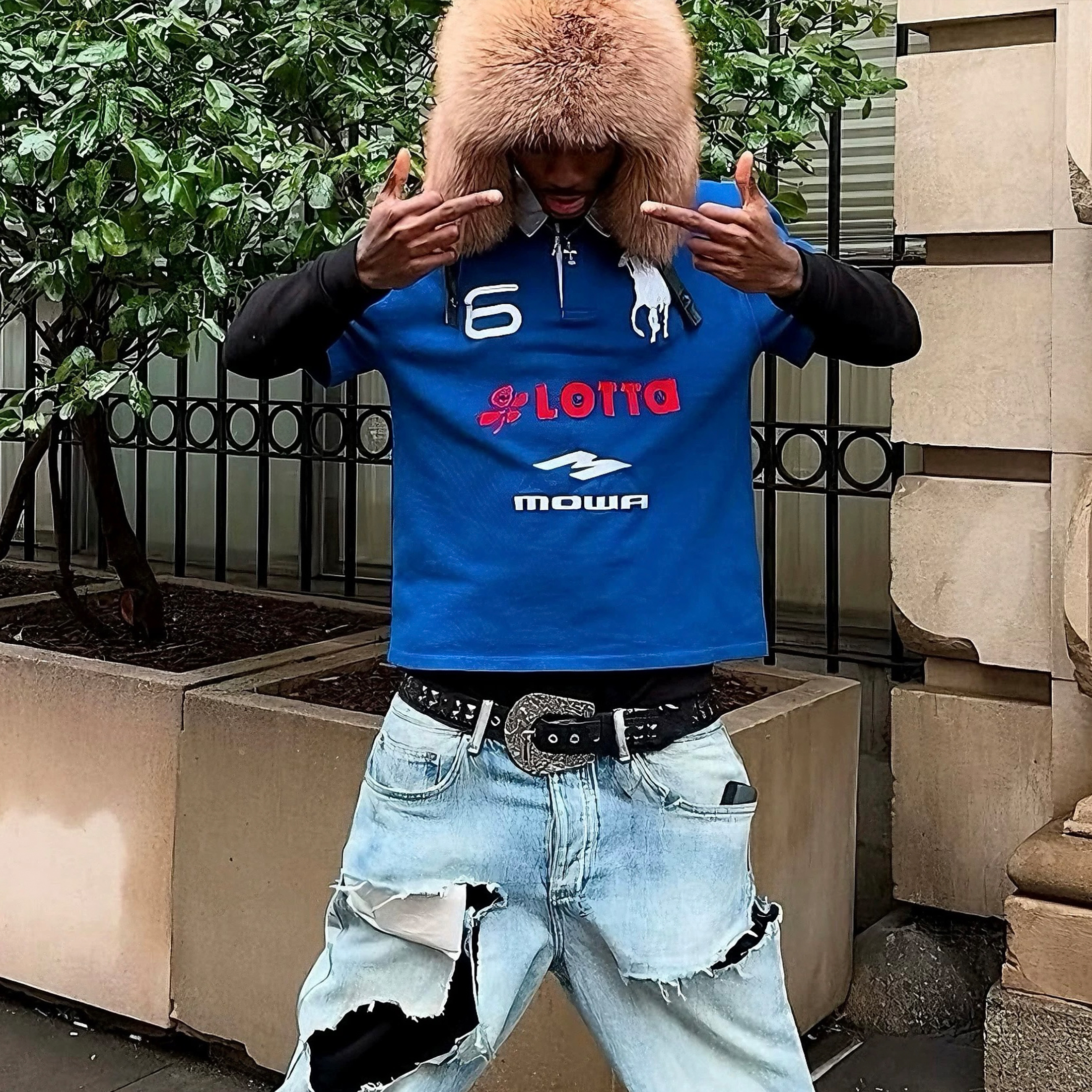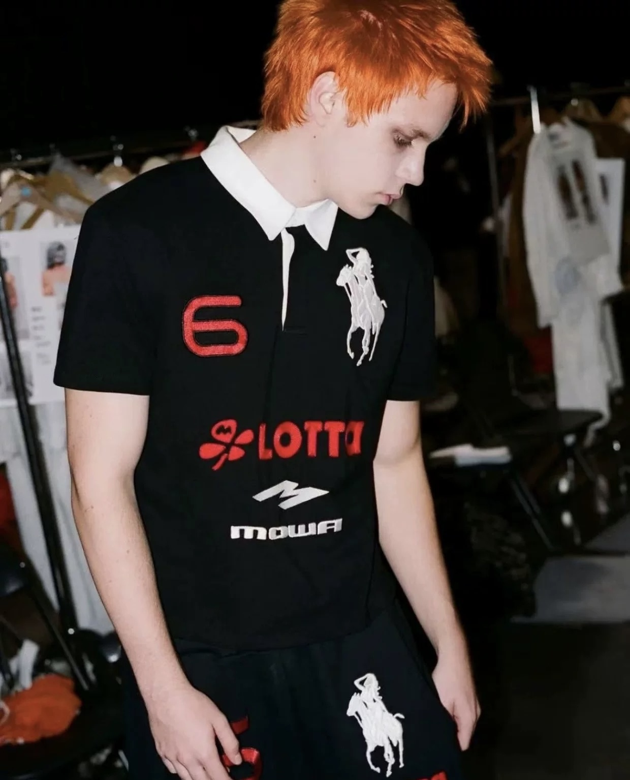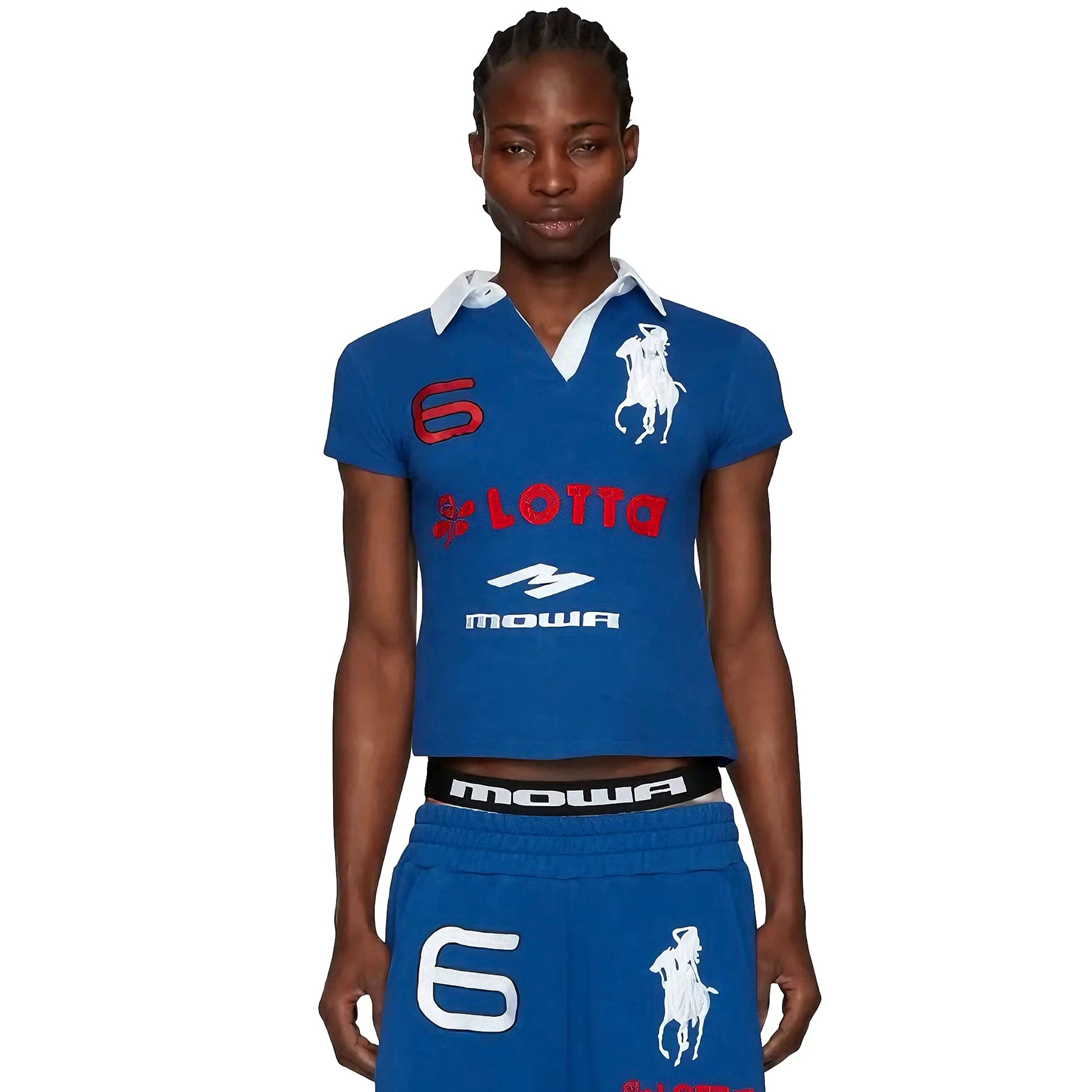 Home / Mowalola / NIGO Mowalola Men's Spring Summer Opium Yvl Style Blue Black Angel War Horse Embroidery Slim Fit Polo Shirt Short Sleeve T-shirt Ngvp #nigo81384