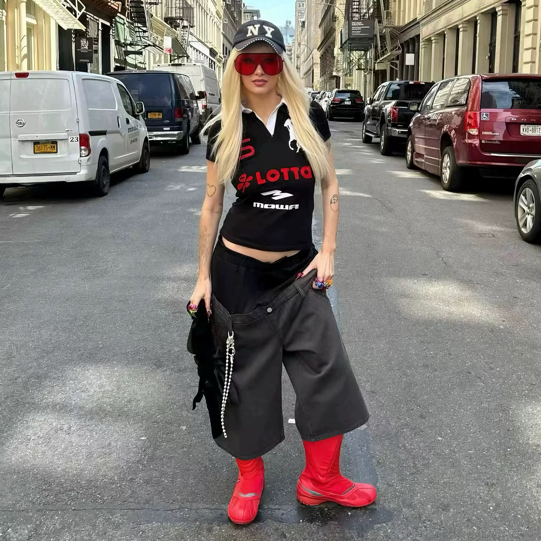 NIGO Mowalola Men's Spring Summer Opium Yvl Style Blue Black Angel War Horse Embroidery Slim Fit Polo Shirt Short Sleeve T-shirt Ngvp #nigo81384