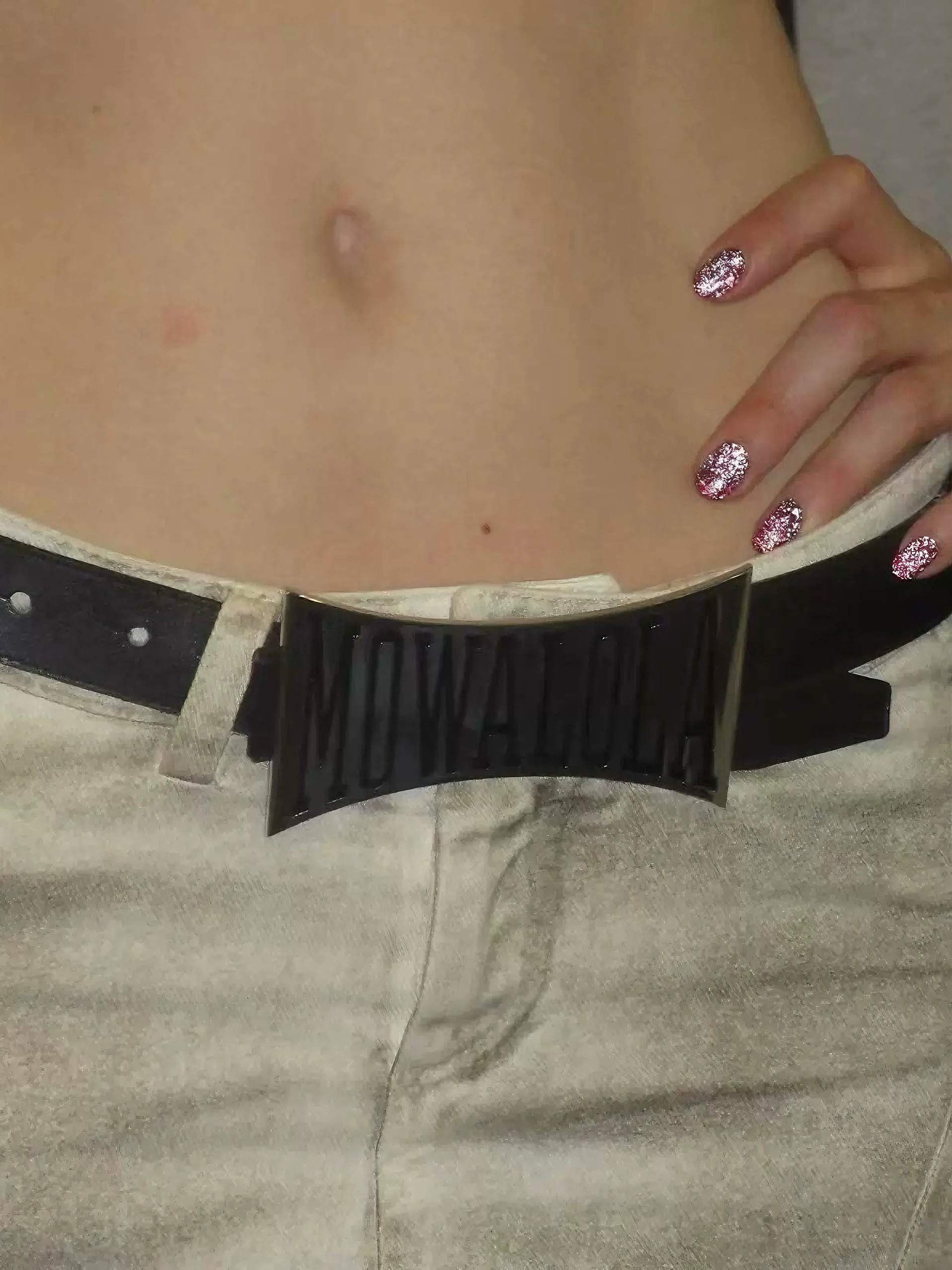 NIGO Mowalola Metal Logo Nameplate Italian Head Layer Cowhide Hot Stamping Belt Yvl Yeji The Same High Street Trend Casual Black Belt Accessories #nigo81458