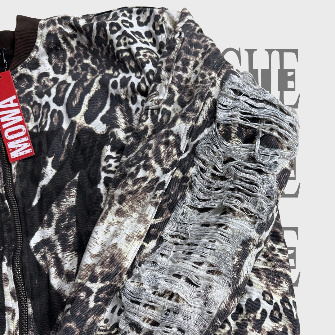 Home / Mowalola / NIGO Mowalola X Ksubi Limited Edition Leopard Print Distressed Bomber Jacket Denim Cotton Jacket Fashionable High Street Cool Zipper Jacket Ngvp #nigo2252