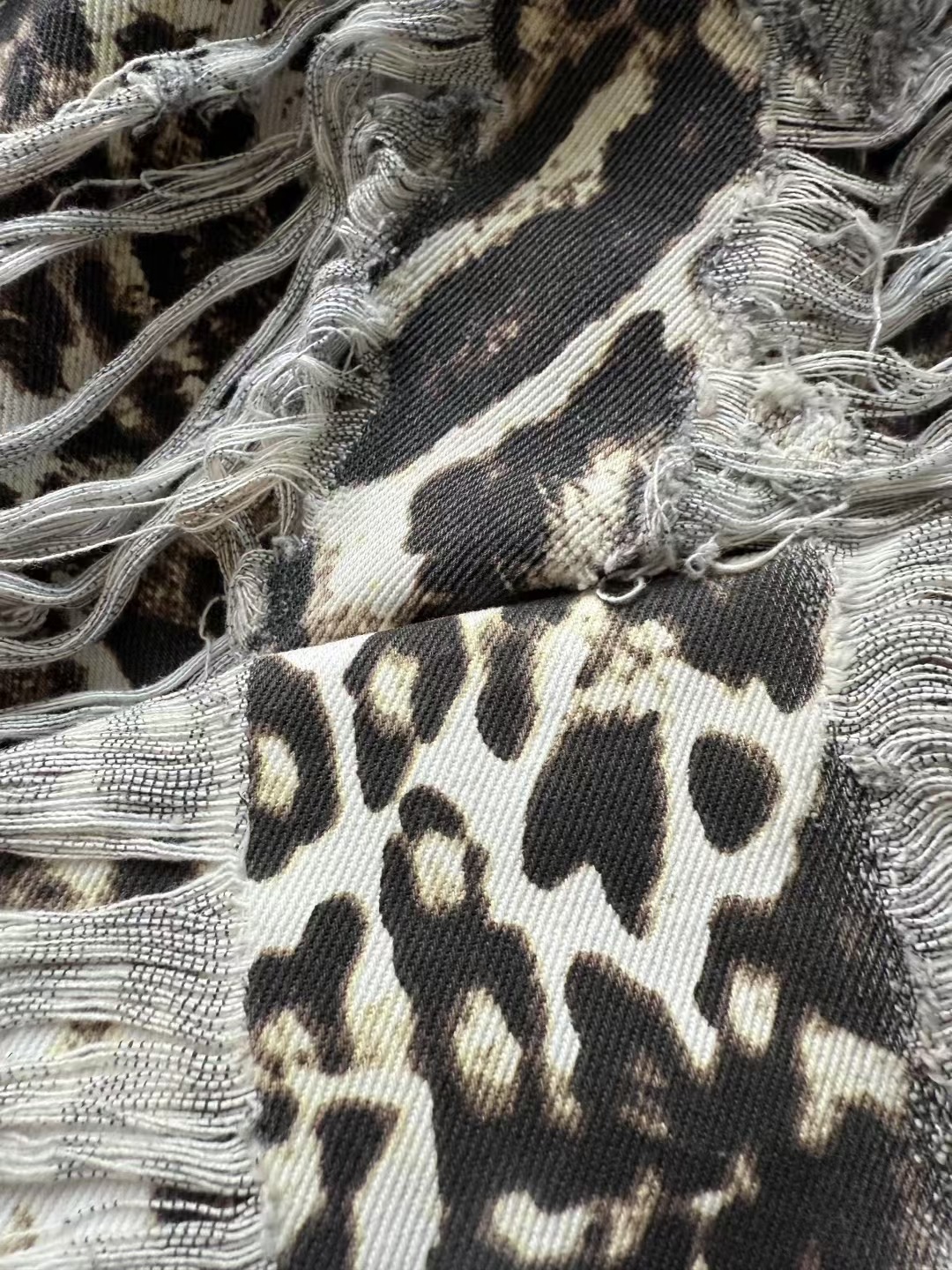 NIGO Mowalola X Ksubi Limited Edition Leopard Print Distressed Bomber Jacket Denim Cotton Jacket Fashionable High Street Cool Zipper Jacket Ngvp #nigo2252