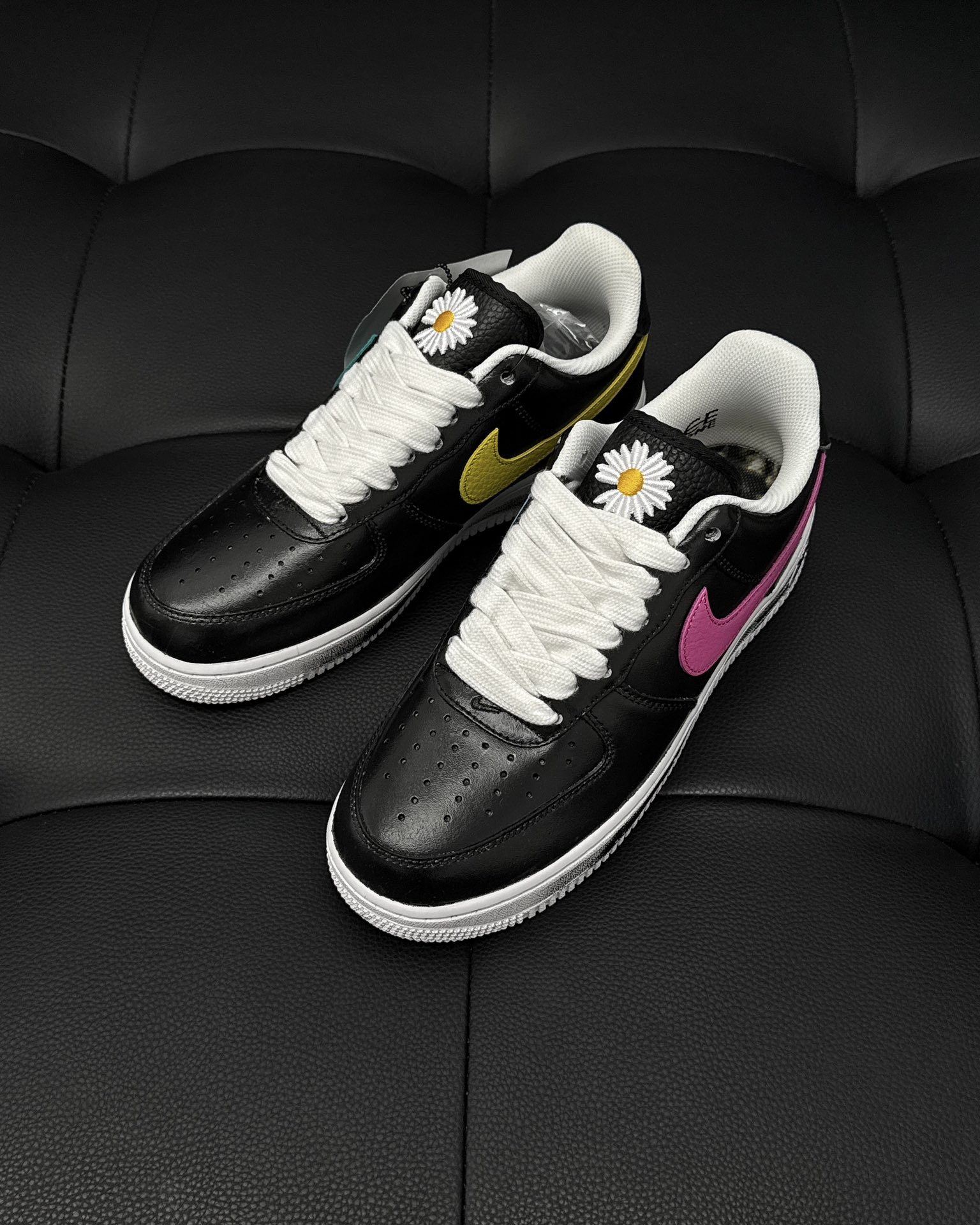 NIGO Nike Men's and Women's Black Leather Daisy Logo Low Top Lace Up Flats Shoes #nigo74264