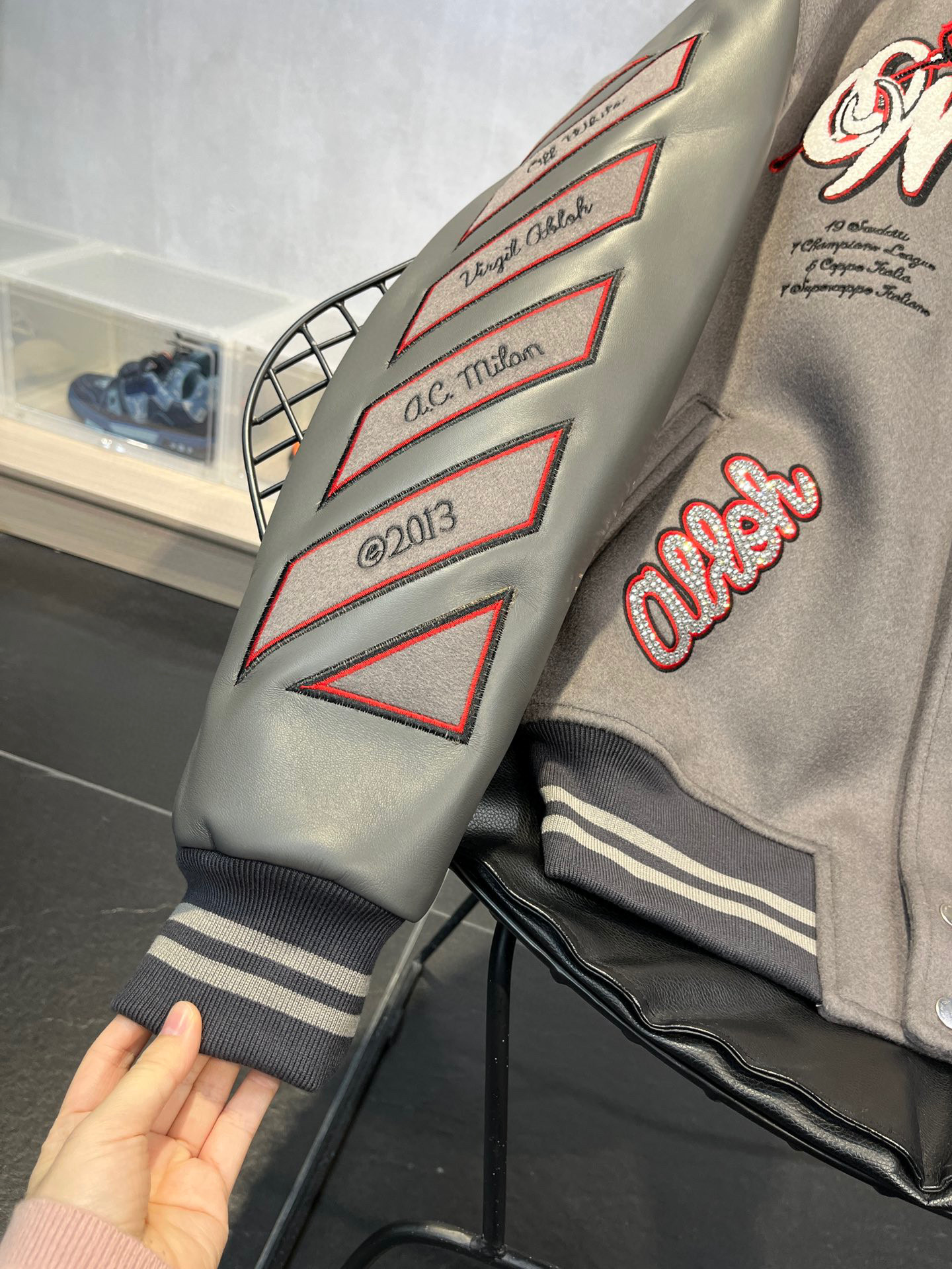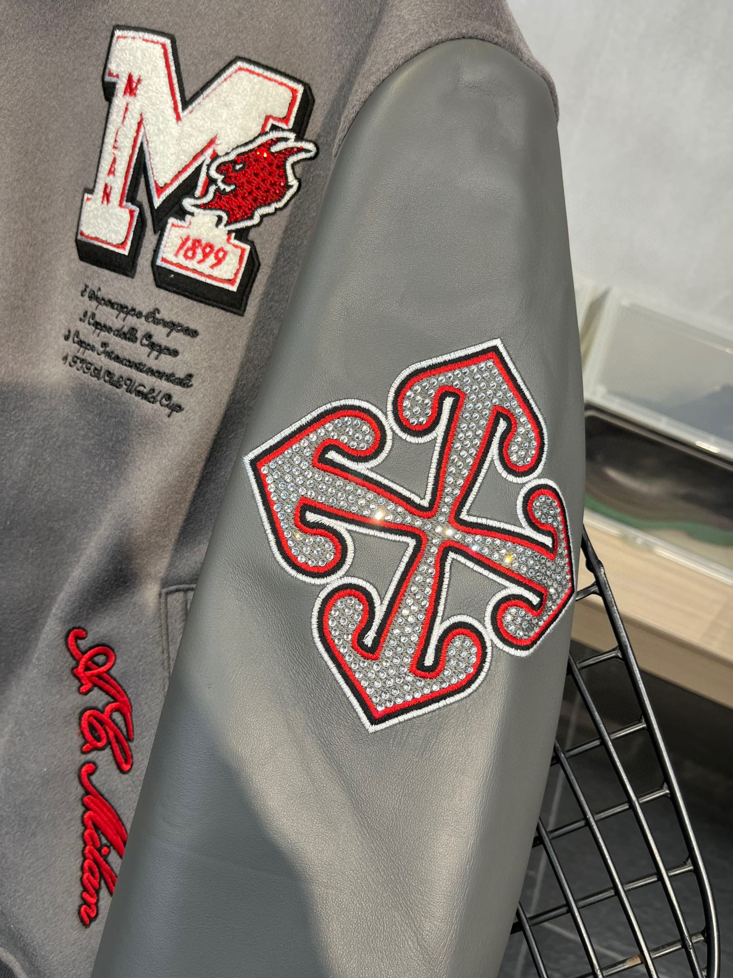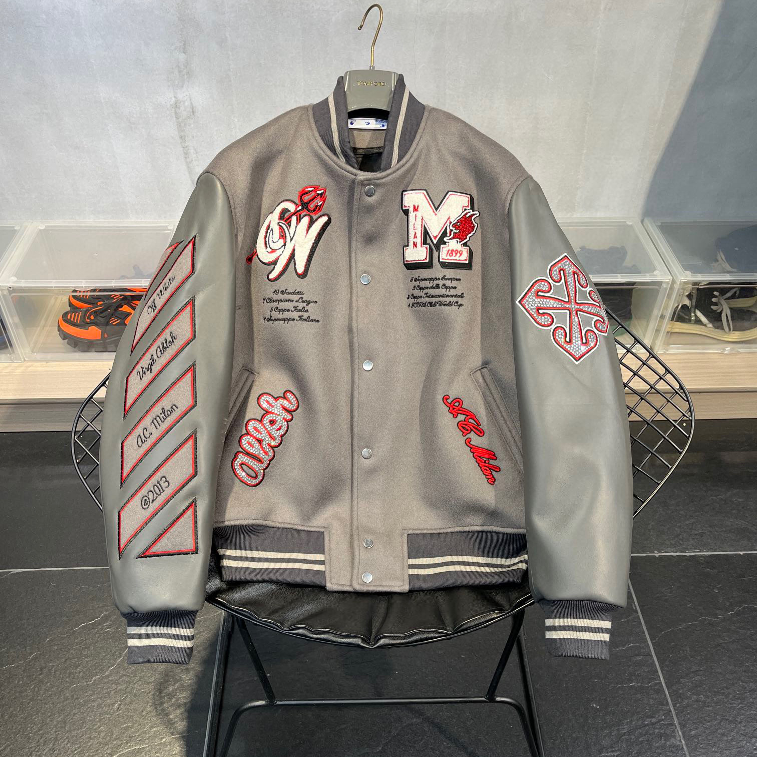 NIGO OFF-WHITE Men's Winter Devil Arrow Embroidered Patch Baseball Leather Jacket #nigo97171