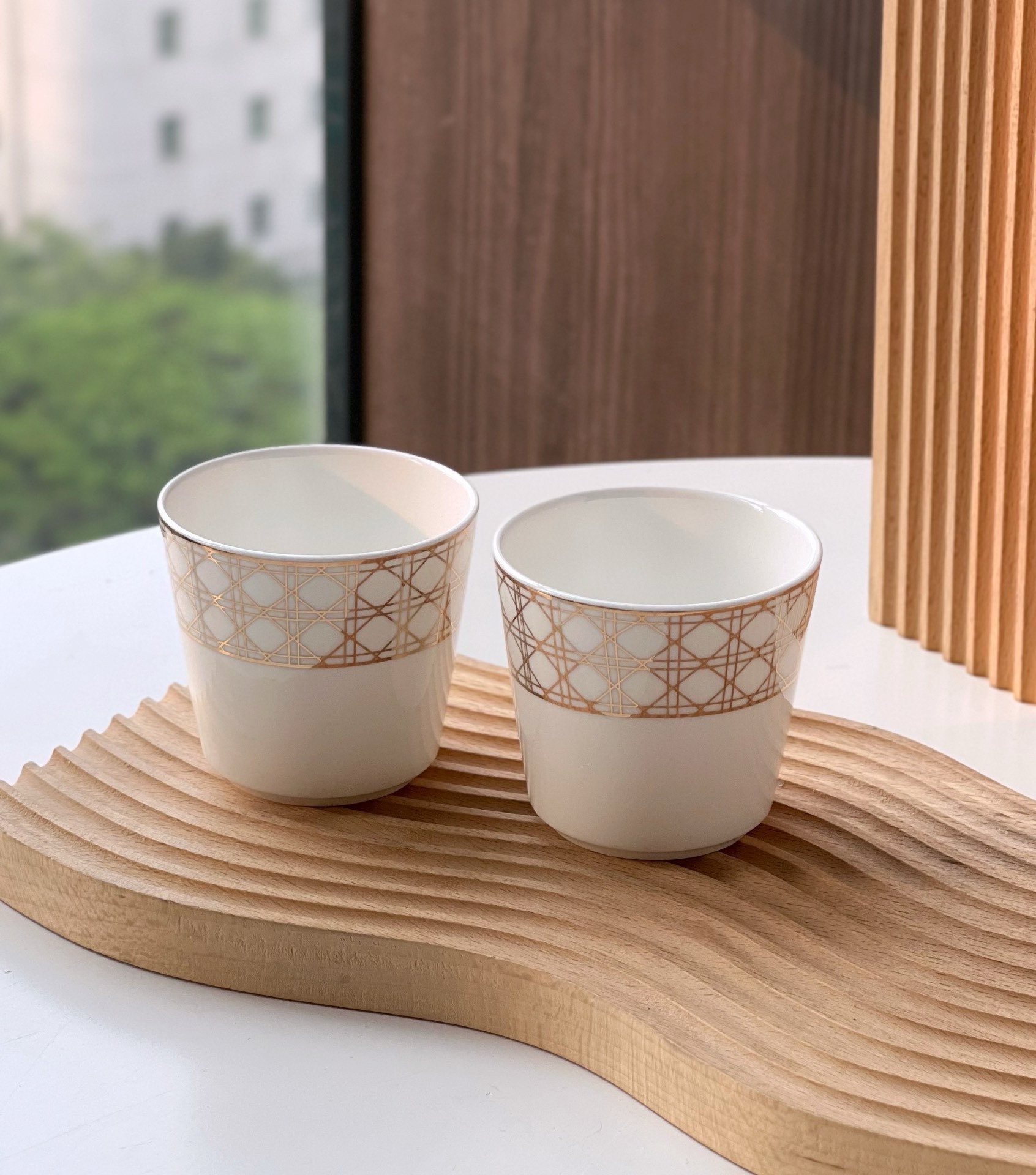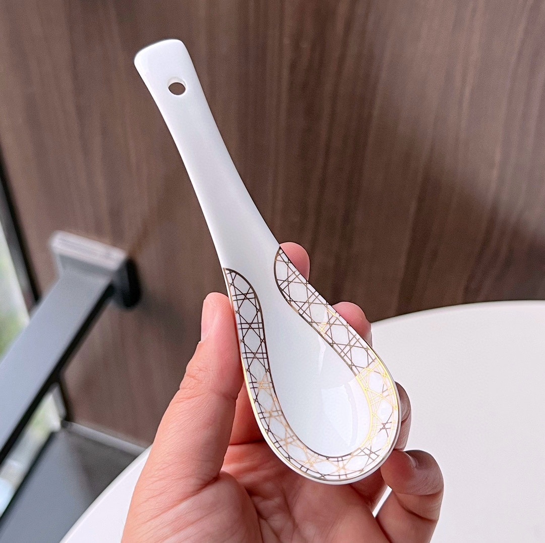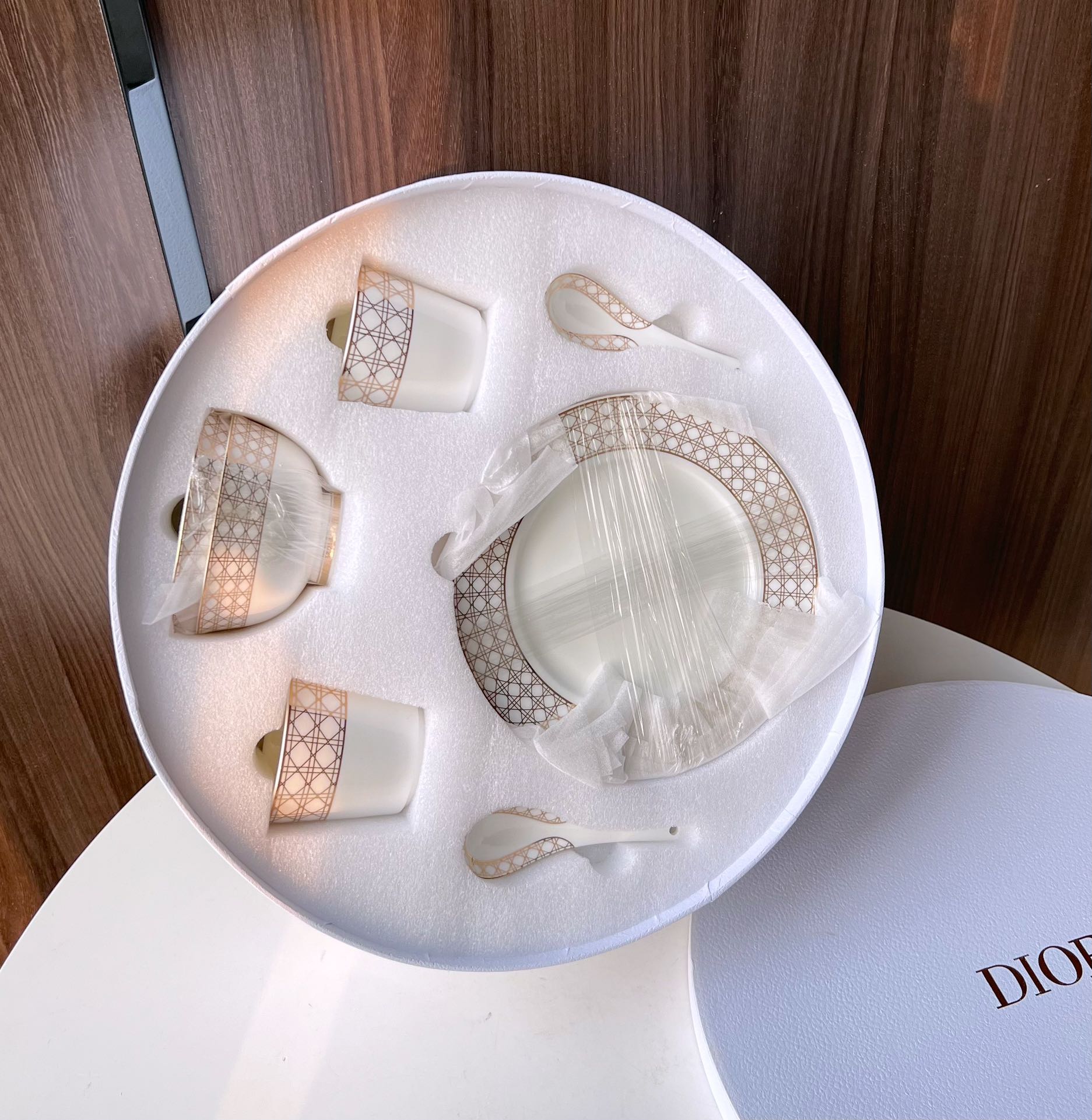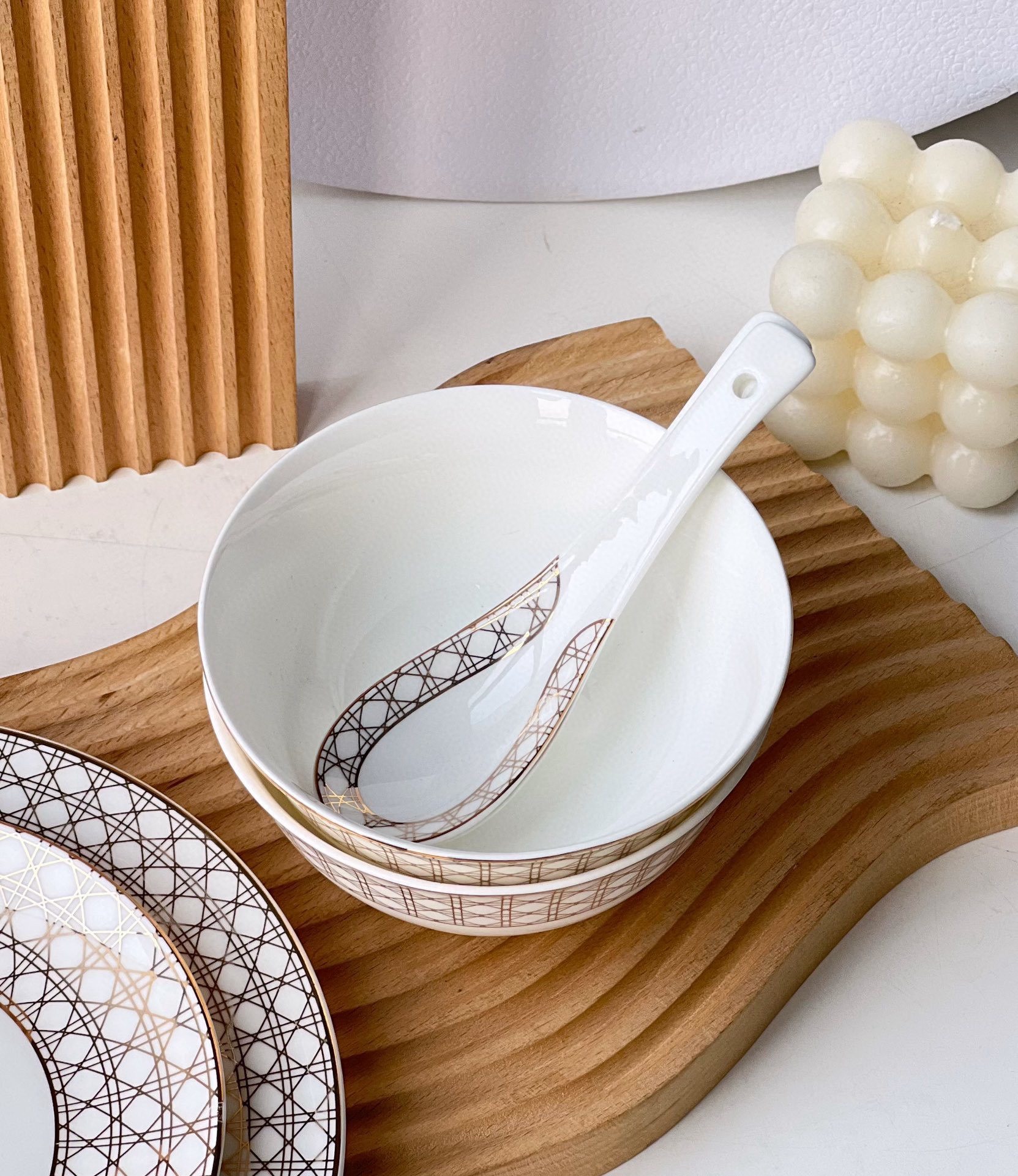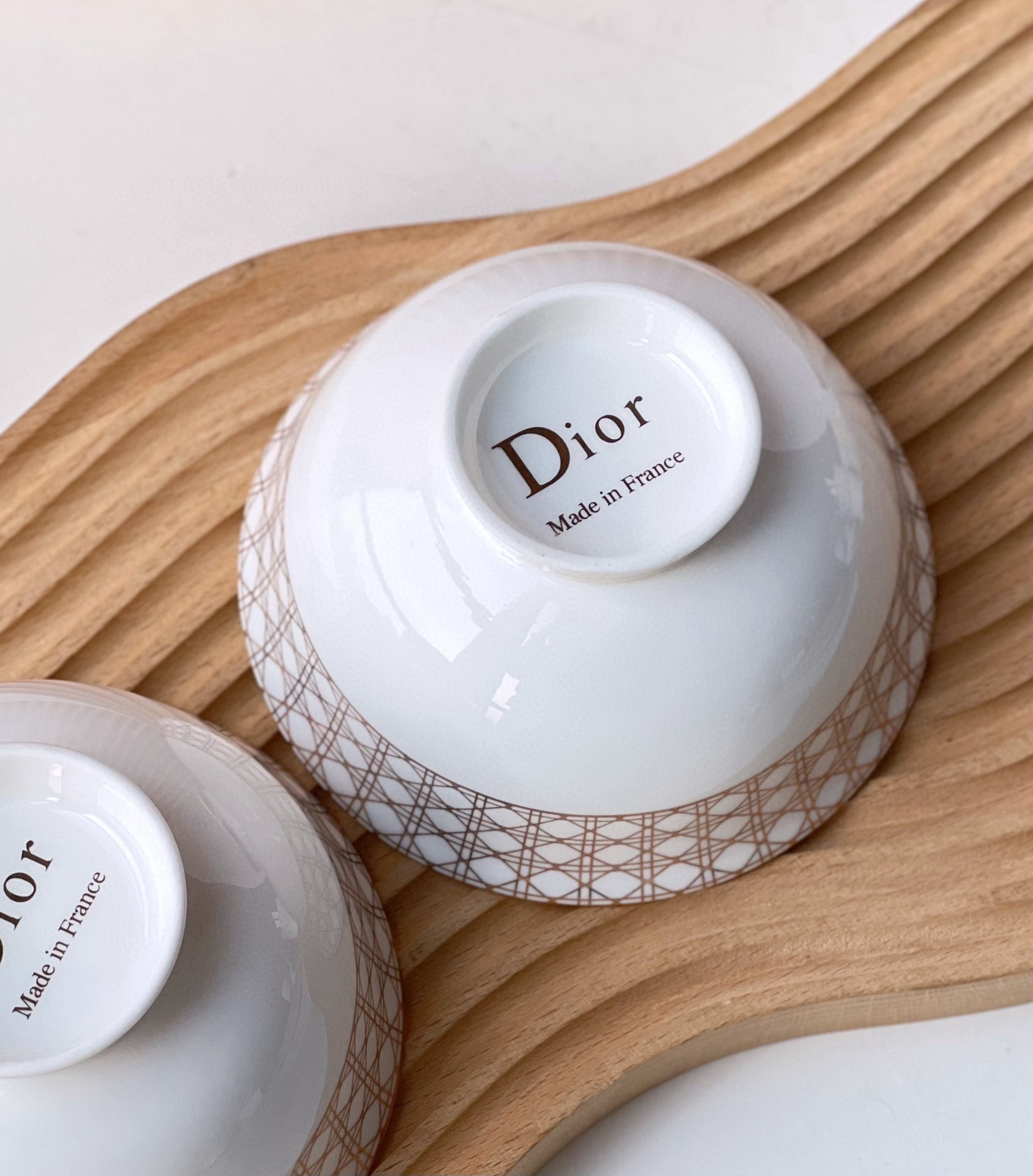 NIGO Dior European Simple Gold Lattice Pattern Bone China Tableware 10-piece Set Configuration: Flat Plate + Bone Plate + Rice Bowl + Soup Spoon + Cup [each 2 Pieces] With Gift Box Package #nigo73147