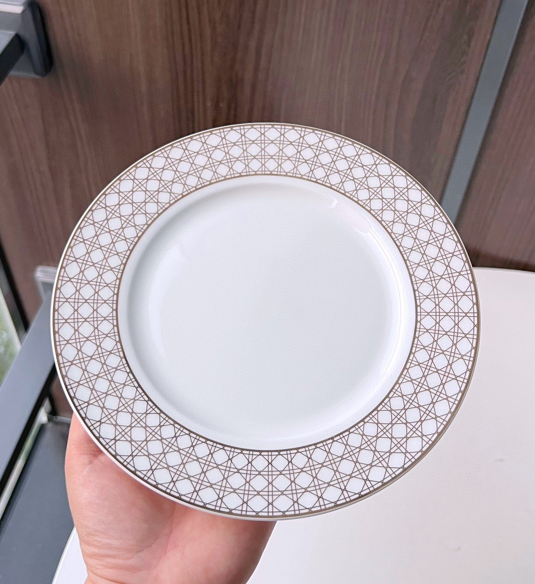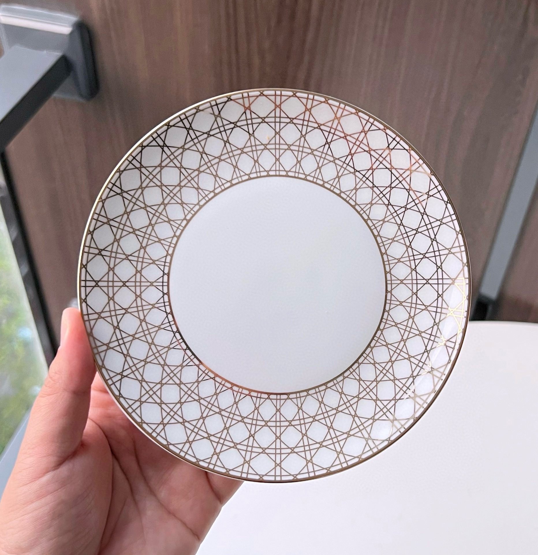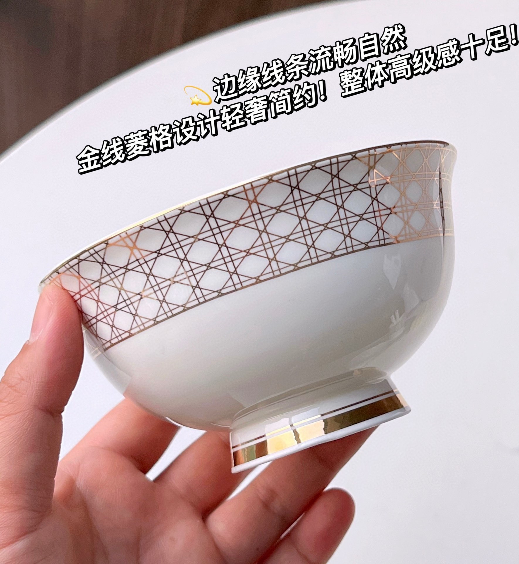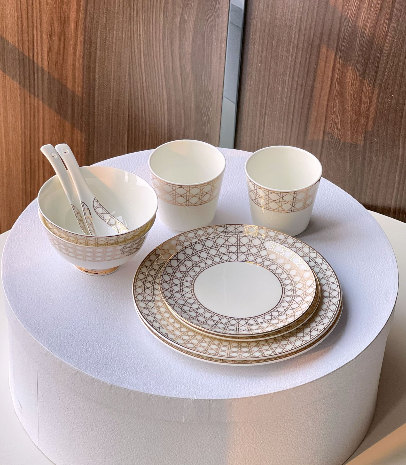DetailDIOR Dior European simple gold lattice pattern bone china tableware 10-piece set