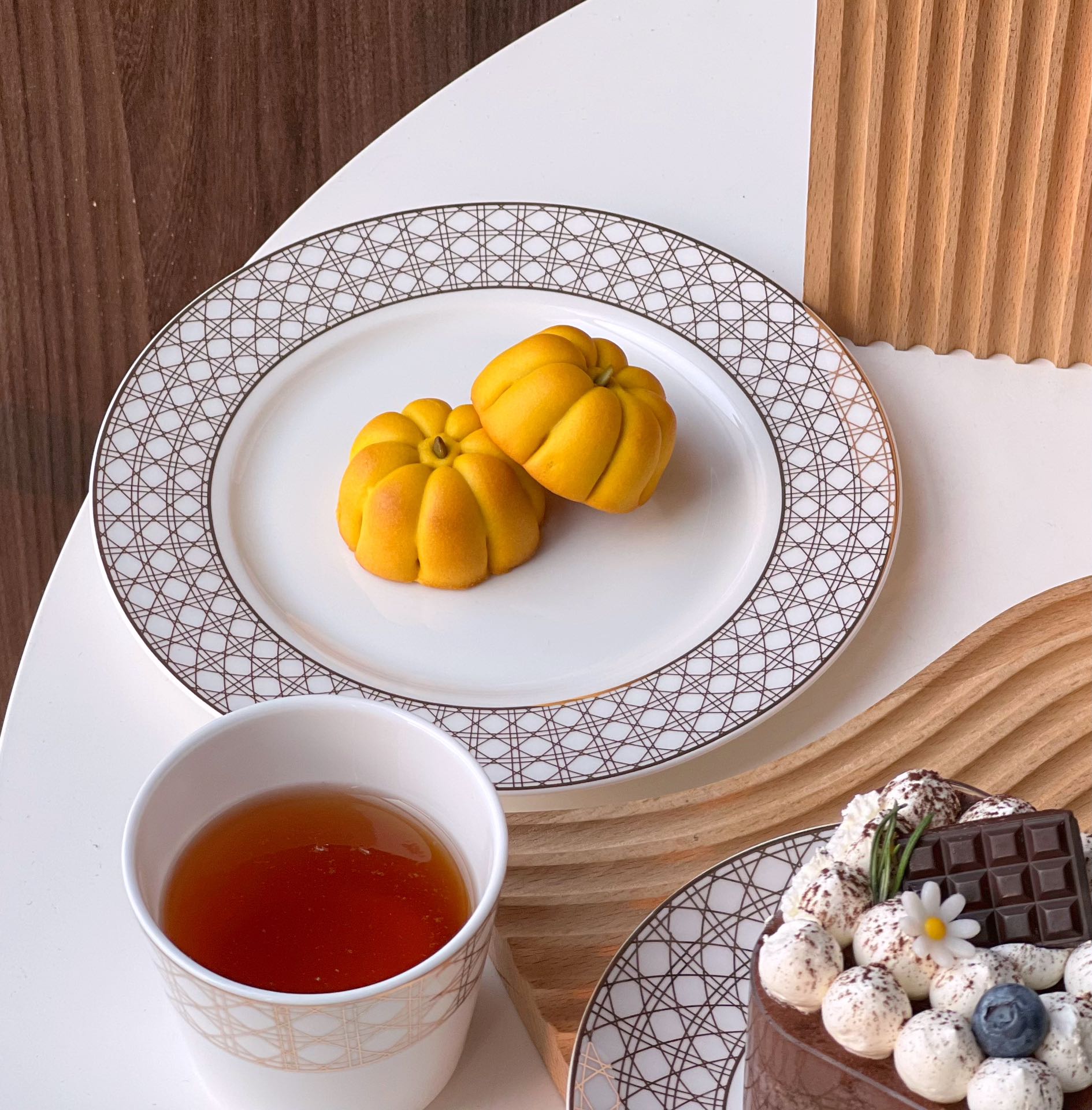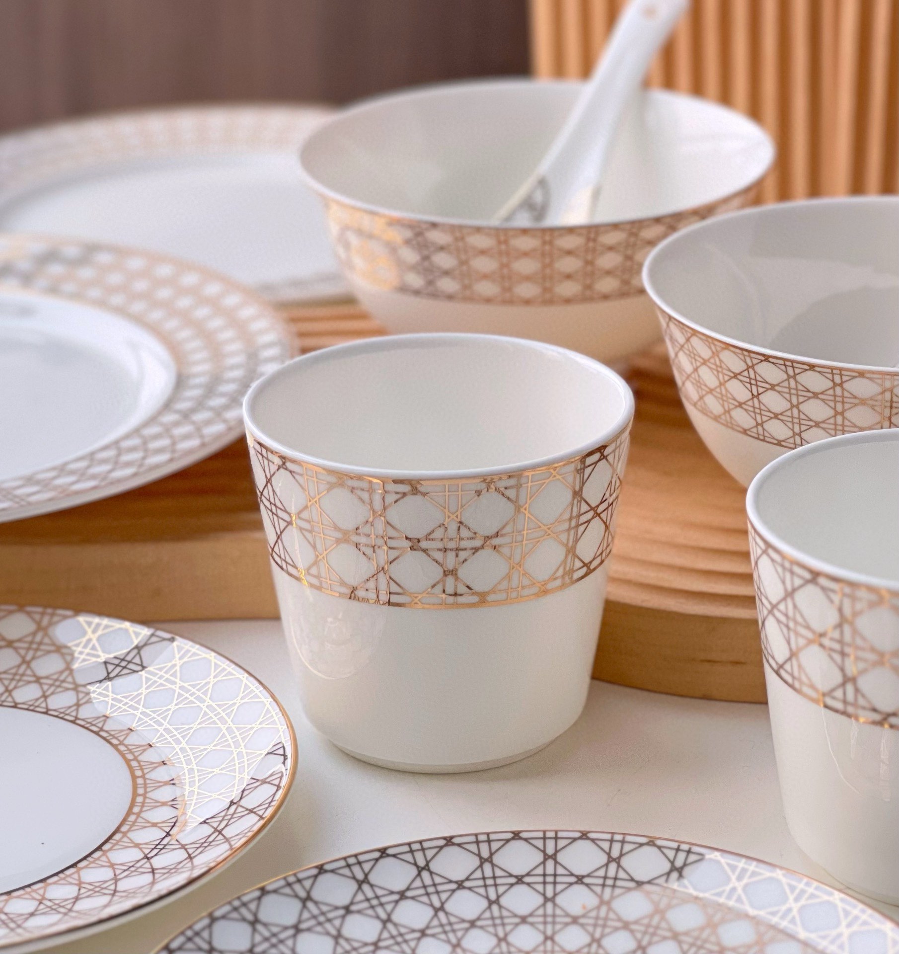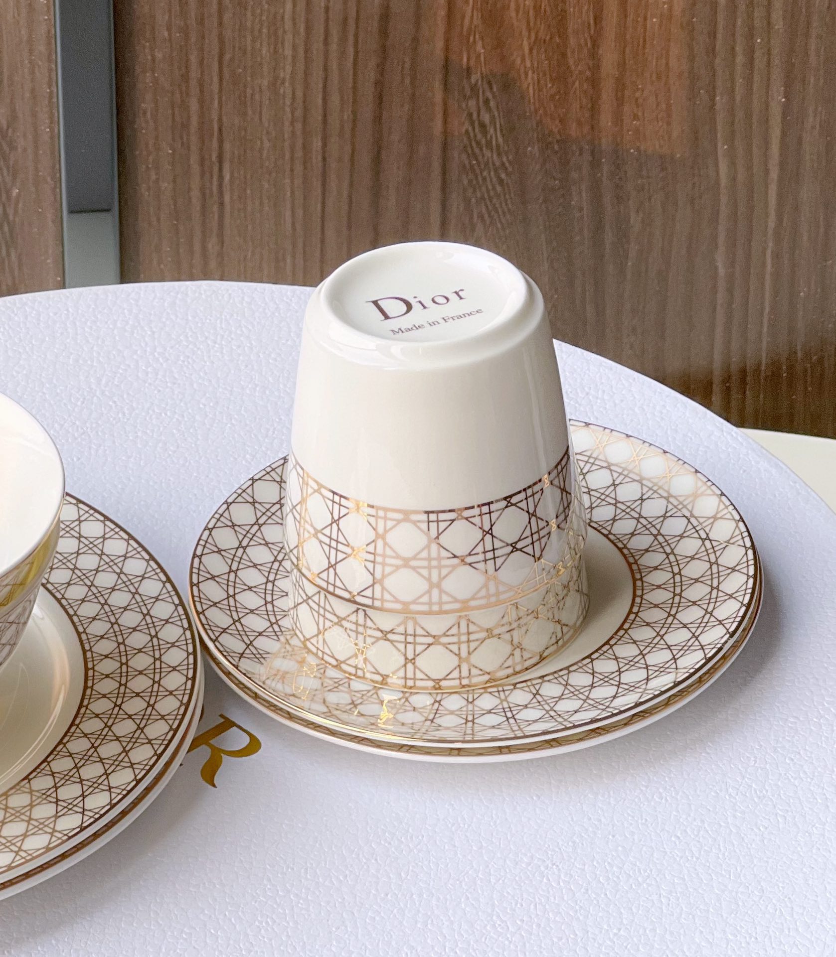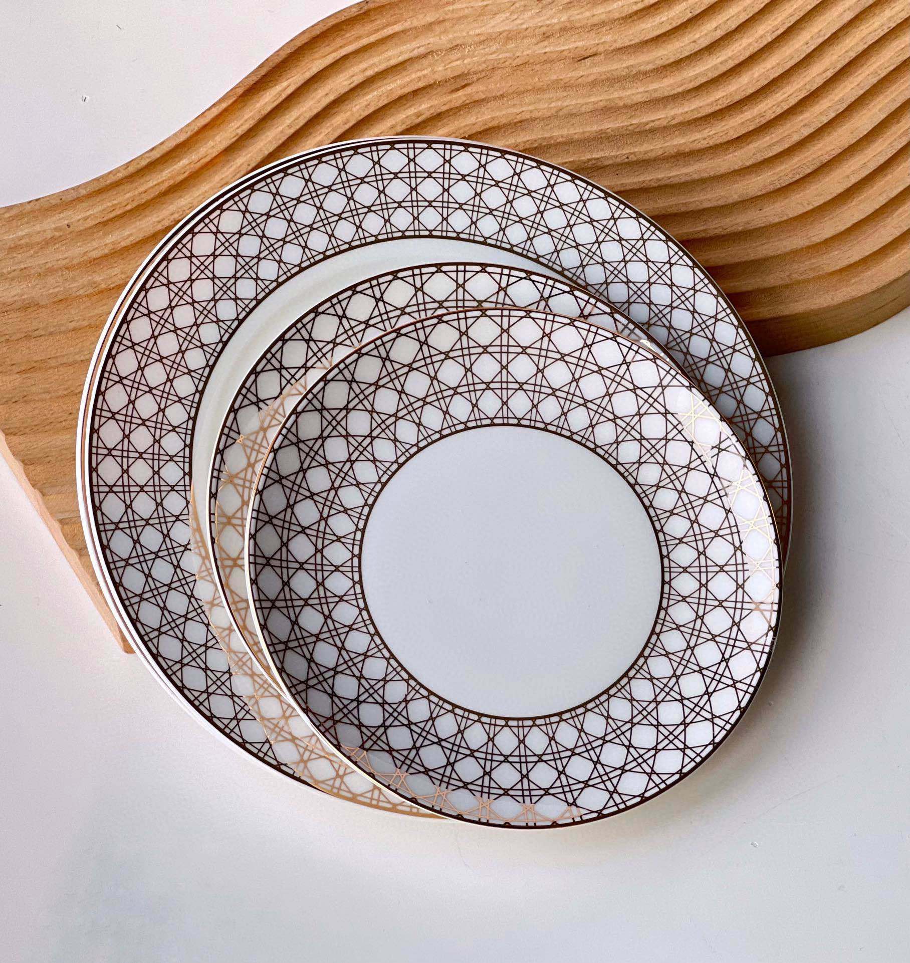 DetailDIOR Dior European simple gold lattice pattern bone china tableware 10-piece set