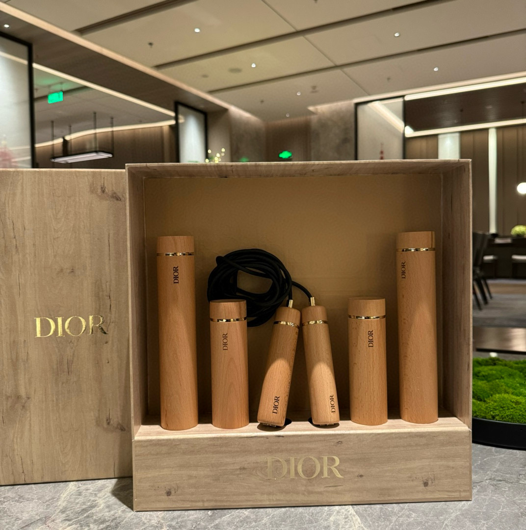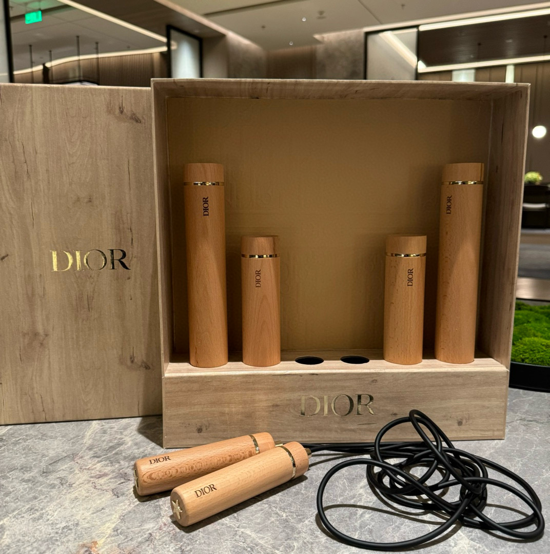 Dior Maison pays homage to physical and mental health and self-affirmation with a new fitness set. Featuring different dumbbell combinations and jump ropes with the Oblique print, the set is adorned with gold-finish brass trimmings, a sign of elegance and the art of detailing that Dior cherishes. As a fitness accessory, the set infuses the spirit of joy, boldness and freedom into the workout.