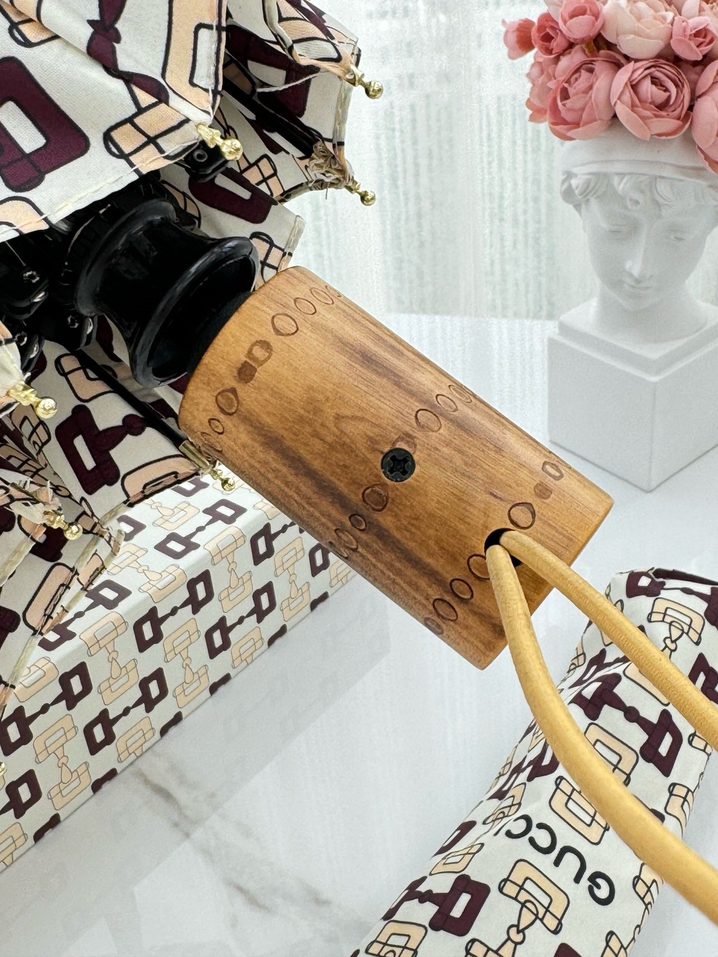 NIGO Gucci Reversible Printed Horsebit Umbrella Bamboo Long Handle Sun Umbrellas #nigo99782