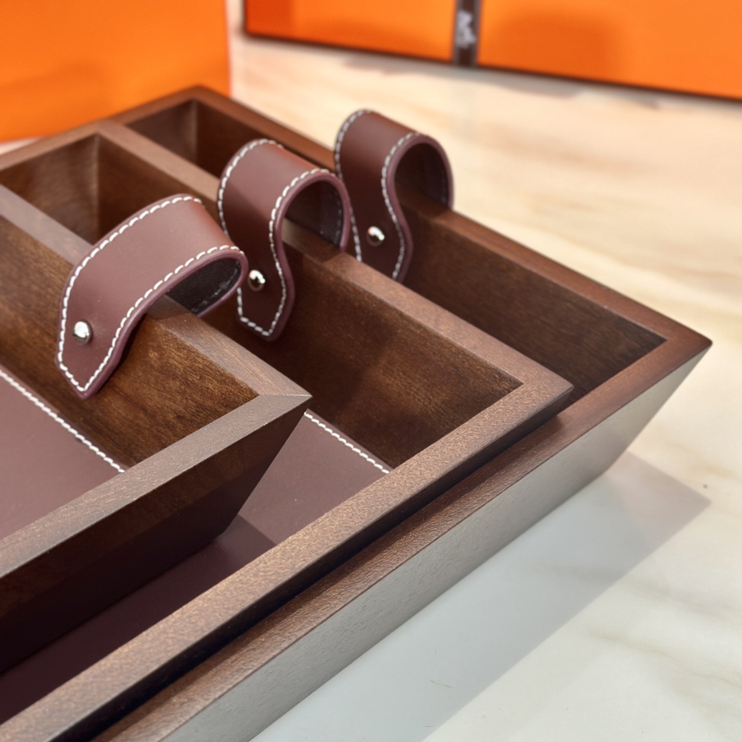 DetailHermes to create a black walnut wood shelving tray series, not only is a functional real goods, but also home furnishings in the exquisite art, equipped with large items, and exquisite accessories display, this large, medium and small three groups of shelving trays series, injected into your space with a maximum of taste and style.