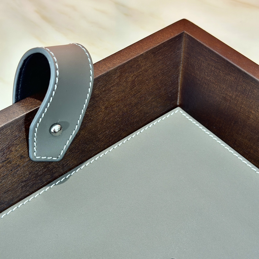 Each piece of tray is finely hand-polished, with smooth edges and comfortable hand feeling, the inside of the tray and the carrying handles are made of high quality first layer cowhide. Very fine workmanship and neat alignment.