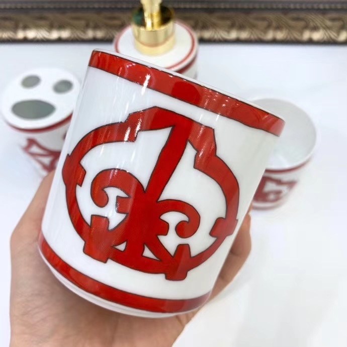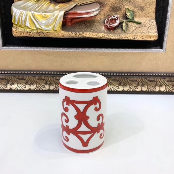 Home / Other / NIGO Hermes Red Iron Window Series Lotion Bottle Soap Box Toothbrush Box Mouthwash Cup Bone China Bathroom Five Sets Of Accessories #nigo71549